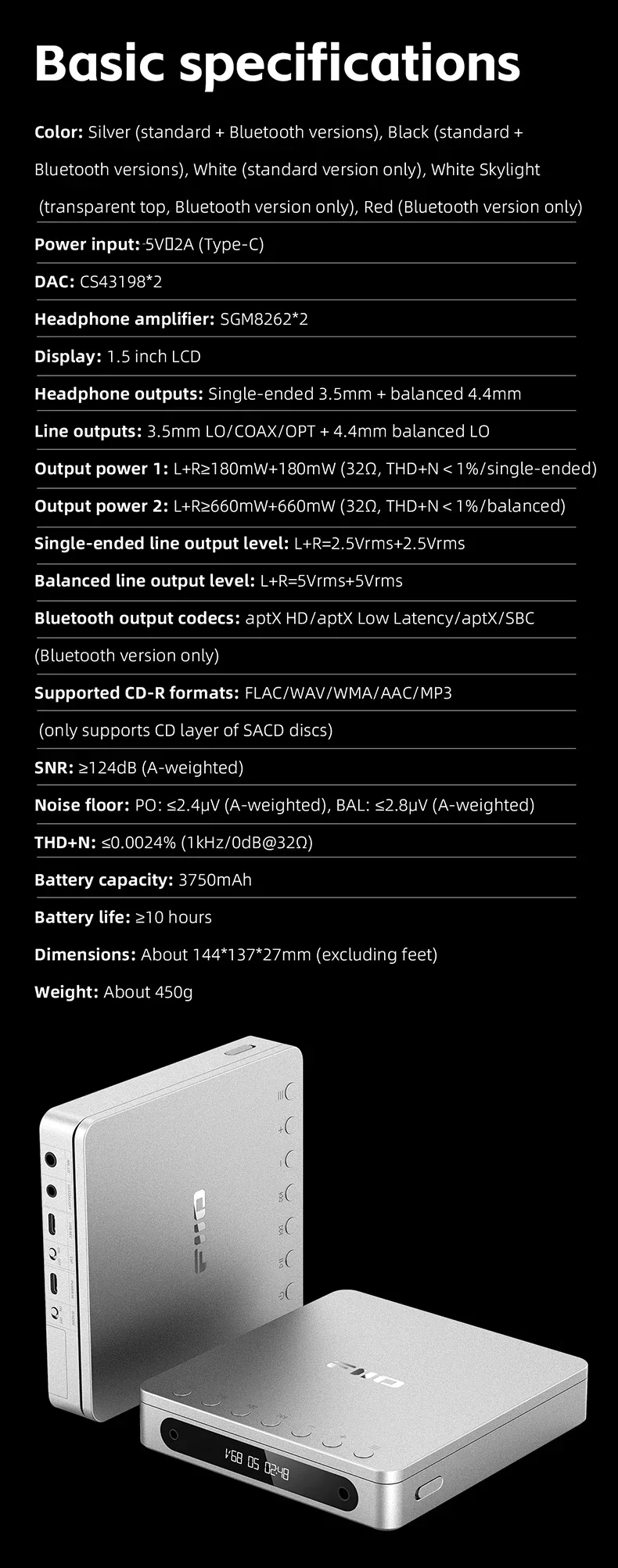 DM13 Multifunctional Portable Stereo CD Player with Long-Lasting Battery Support