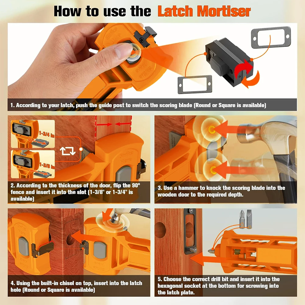 2.Integrated Template: Comes with an integrated Door Hinge & Door Latch Installation Kit template for precise chiseling and scoring for accurate installation.