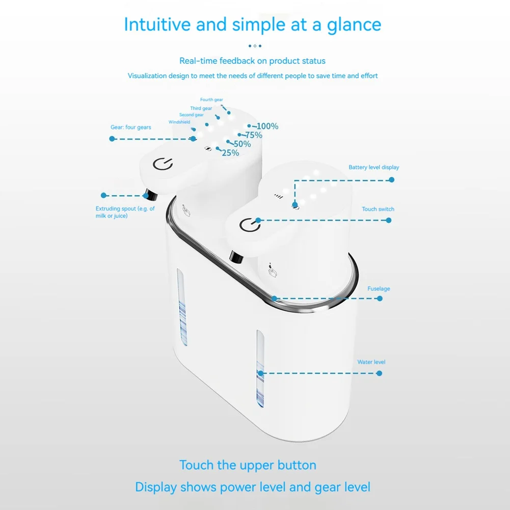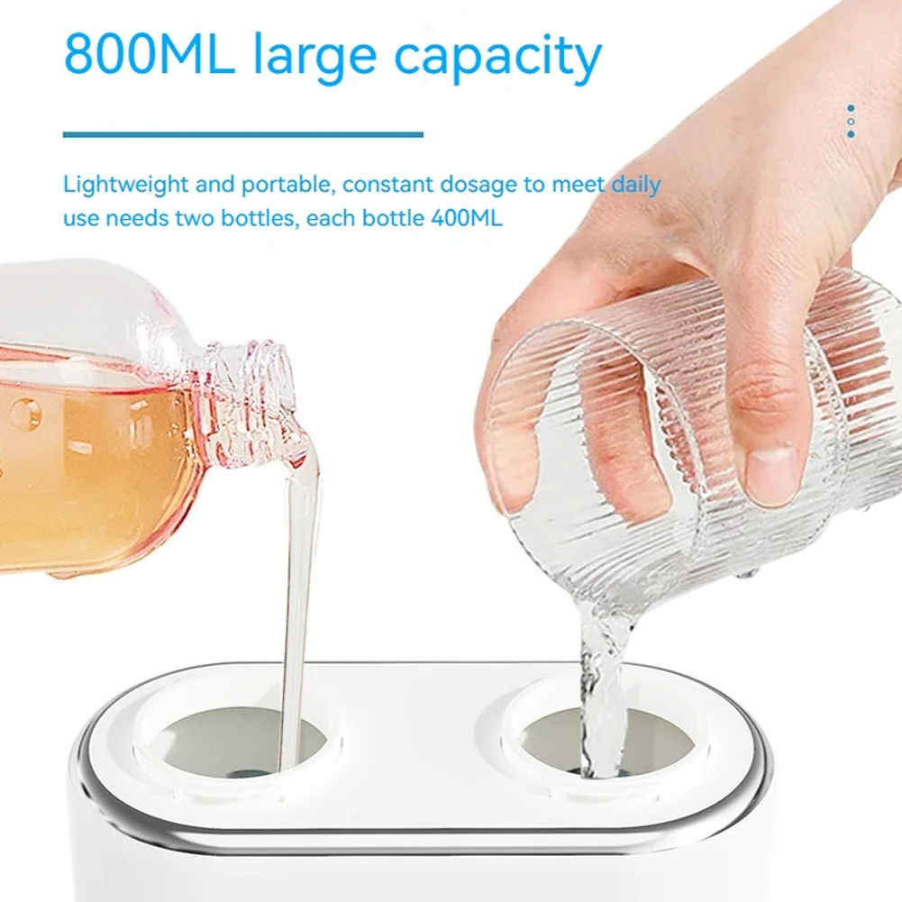 Double Head Automatic Soap Dispenser USB Rechargeable Electric Soap Dispenser Wall Mounted Hands Free Auto Soap Dispenser for Kitchen and Bathroom Features: 1.Rapid Infrared Response: Experience a touch-free automatic soap dispenser that utilizes near-field infrared sensing technology, producing foam in just 0.25 seconds. This hands free auto soap dispenser design helps prevent contact, offering speed and convenience. 2.Long-lasting Battery Life: Our electric soap dispenser is equipped with a high-capacity lithium battery, capable of lasting three months on a single charge. Enjoy continuous usage without frequent recharging. 3.Smart Charging: Charge your hand soap dispenser conveniently without disassembly. This eco-conscious design reduces wear and tear, extending its lifespan, while simplifying the charging process. 4.Cost-effective Rechargeability: With the ability to recharge repeatedly, our dish soap dispenser offers economic advantages. Reduce waste and save money by eliminating disposable batteries. 5.Versatile Liquid Output: Featuring four adjustable liquid output levels, this auto soap dispenser adapts to your needs. Its IPX5 water resistance ensures durability against splashes. Specification: Origin: Mainland China Size: 202.00x156.00x104.00mm/7.95x6.14x4.09inch Rated voltage: 3.7V Rated power: 1.5W*2 Charging interface: TYPE-C Charging parameters: 5V-1A Charging time: about 3 hours Working mode: infrared induction |Water bottle capacity: about 400mL*2 Sensing distance: 0-70mm Waterproof grade: IPX5 Users: children, adults washing hands/washing hair/bathing/washing dishes Usage environment: wash basin/bathroom/hotel/public toilet/hospital/school, etc. Note: does not contain liquid Note: 1 x Automatic Soap Dispenser 1 x Charging Cable ![]() ![]() ![]() ![]() ![]() ![]() ![]() ![]() ![]() ![]() |
