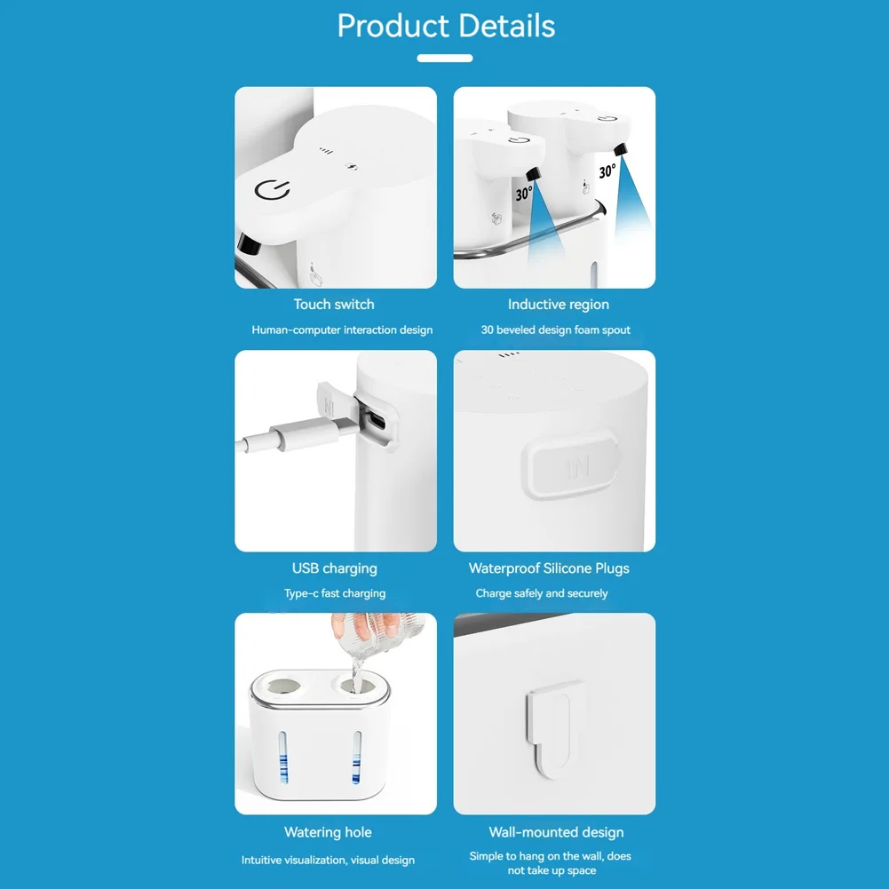 Double Head Electric Foam Soap Dispenser Toucheless Automatic Hand Sanitizer Wal