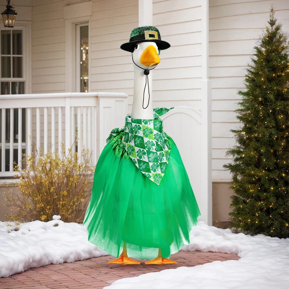 Easter Goose Outfit with Hat & Scarf & Skirt Porch Goose Clothes Lawn Goose Porch Clothing Outfits Goose Statue Clothes for 23inch Lawn Outdoor Decoration