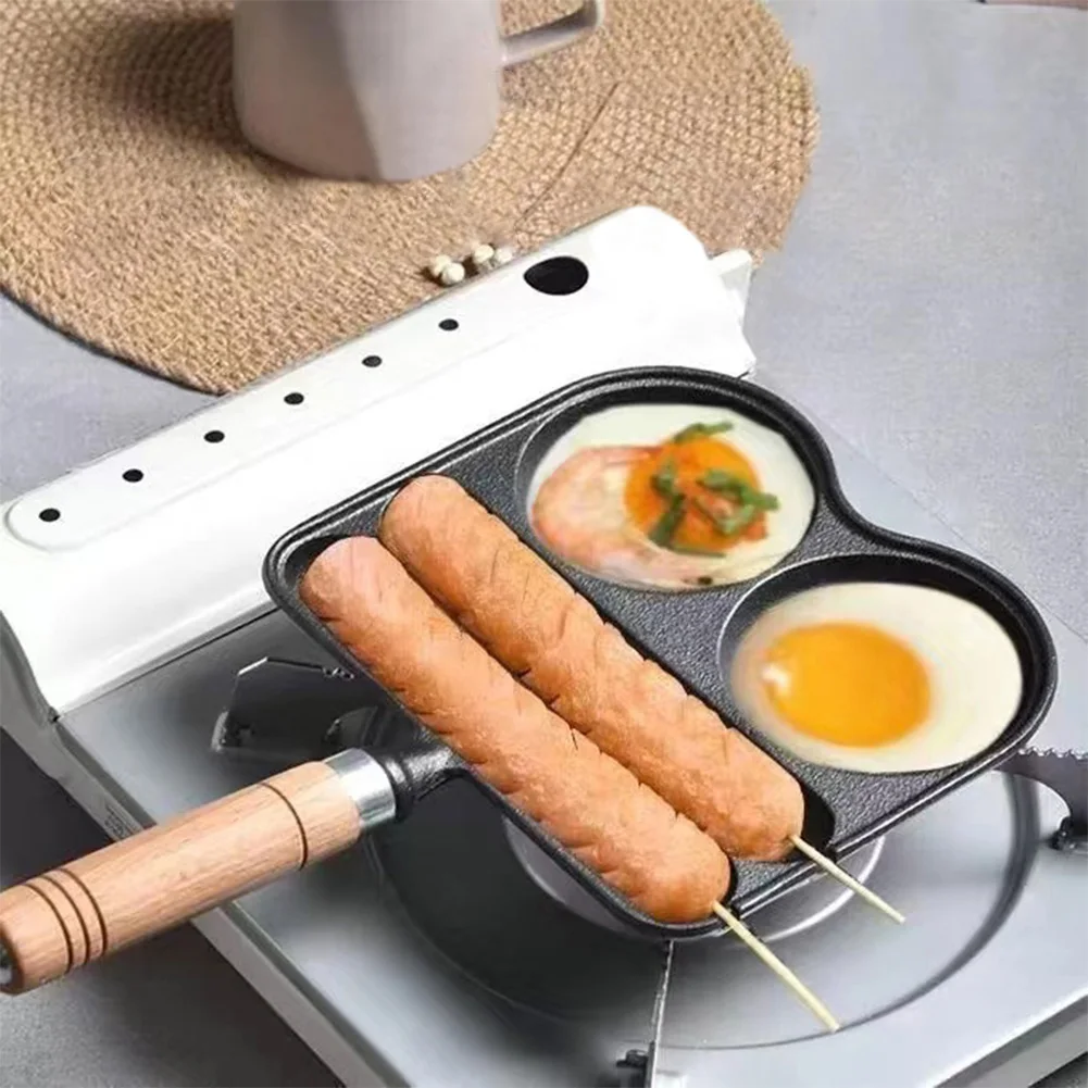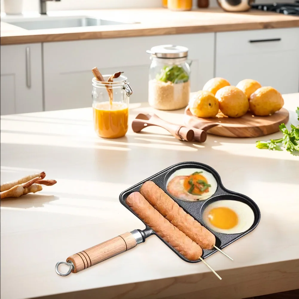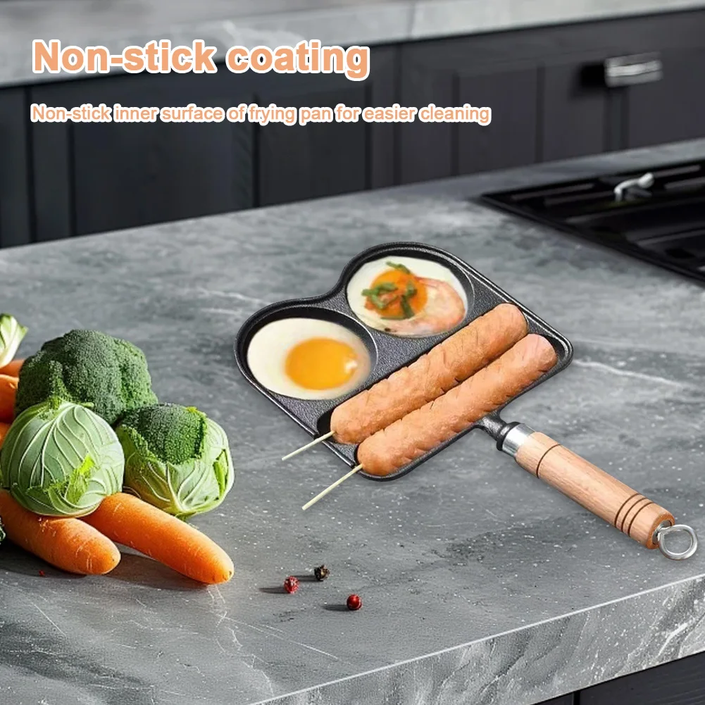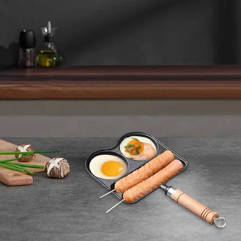 Egg Frying Pan with Heat Resistant Handle 4 Section Skillet Divided Omelette Pan