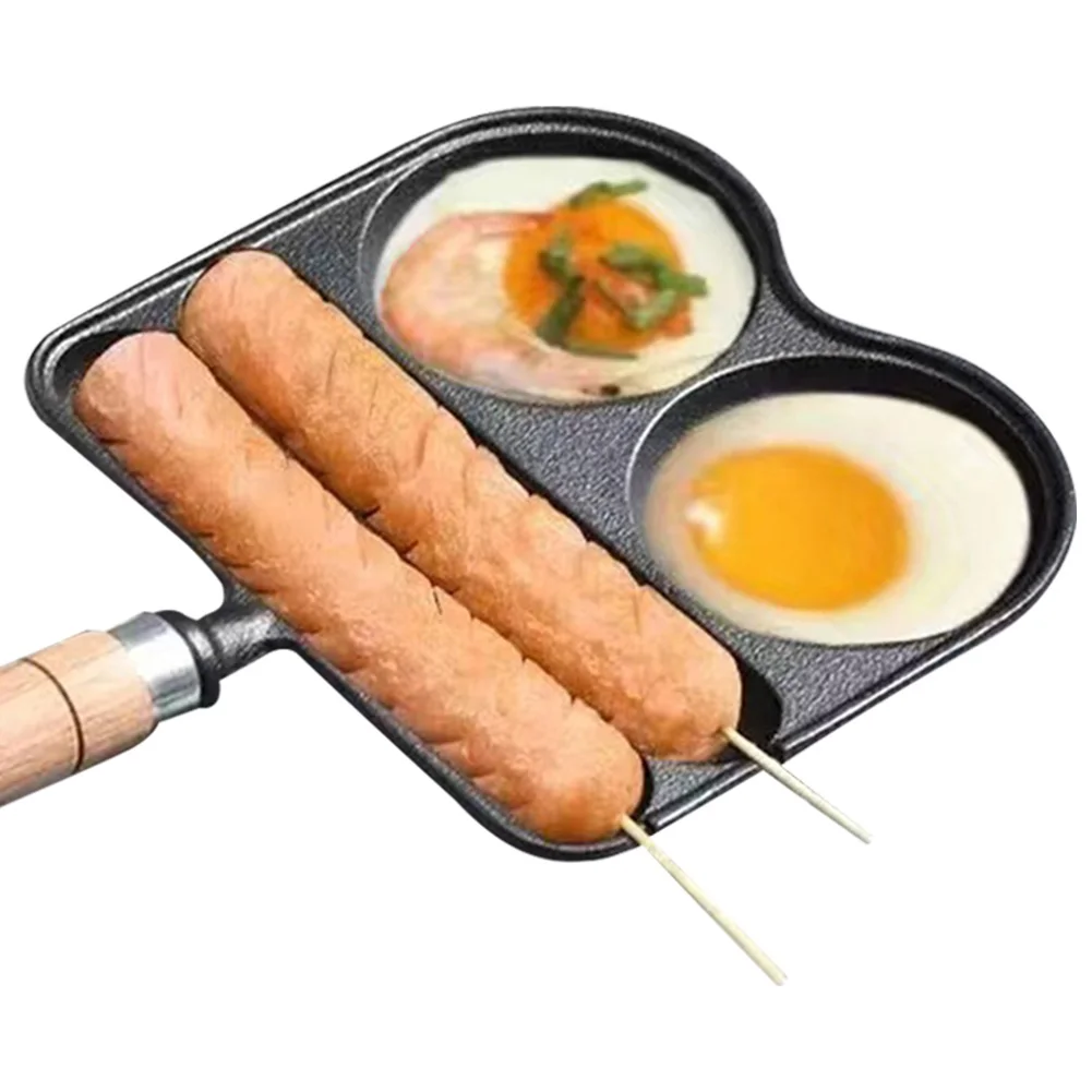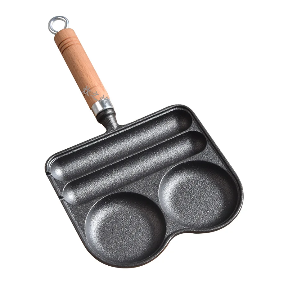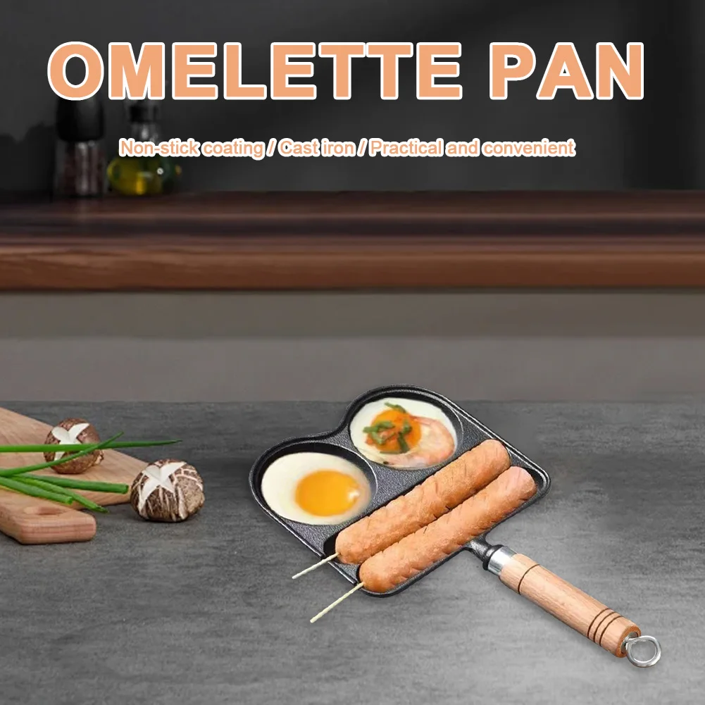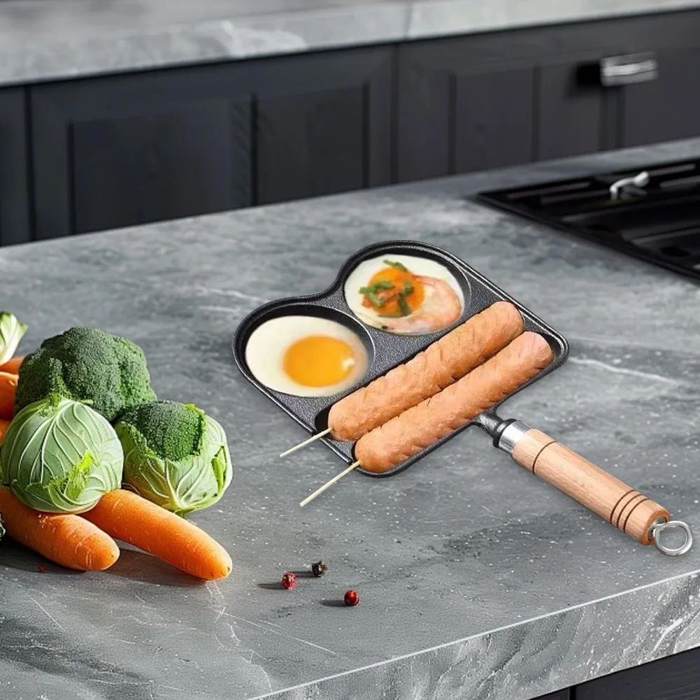 Egg Frying Pan with Heat Resistant Handle 4 Section Skillet Divided Omelette Pan