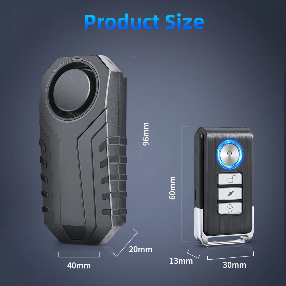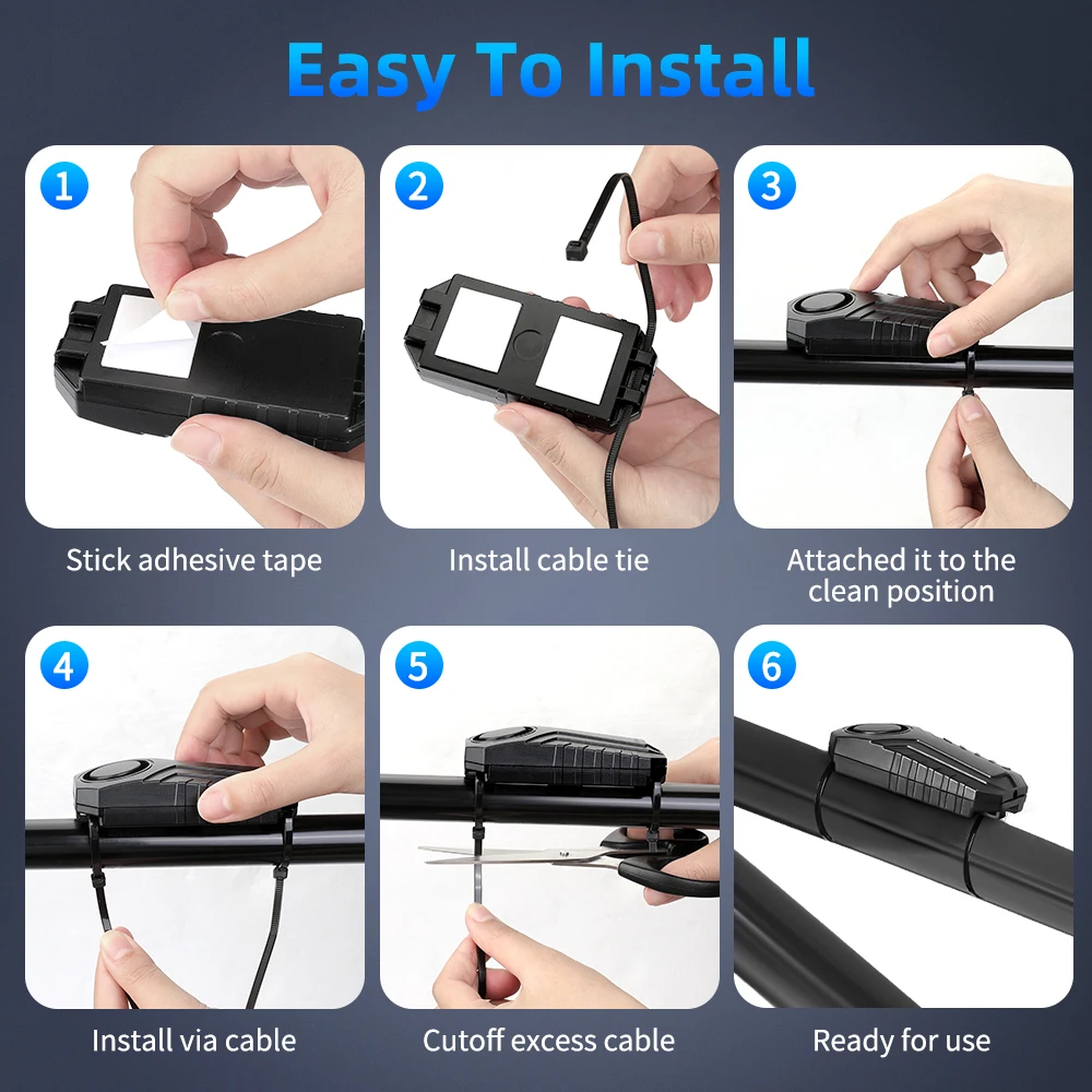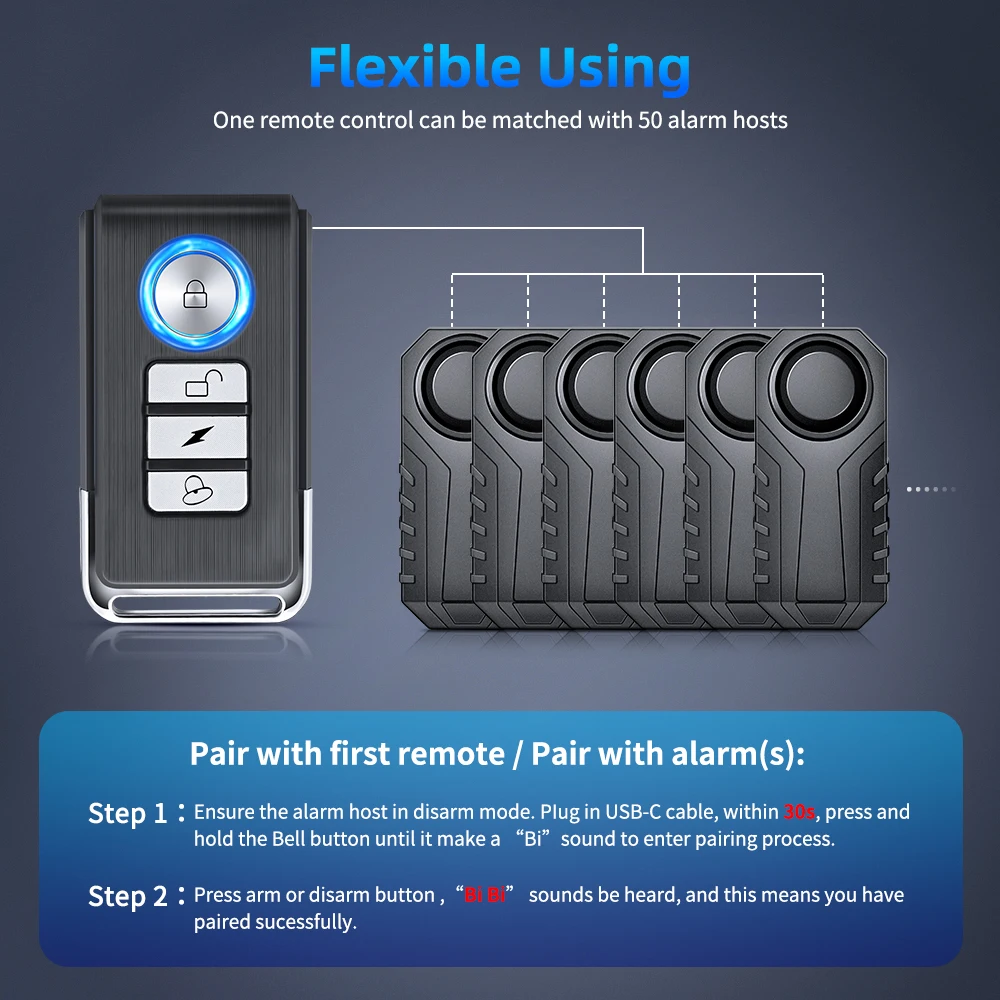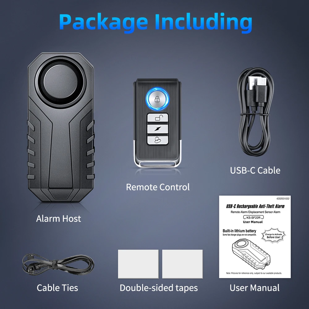 ELECTOP USB-C Rechargeable Bike Alarm 113Db Anti-Theft Wireless Remote Control B