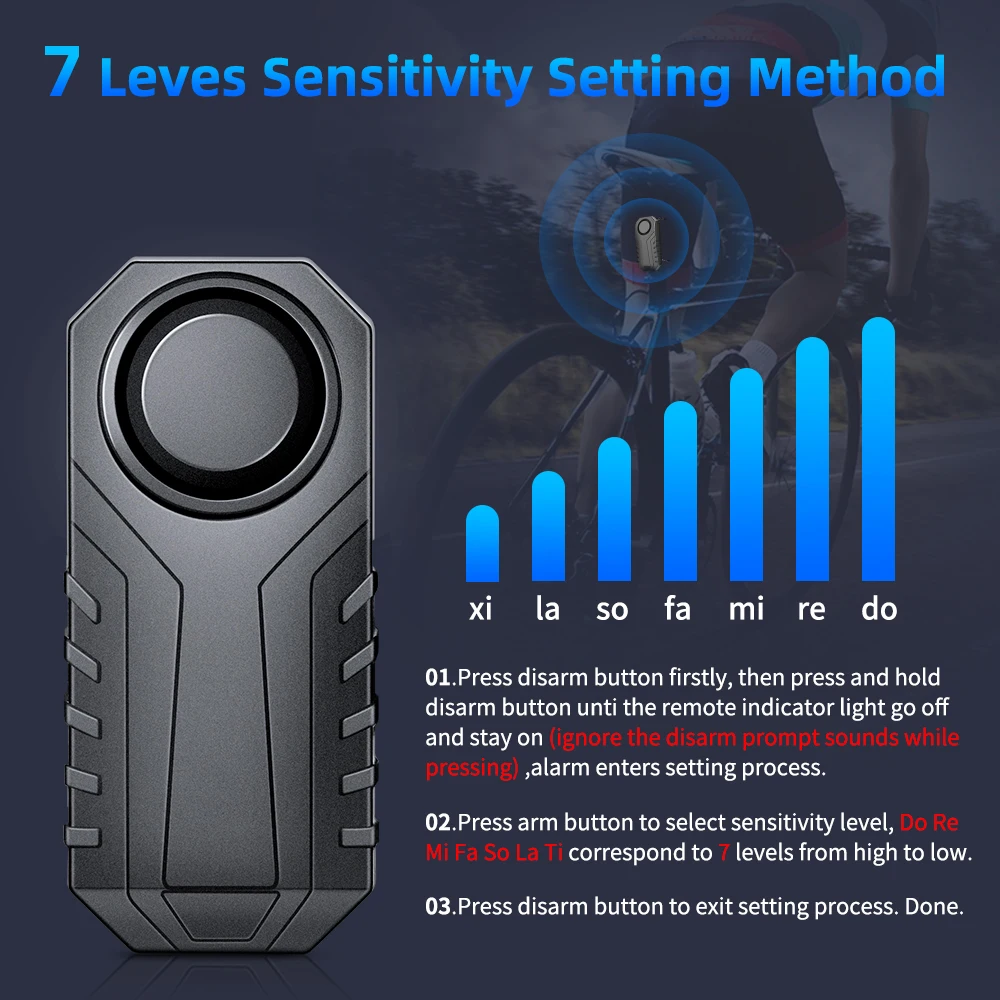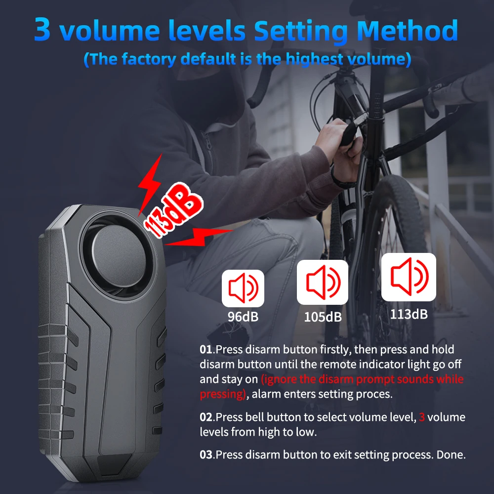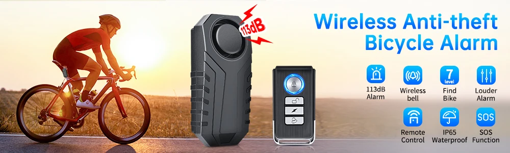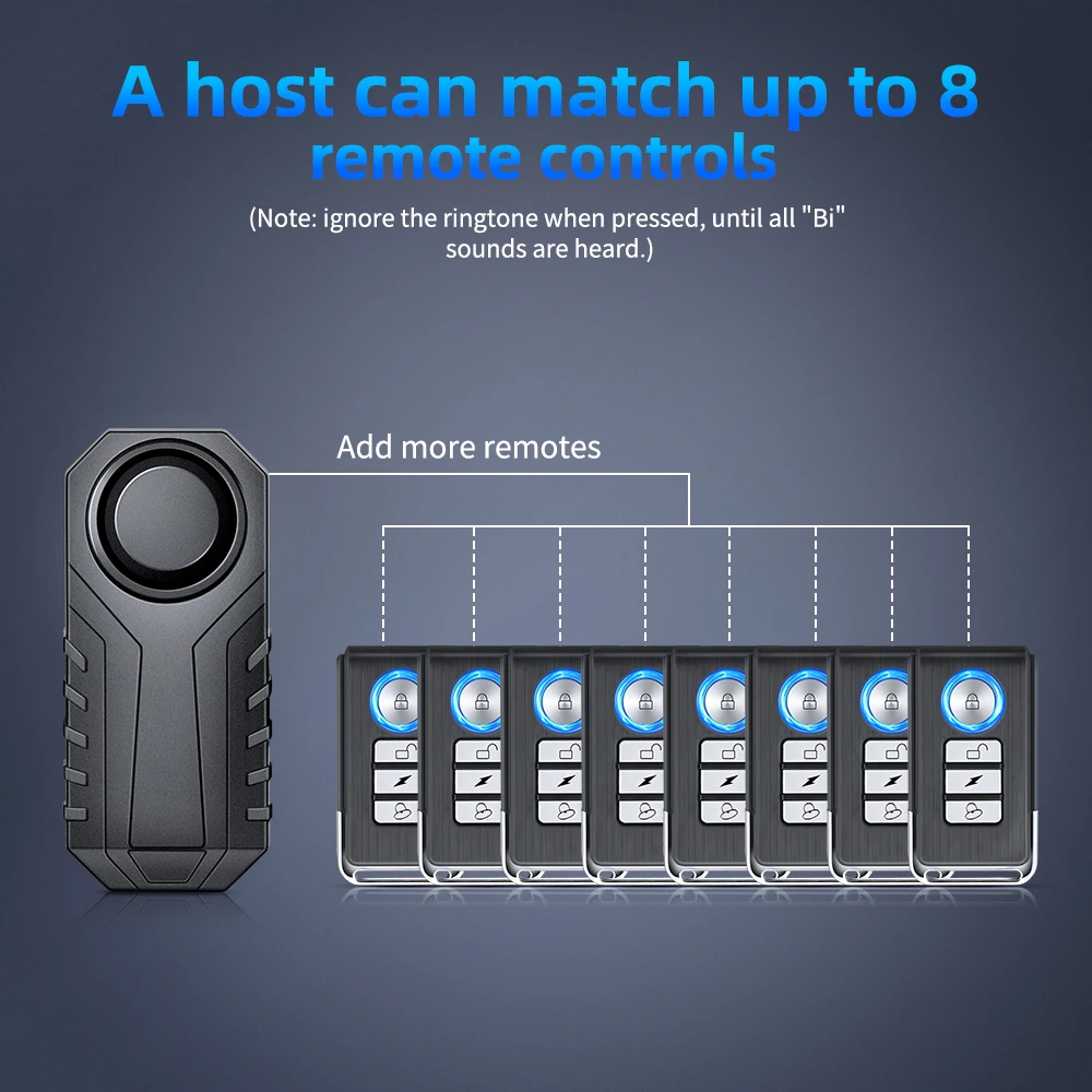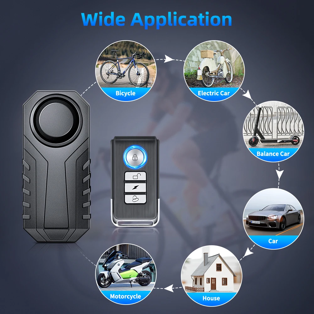 ELECTOP USB-C Rechargeable Bike Alarm 113Db Anti-Theft Wireless Remote Control B