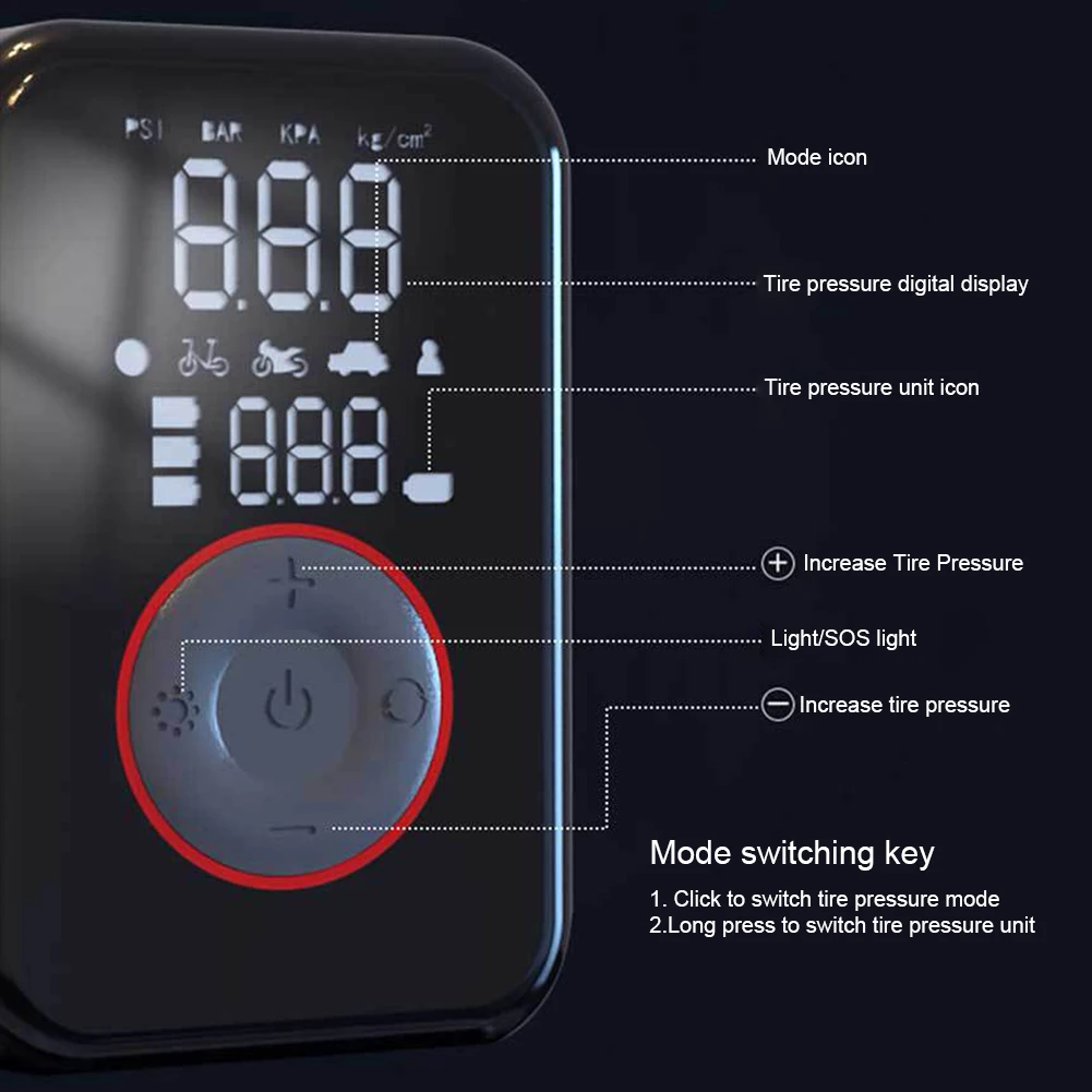 Electric Car Inflation Pump USB Type-C Rechargeable Portable Digital Tire Air Pu