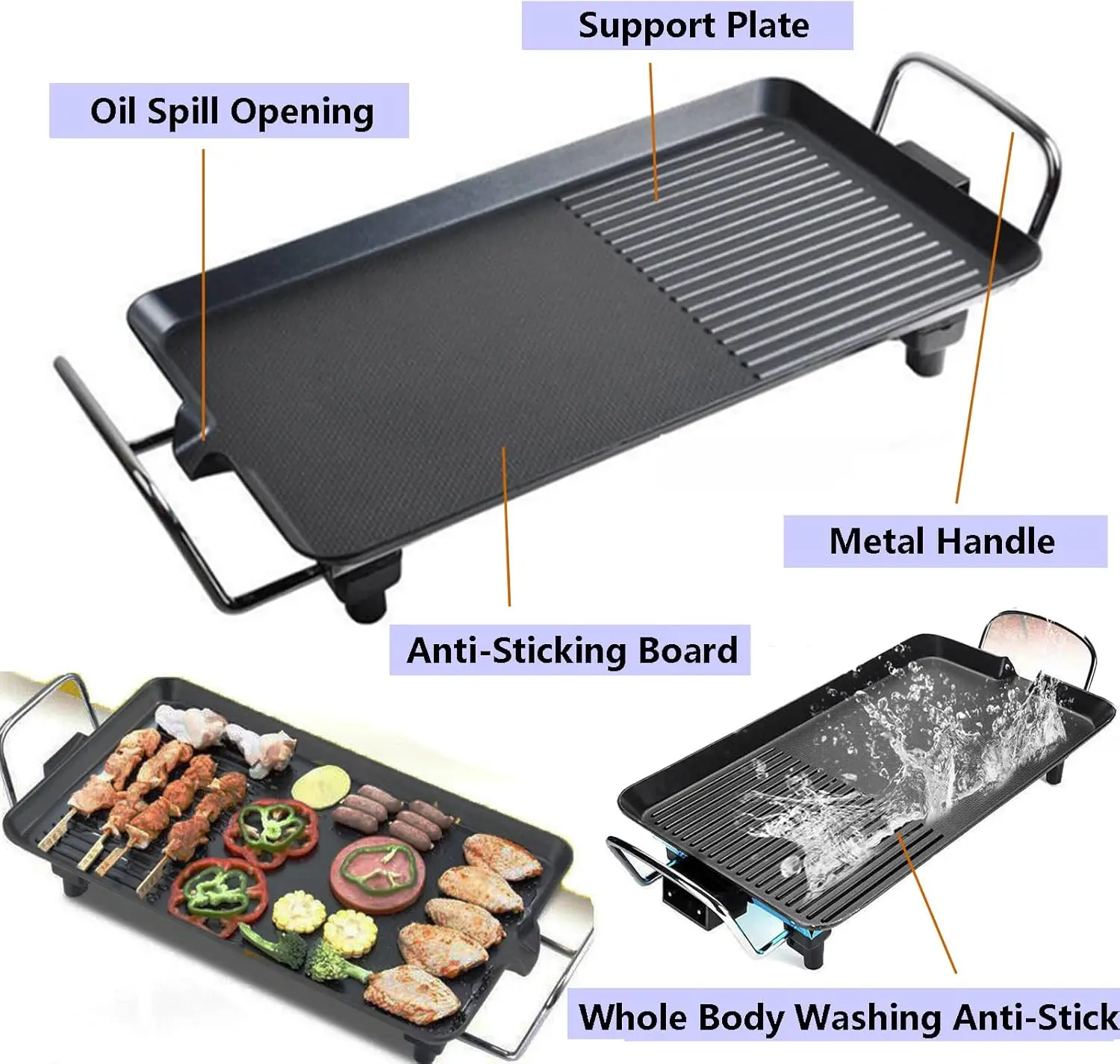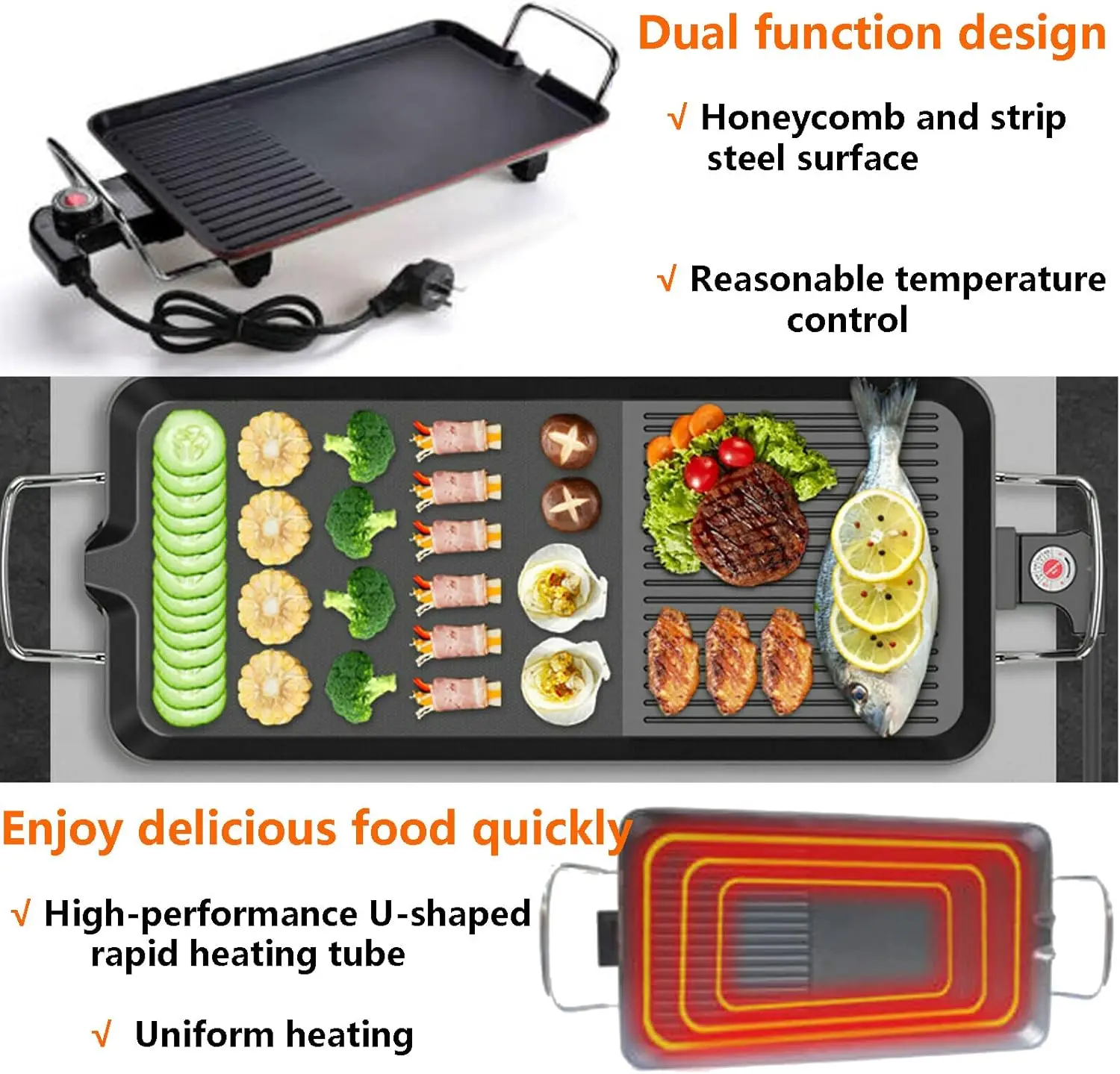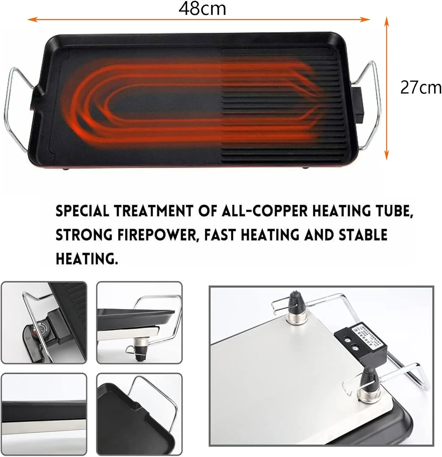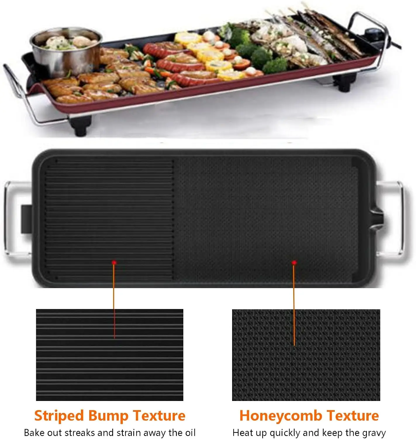 Electric Teppanyaki Grill Plate, Large Smokeless Table Top Grill Non-Stick Barbe