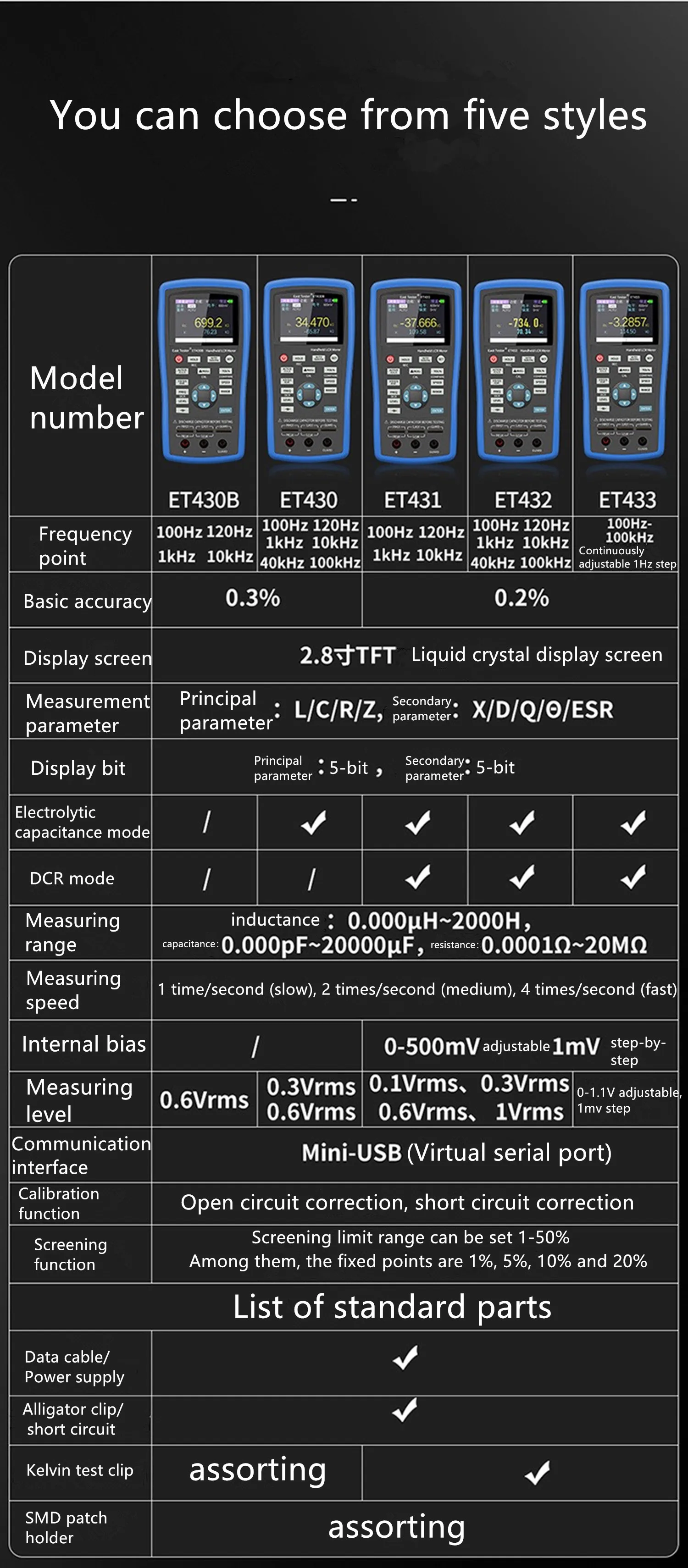 ET430 ET431 ET432 ET433 Multifunction Handheld LCR Digital Bridge Meter High Pre