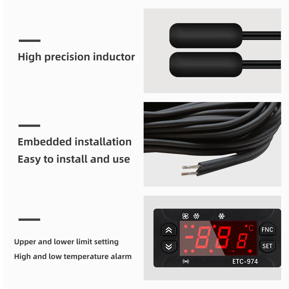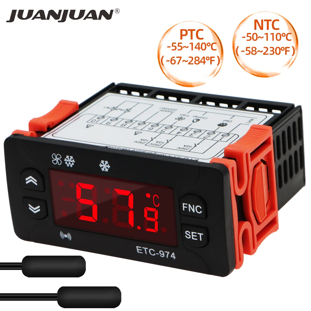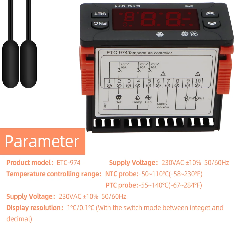 ETC-974 Temperature Controller Refrigerator Defrosting Heating Control Thermoregulator with Dual NTC Sensor 220V