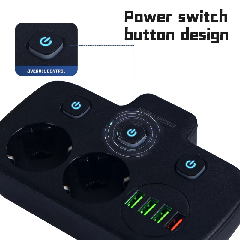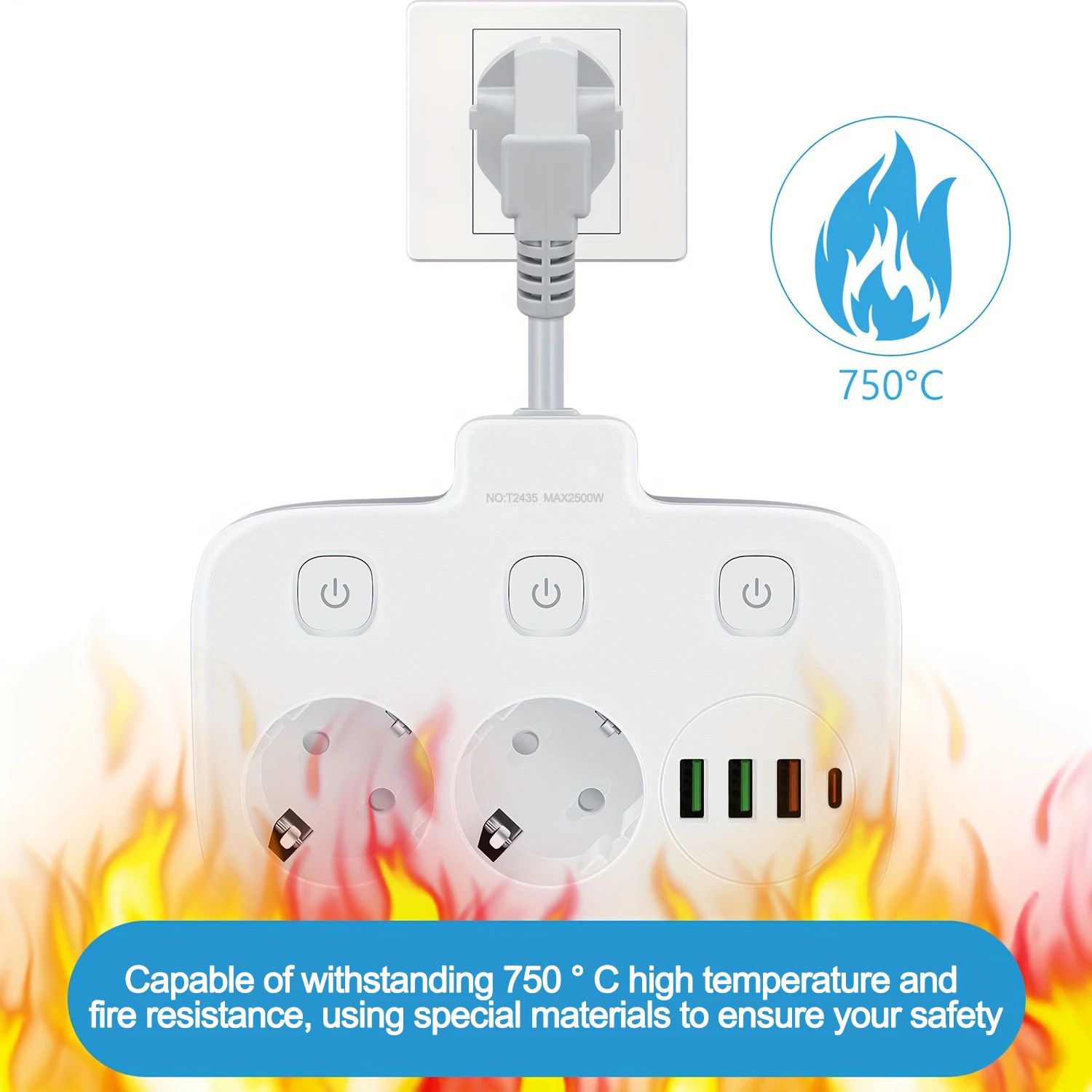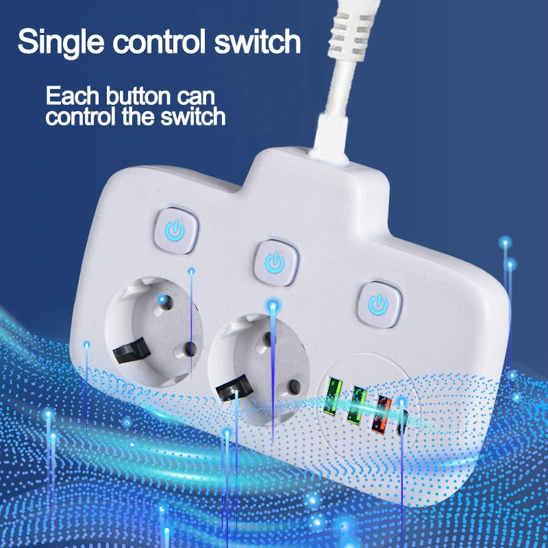 EU Plug AC Outlet Power Strip Multitap Separate Control Wall Electrical Socket w
