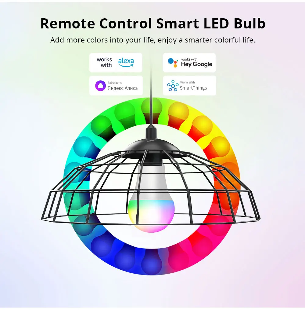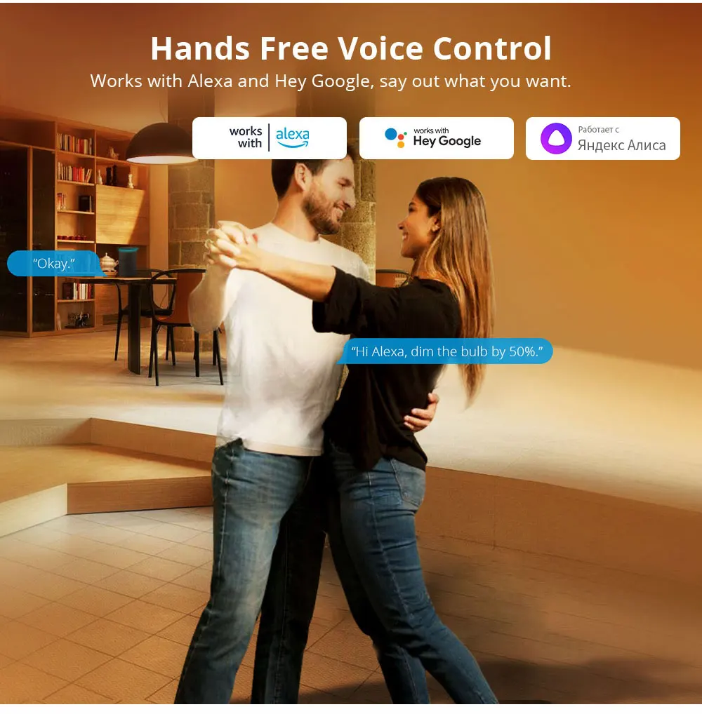 Our smart led light bulbs are compatible with Yandex Alice,Amazon Alexa,Google Assistant for easy voice control.Just control it via your voice to turn on/off or dim/brighten your light, even switch your light to specific color as you desired.No hub required and easy to install.