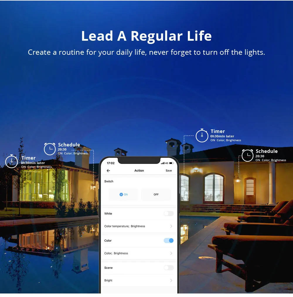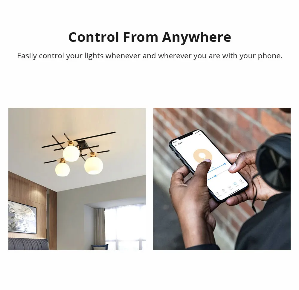 You can control WiFi GU10 bulb anywhere you like if you have an internet connection.When you are outside,you don't have to check whether every lamp is off or not,just one-tap control on your eWelink App.