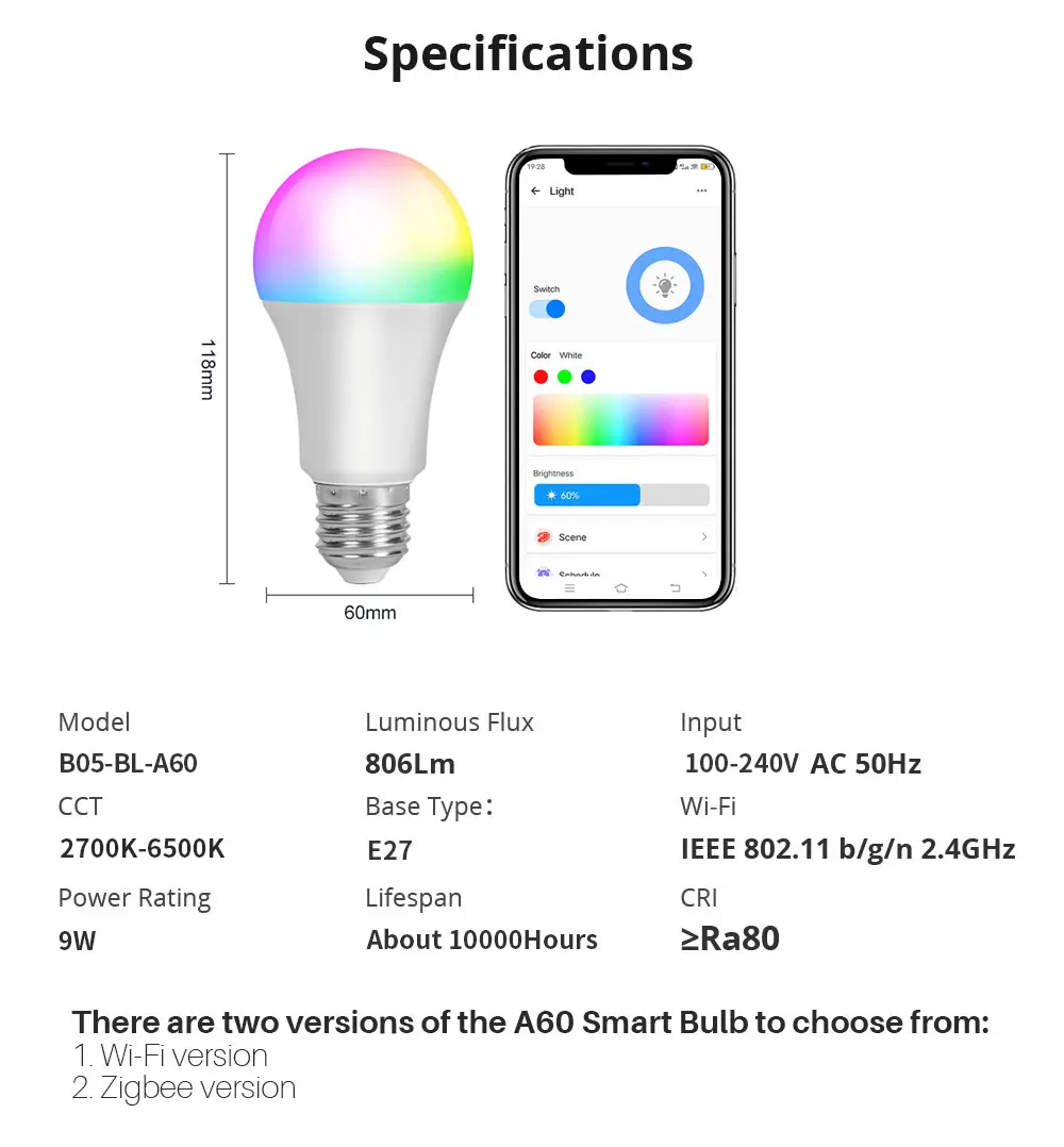 A60 Smart Blub-WiFi Version Specifications: