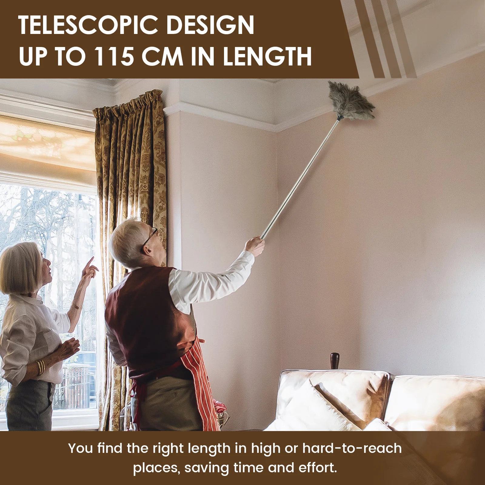 Extendable DesignFeaturing a telescopic design, you can freely adjust its length during use. It can extend up to a maximum length of 115cm, so you can find the right length in high or hard to access areas with ease, saving time and effort