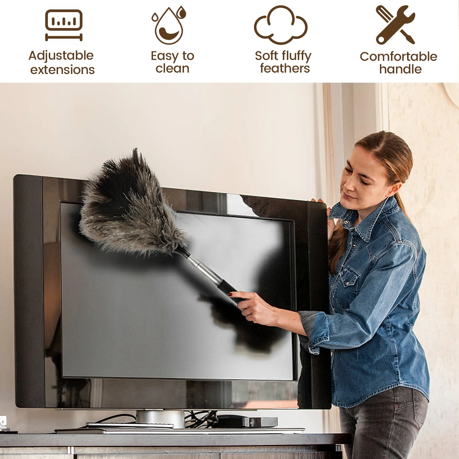 Usage InstructionsBefore use, shake the duster by hand or hang it in the sun for 2 hours to make the feathers fluffier. After use, you can shake it to get rid of dust or wash it with lukewarm water and let it