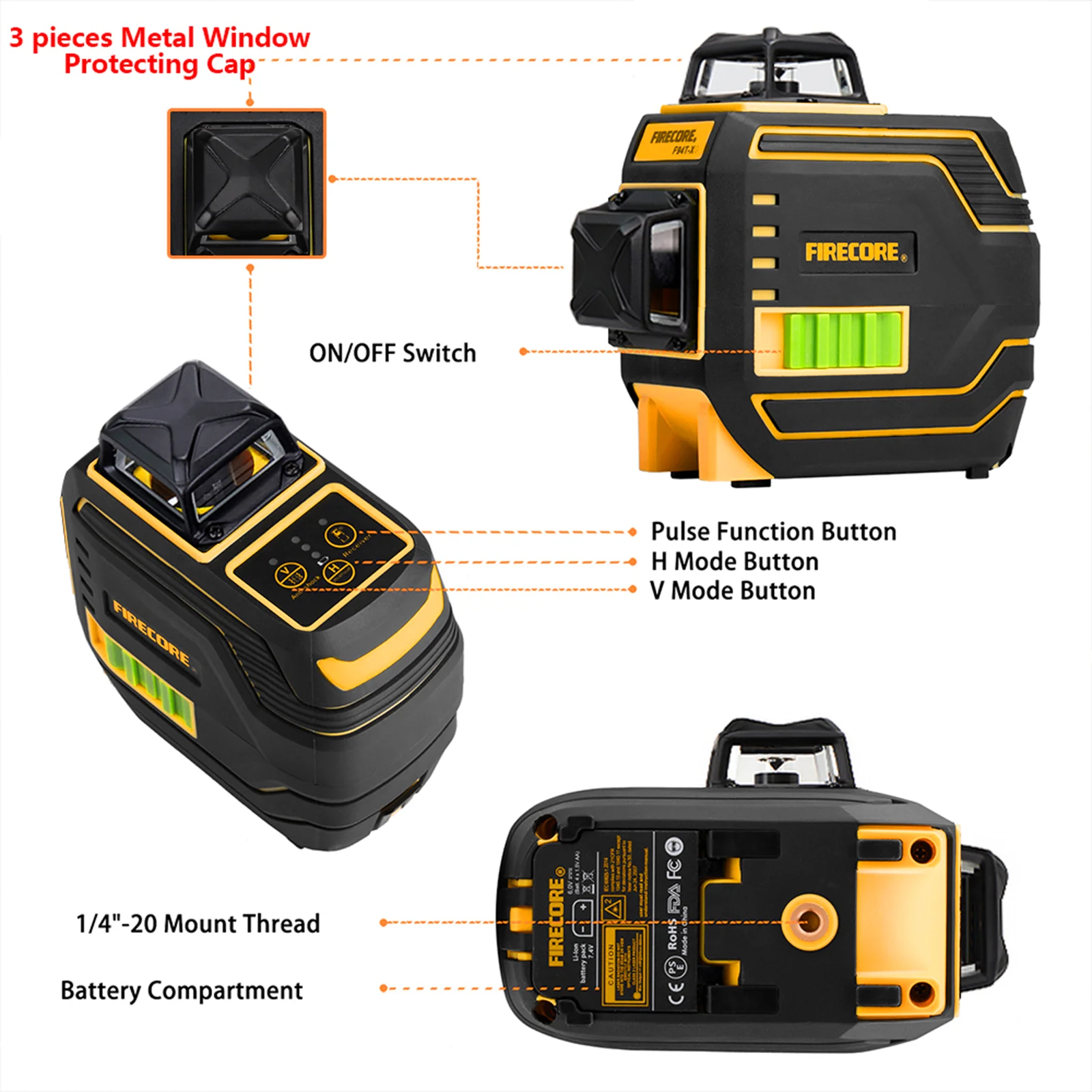 3. The laser tool is covered by TPR soft rubber, with 3pcs upgraded rubber window mats, which bring soft touch and stronger protection for Anti-Drop