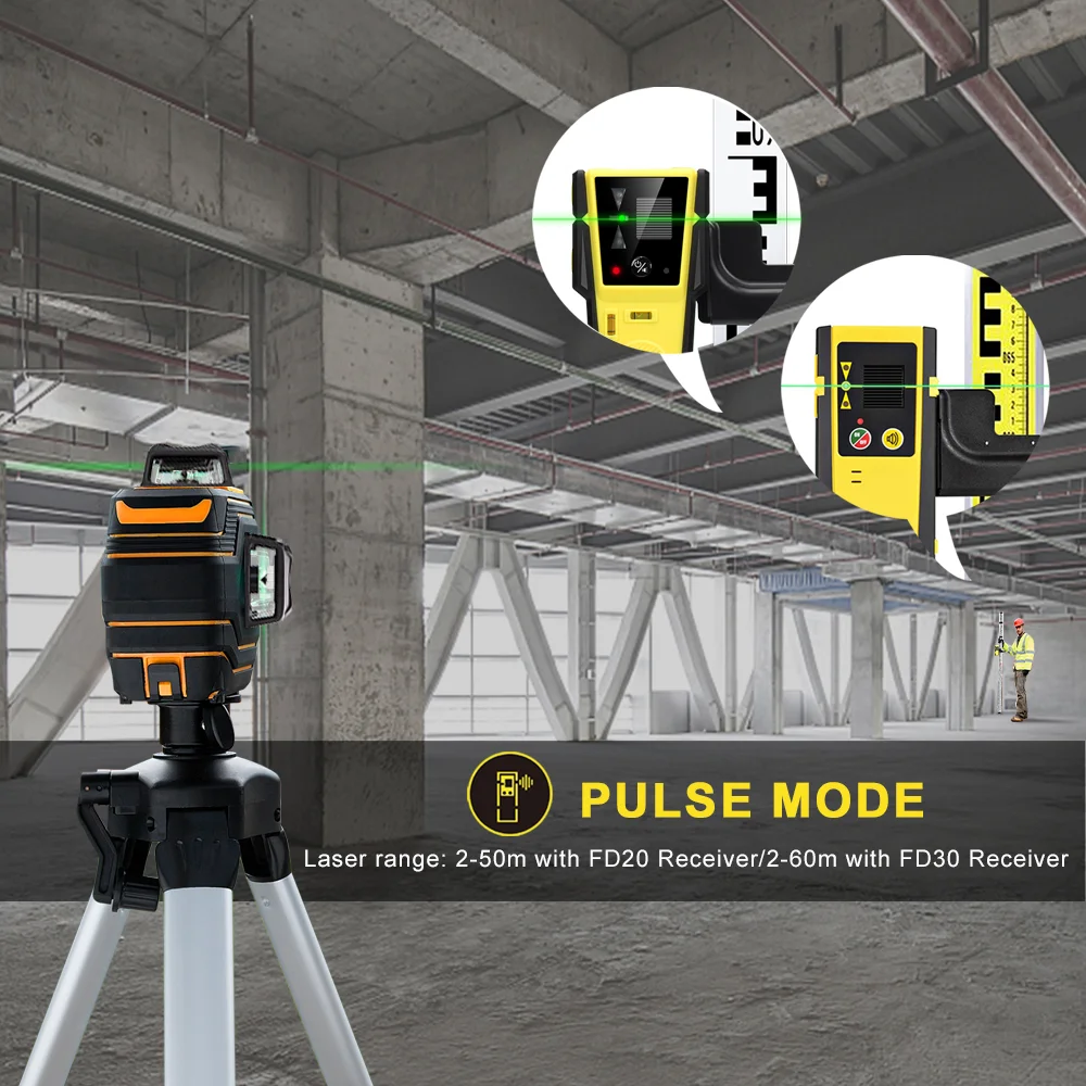 1: First, turn on laser level's pulse modePress the "Receiver" button, after flashing about 3 times until it stops flashing and then enters the pulse mode