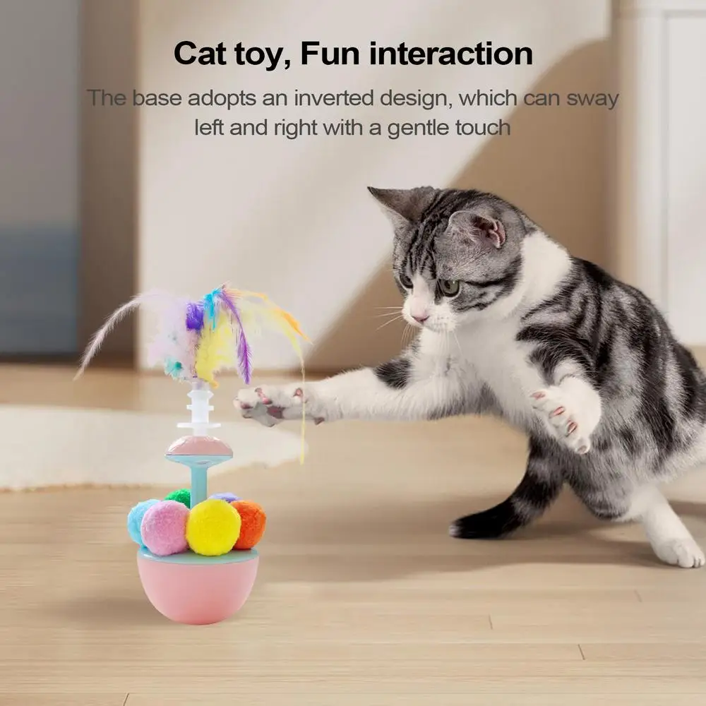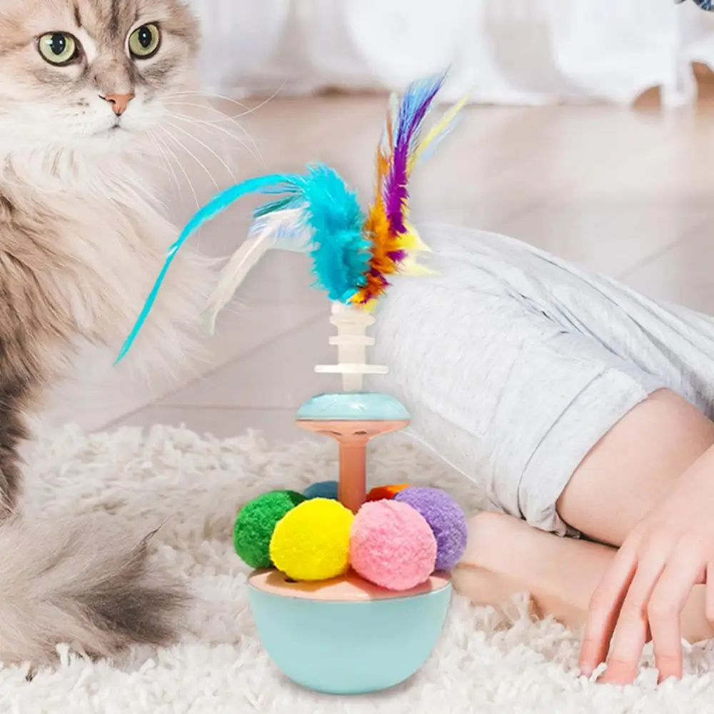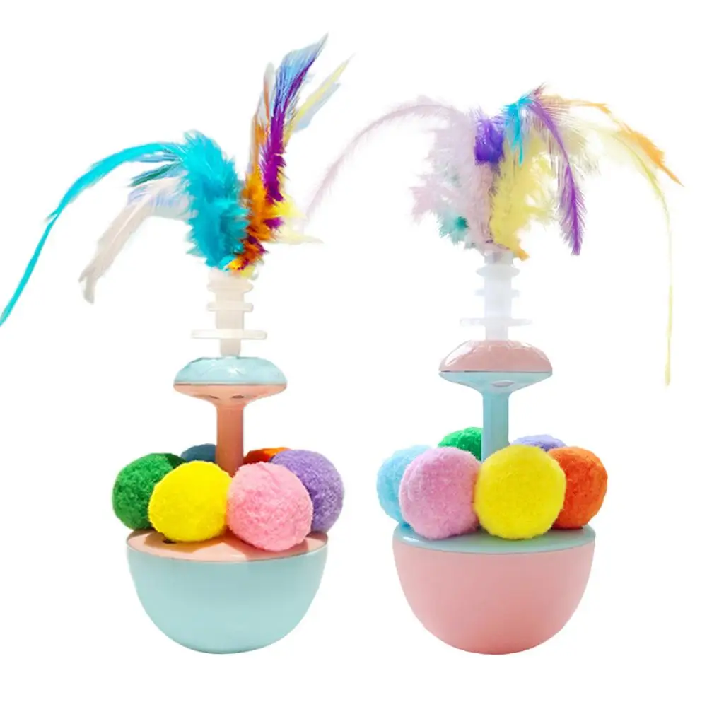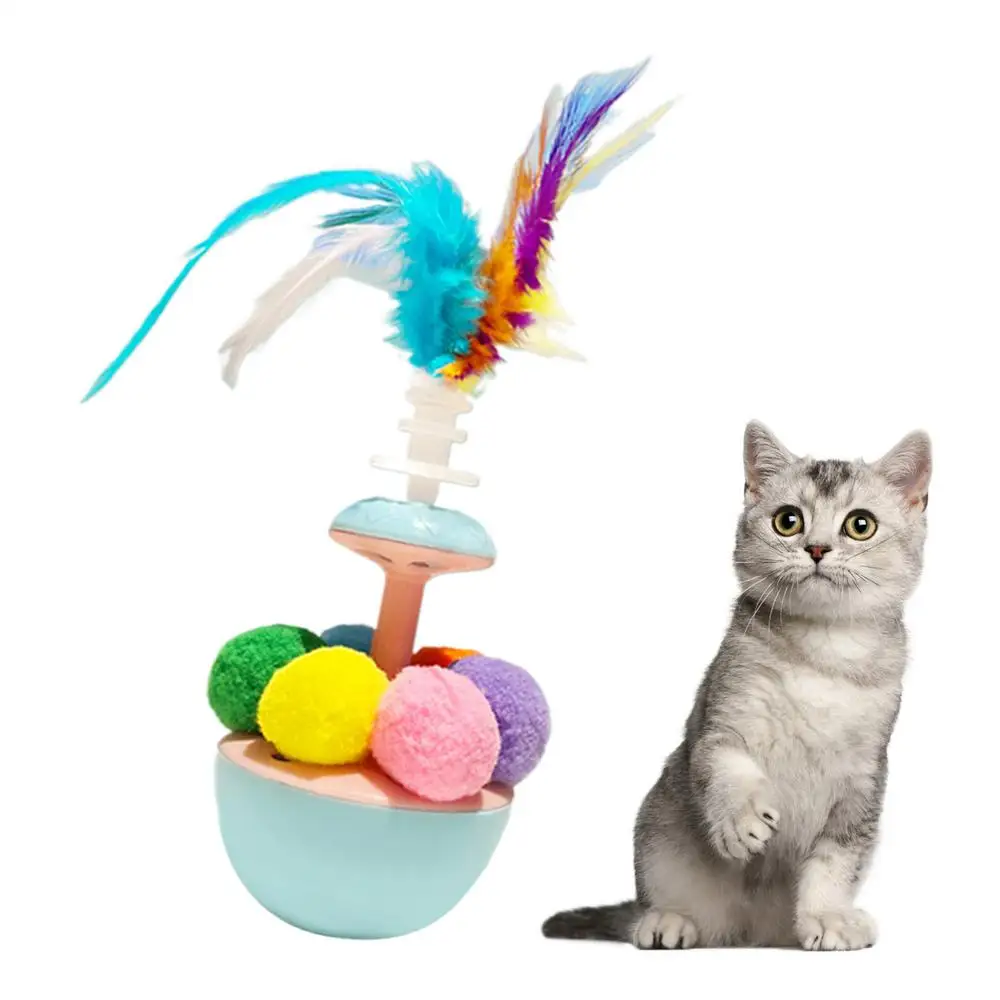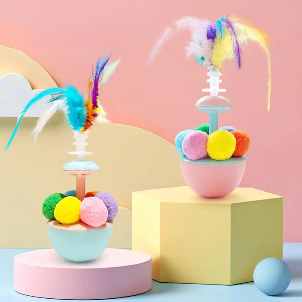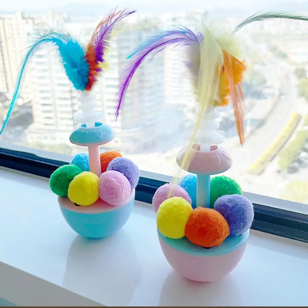 Feather Ball Cat Toy Balance Swing Toys Portable Cat Feather Interactive Self-Pl
