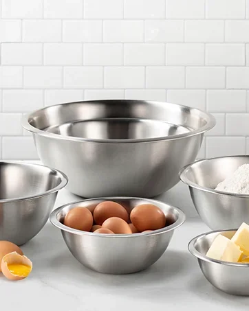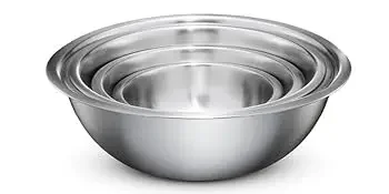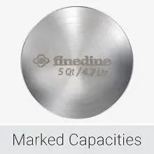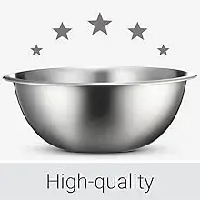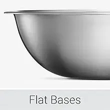 Constructed of top-grade brushed stainless steel for quality you can see and feel. The bowls resist dents, cracks, stains, and never absorb odors. | Mixing, beating, whipping, and tossing are easy and comfortable with the bowls wide flat rim that allows you to get the best grip and a drip-free pour. | The bowls flat base ensures stability and flush placement on the kitchen counter for mess-free cooking and food preparation. | Clearly see the capacity of the bowls contents with conveniently engraved measurement markings along the outside of the bowls. |