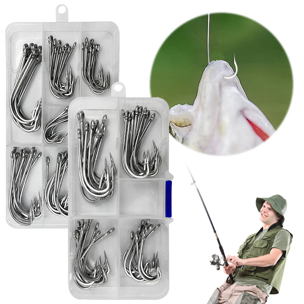 Fishing Hooks Set Stainless Steel Barbed FishHooks Fishing Barbed Hooks for Freshwater Saltwater Fishing Accessories