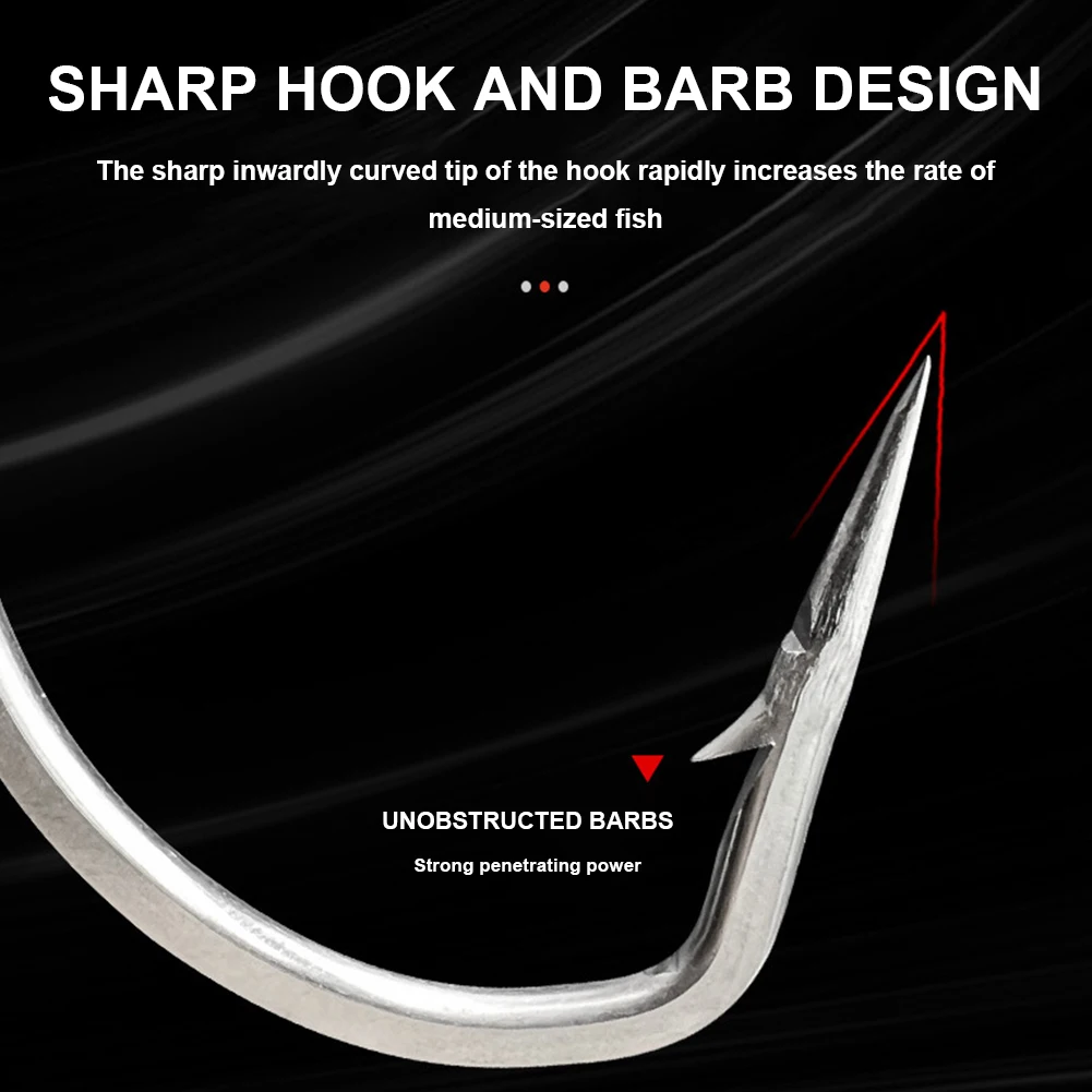 1.Sharp Hook Point: Crafted with precision, these fishing hooks are designed with a sharp hook point and distinct barbs for effective fish locking.
