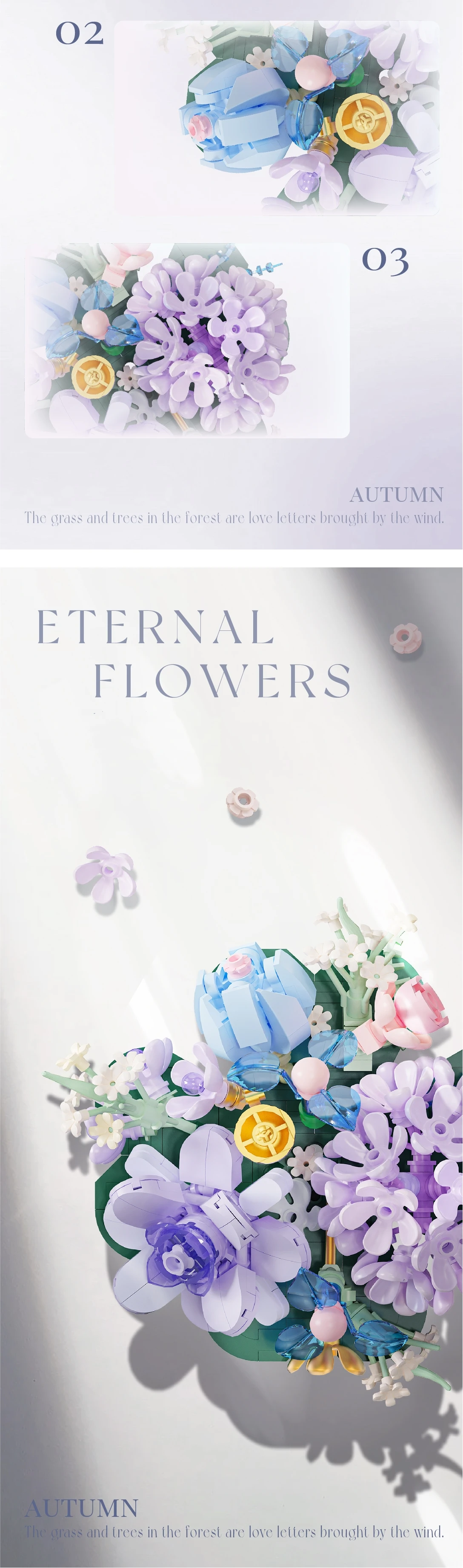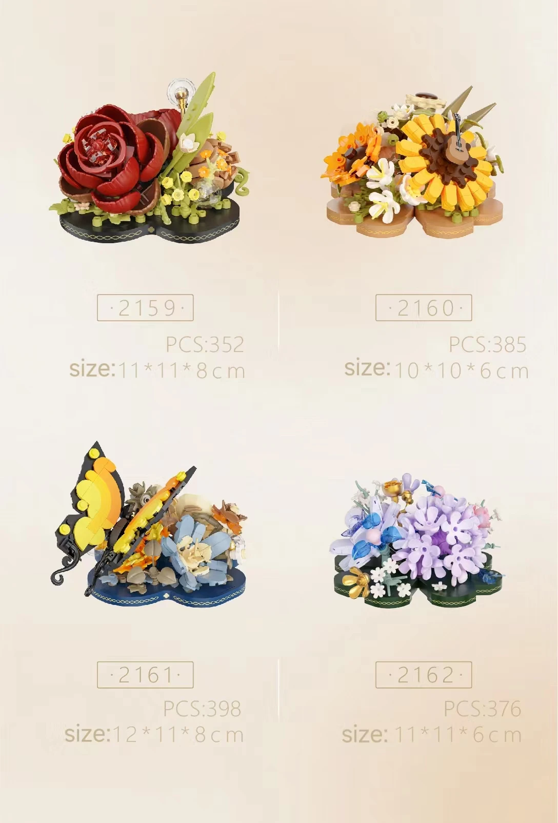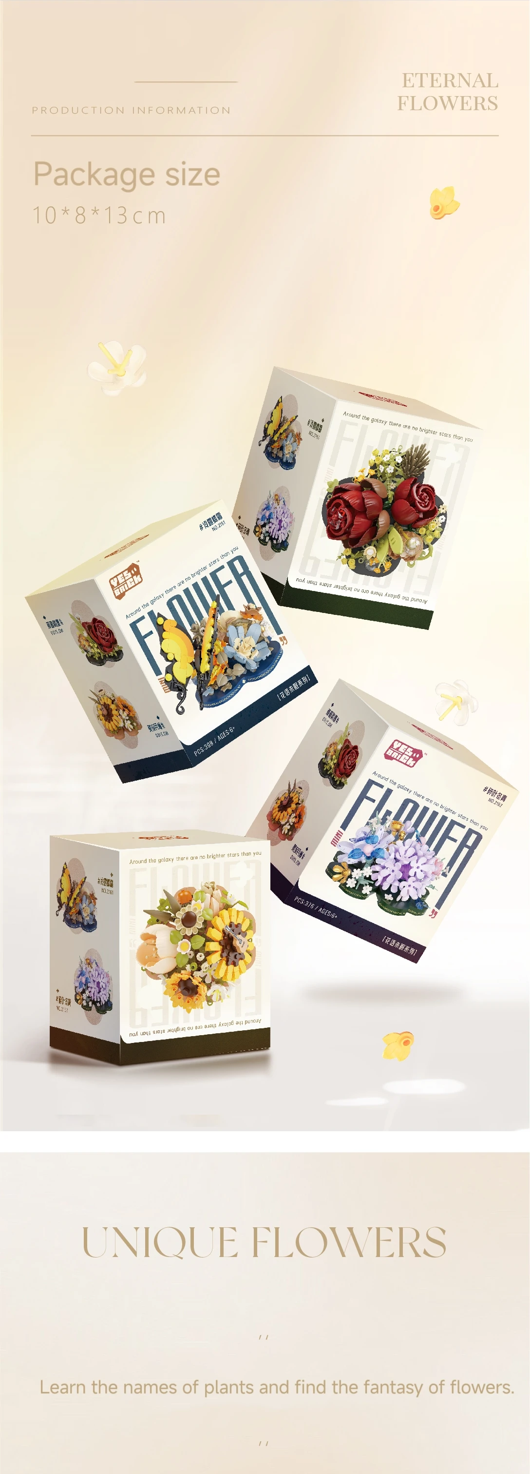Flower Bouquet Building Set, Mini Bricks Building Blocks Artificial Flowers, DIY