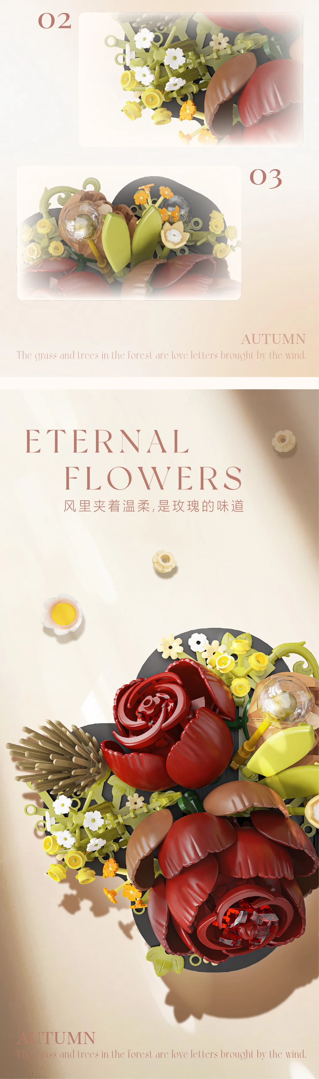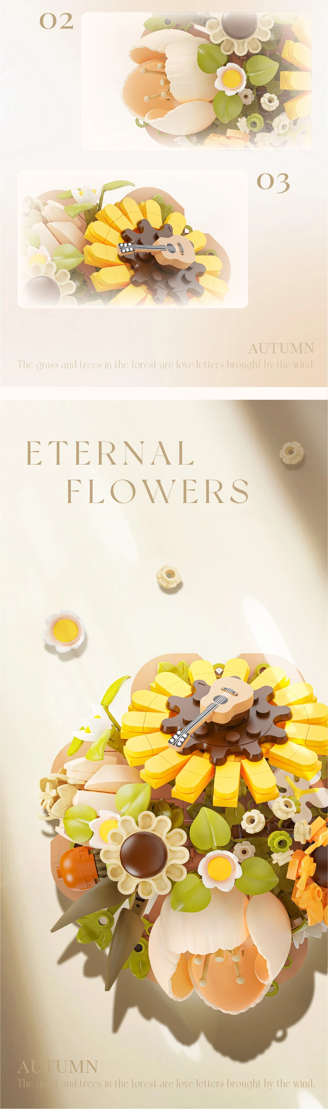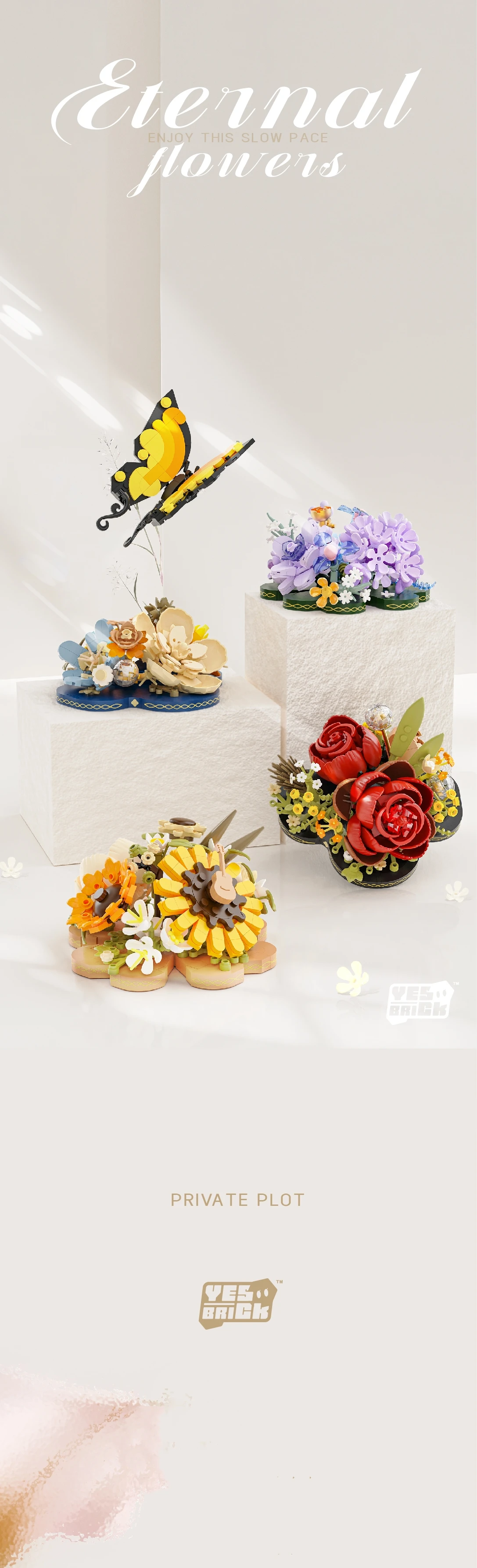 Flower Bouquet Building Set, Mini Bricks Building Blocks Artificial Flowers, DIY