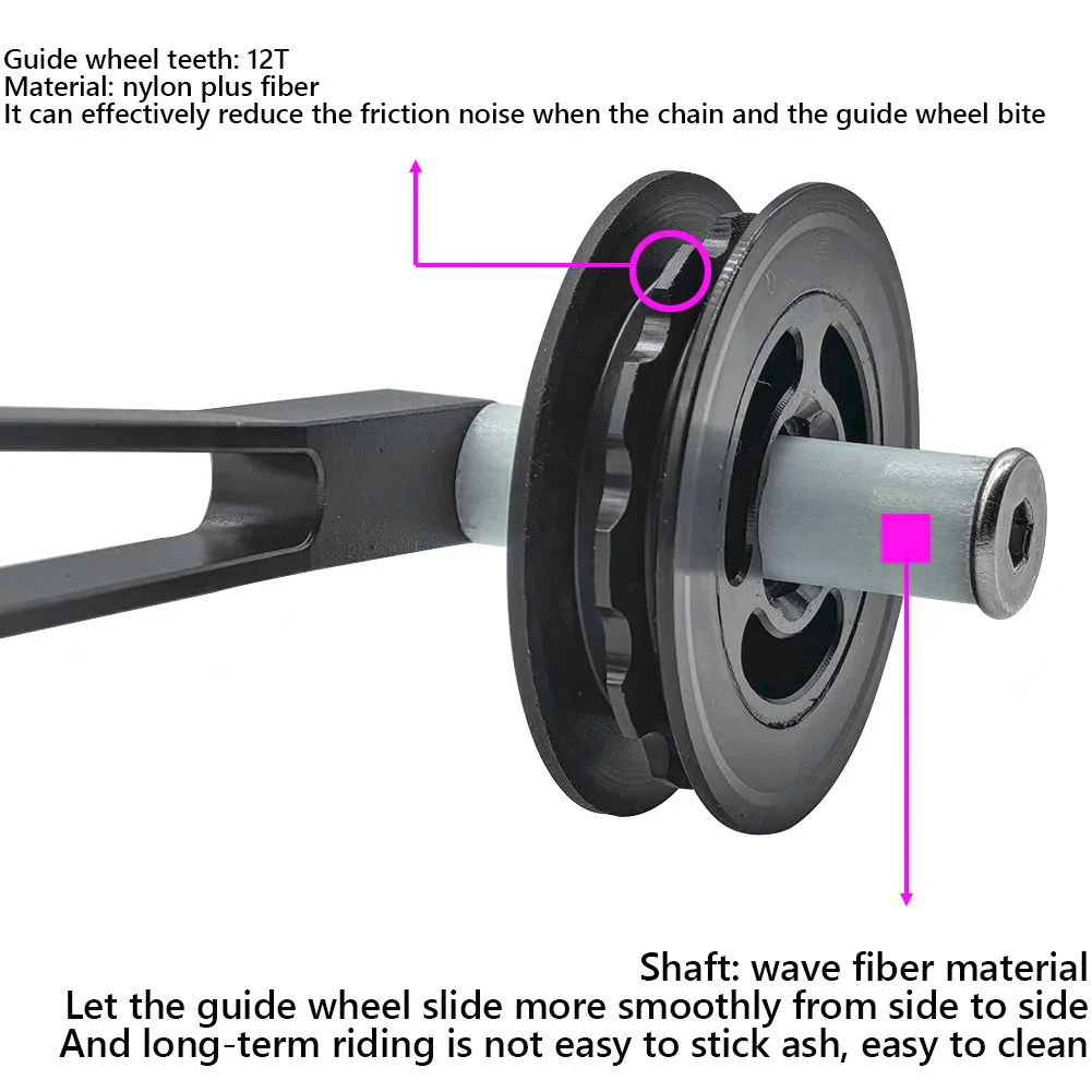 ![]() Bike Rear Derailleur Chain Stabilizer 5Speed 6Speed 7Speed Folding Bike Chain Stabilizer Aluminum Alloy Folding Bicycle Rear Derailleur Compatible with Brompton Bicycle Accessories Features: 1.Compatible with Brompton: Fits for folding bike chain tensioner models with hook-claw frame design. It is expertly designed to maintain compatibility with small wheelers similar compatible with Brompton, ensuring your bike stays in optimal condition. 2.12T Nylon Pulley: Engineered with a nylon and fiber material, the guide pulley reduces friction noise when the bike rear derailleur chain stabilizer engages, providing a quieter ride. 3.Smooth Sliding Spindle: Glass fiber spindle allows the folding bike chain stabilizer to glide smoothly during use, resisting dust accumulation and simplifying cleaning maintenance. 4.5-Speed Suitability: Recommended for setups with cycling chain tensioner up to 5 speeds, minimizing chain drop risks due to frame constraints of certain retrofits. 5.Gear Ratio Options: For folding bicycle rear derailleur enhancements, utilize 9s or 10s cassettes with ratios from 11T to 21T, suitable for different speed configurations. Specification: Origin: Mainland China This chain presser needs to be used with a rear derailleur, and cannot be used compatible with Brompton turntable derailleur! Main Material: Aluminum Alloy Color: Black, Silver Size: About 16.8cm (6.61in)*9.2cm (3.62in) Net Weight: About 102.7g Note: 1*Folding Bike Chain Tensioner ![]() ![]() ![]() ![]() ![]() ![]() ![]() ![]() |