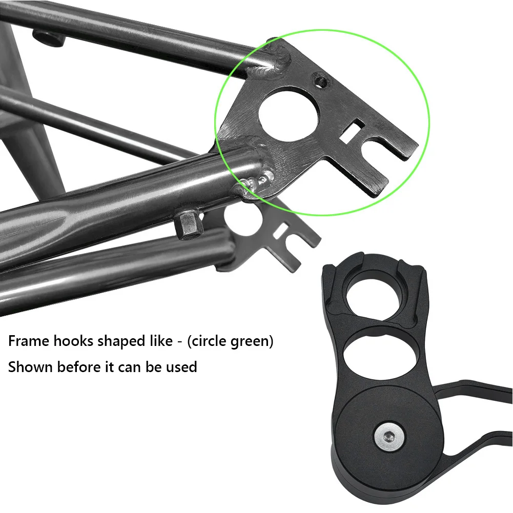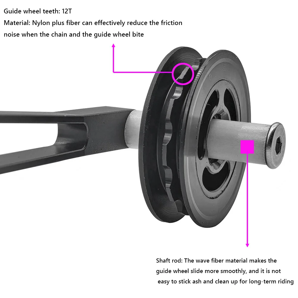 ![]() Bike Rear Derailleur Chain Stabilizer 5Speed 6Speed 7Speed Folding Bike Chain Stabilizer Aluminum Alloy Folding Bicycle Rear Derailleur Compatible with Brompton Bicycle Accessories Features: 1.Compatible with Brompton: Fits for folding bike chain tensioner models with hook-claw frame design. It is expertly designed to maintain compatibility with small wheelers similar compatible with Brompton, ensuring your bike stays in optimal condition. 2.12T Nylon Pulley: Engineered with a nylon and fiber material, the guide pulley reduces friction noise when the bike rear derailleur chain stabilizer engages, providing a quieter ride. 3.Smooth Sliding Spindle: Glass fiber spindle allows the folding bike chain stabilizer to glide smoothly during use, resisting dust accumulation and simplifying cleaning maintenance. 4.5-Speed Suitability: Recommended for setups with cycling chain tensioner up to 5 speeds, minimizing chain drop risks due to frame constraints of certain retrofits. 5.Gear Ratio Options: For folding bicycle rear derailleur enhancements, utilize 9s or 10s cassettes with ratios from 11T to 21T, suitable for different speed configurations. Specification: Origin: Mainland China This chain presser needs to be used with a rear derailleur, and cannot be used compatible with Brompton turntable derailleur! Main Material: Aluminum Alloy Color: Black, Silver Size: About 16.8cm (6.61in)*8.3cm (3.27in) Net Weight: About 107.3g Note: 1*Folding Bike Chain Tensioner |