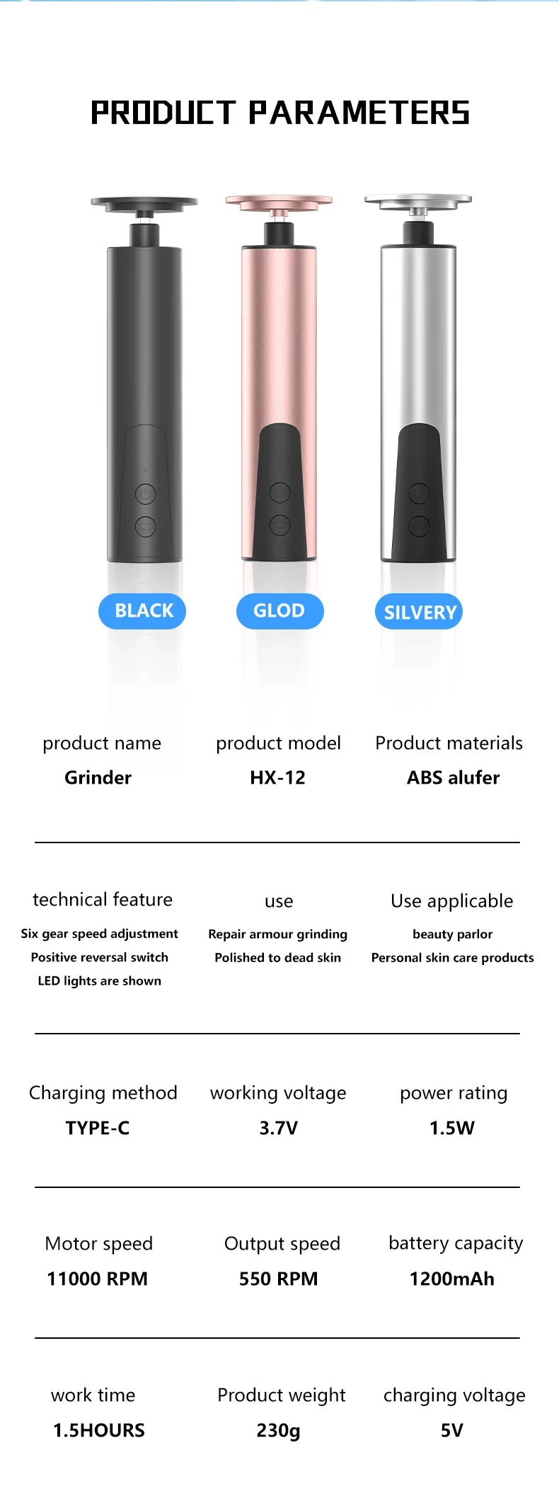 Rechargeable Power :The electric foot file boasts a rechargeable power system, providing convenience and longevity to the product's usage.