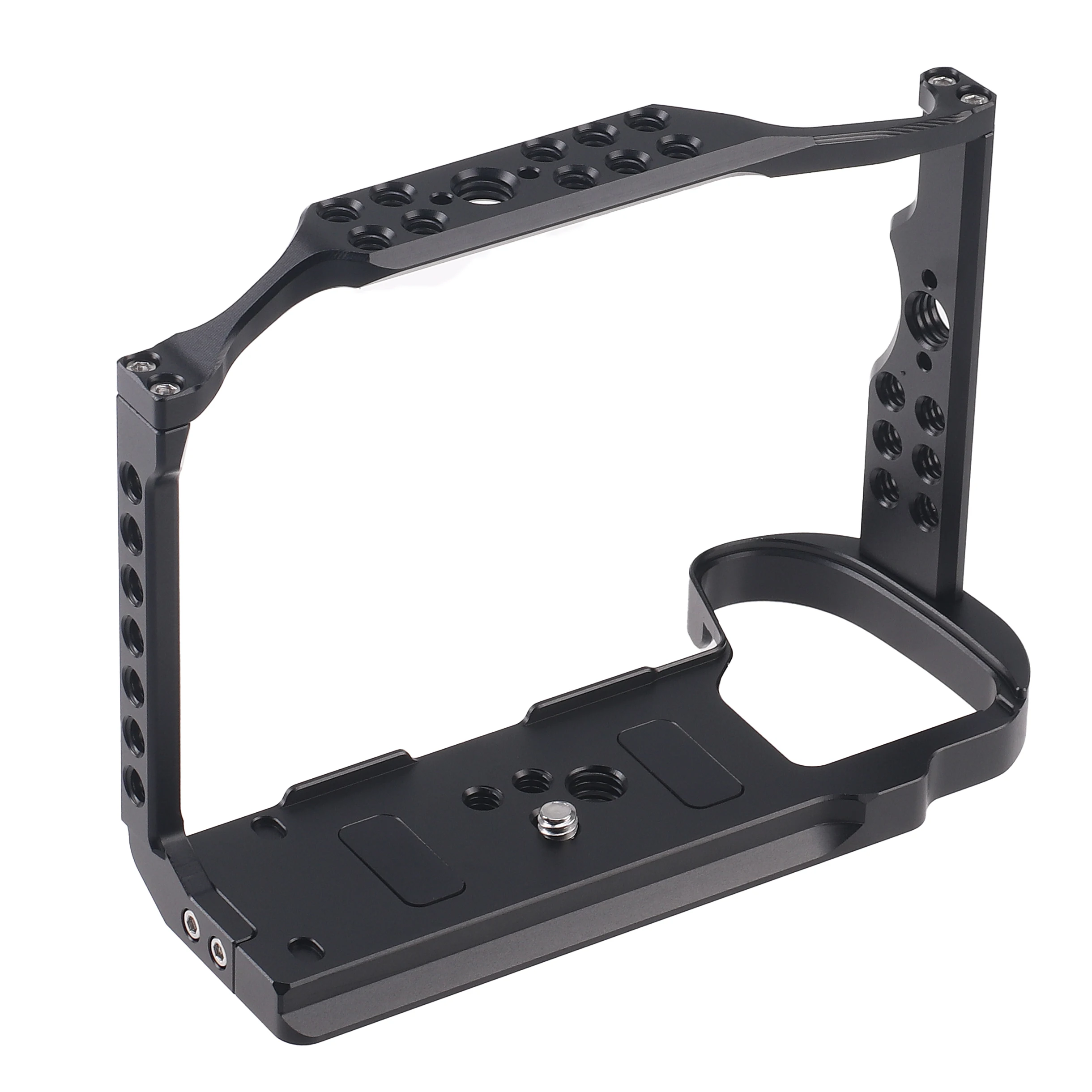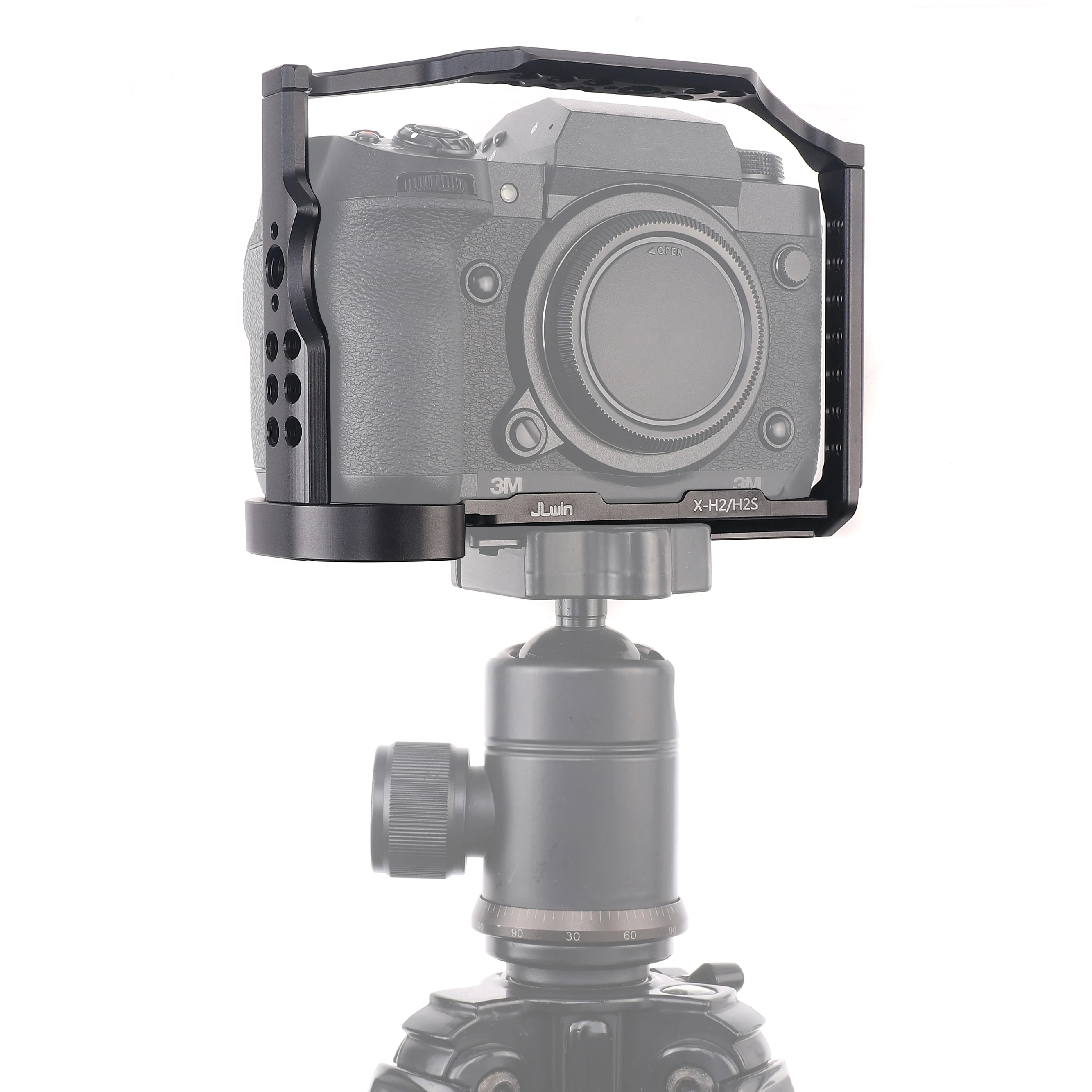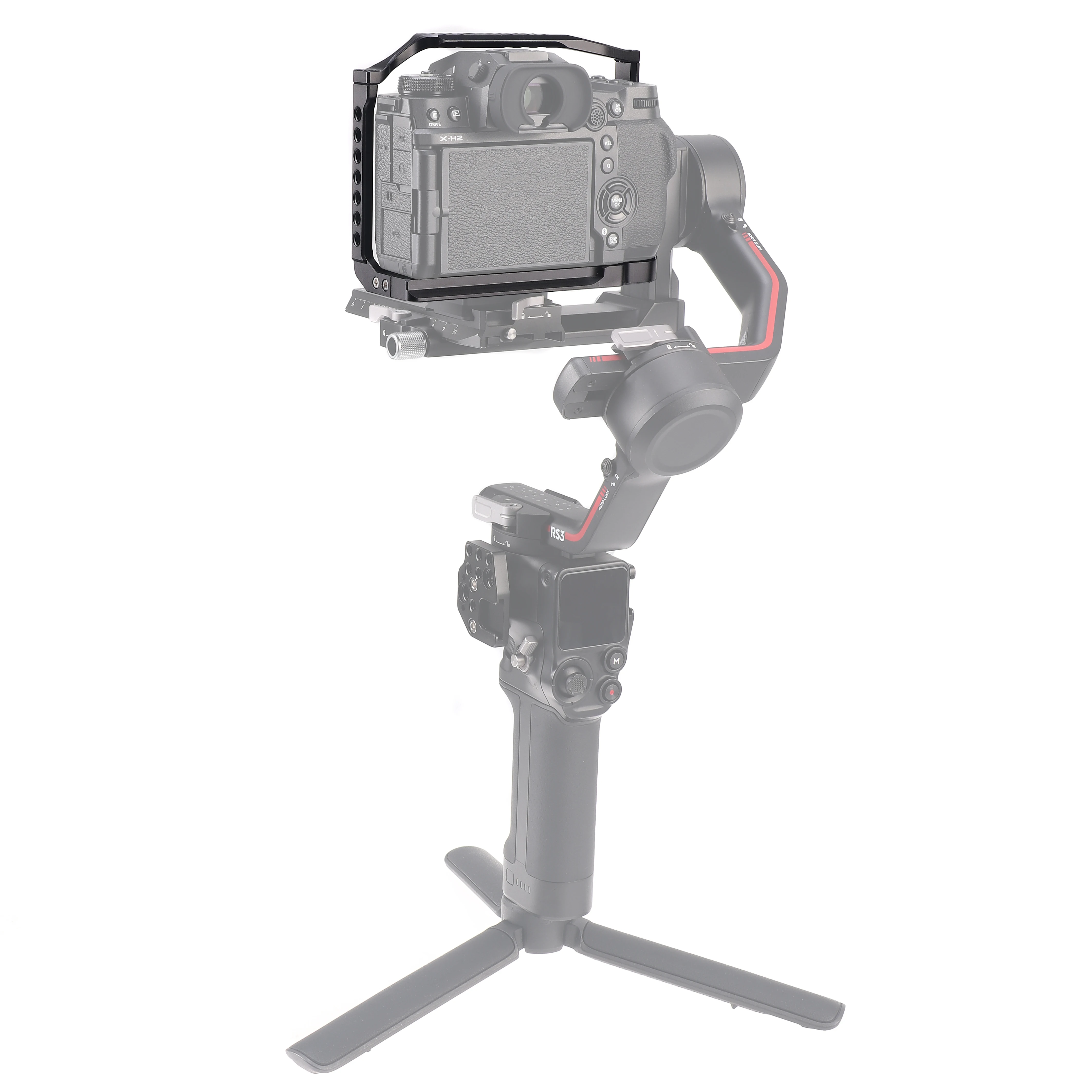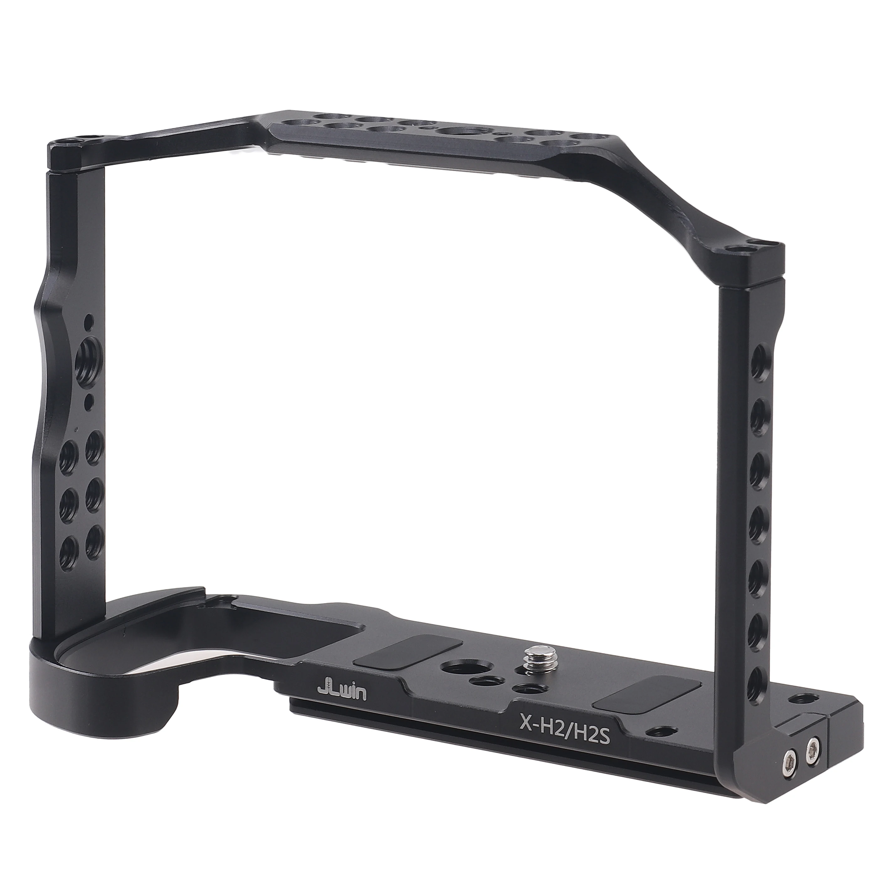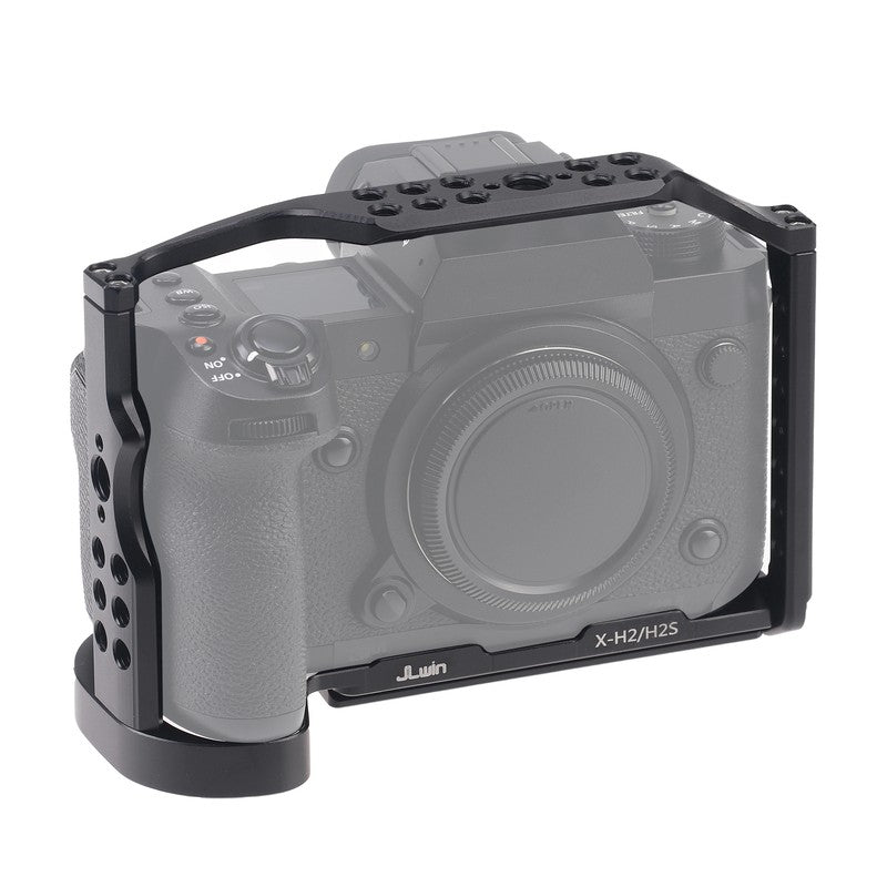 Aluminum Camera Cage is specifically designed for Fuji X-H2/X-H2S Camera. It is a full cage which is lightweight and perfectly form-fitting the camera. It is equipped with multiple 1/4" -20 and 3/8" -16 threaded holes, ARRl locating hole and cold shoe for accessories mounting.