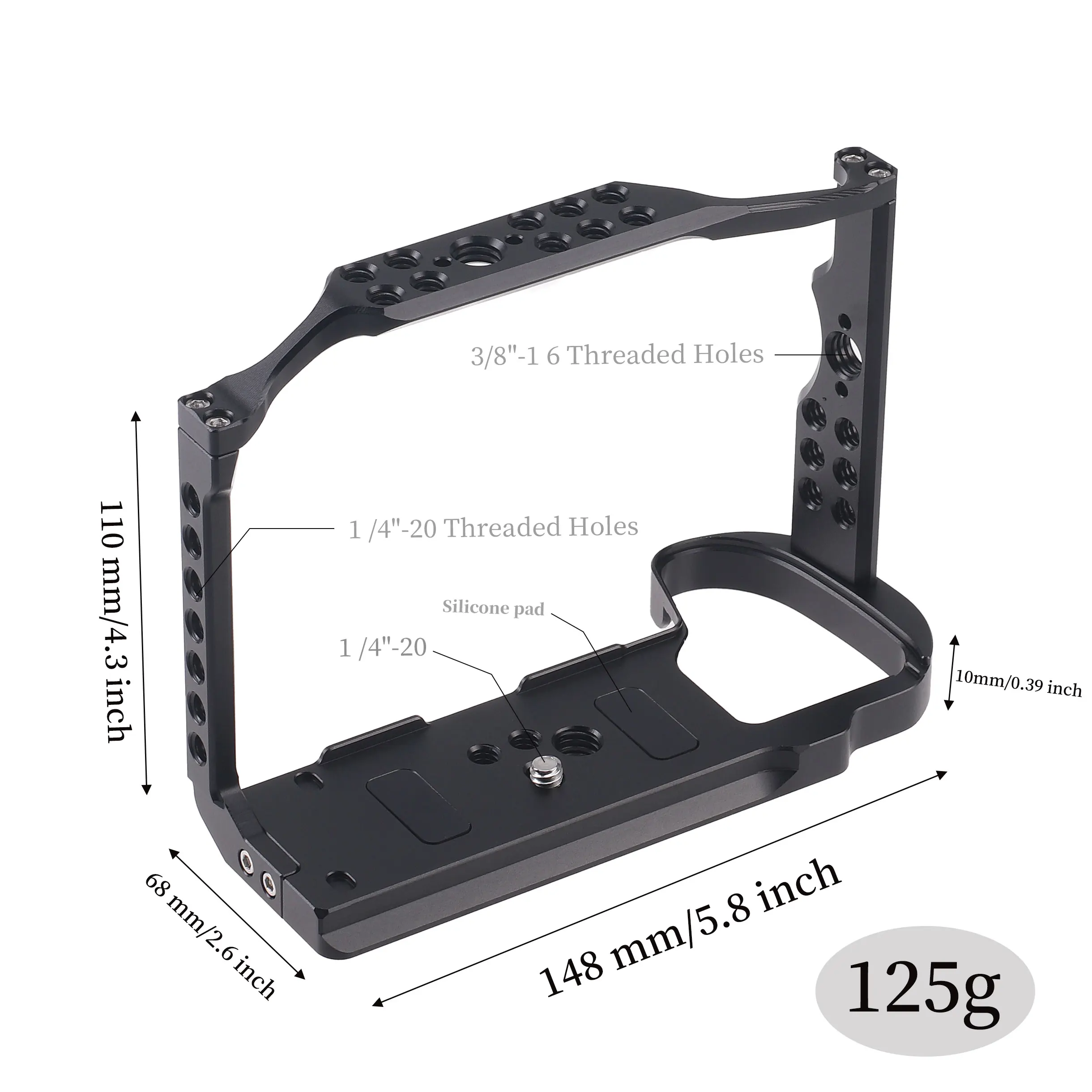 3. The bottom of the cage has anti-slip pads and anti-deflection design to protect the camera from scratching and movement. It also built in 1/4" -20 screw holes on the bottom to attach the camera to tripod.