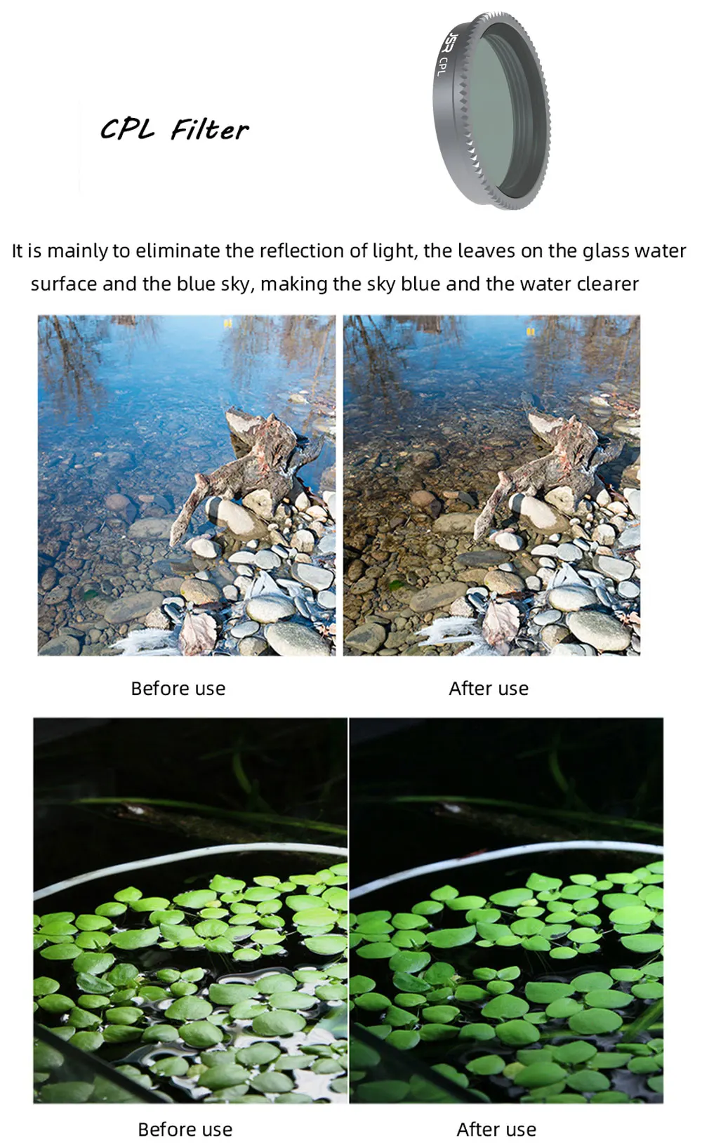 - Generally used in landscape photography, eliminating unnecessary polarized light, making the whole picture clearer and more transparent