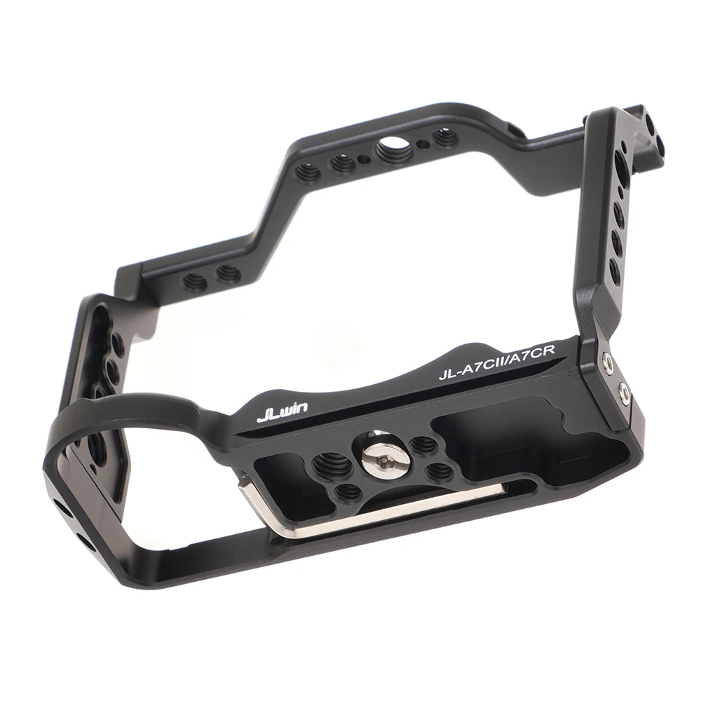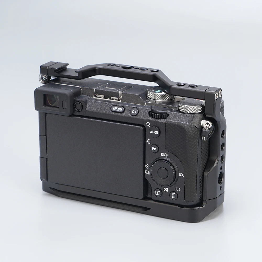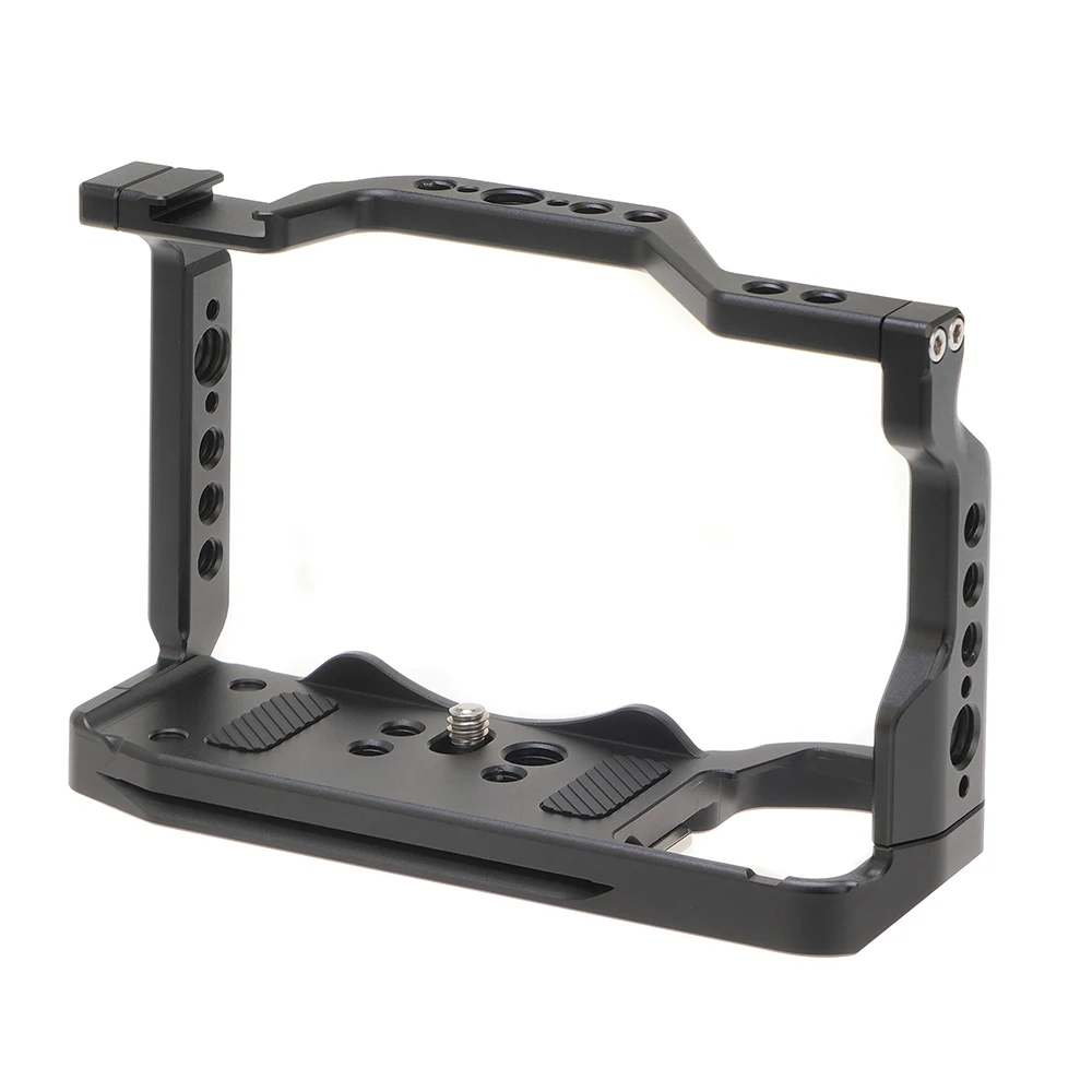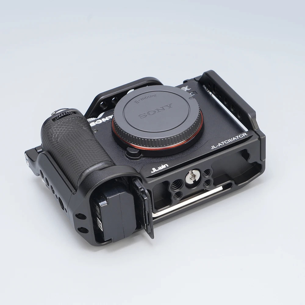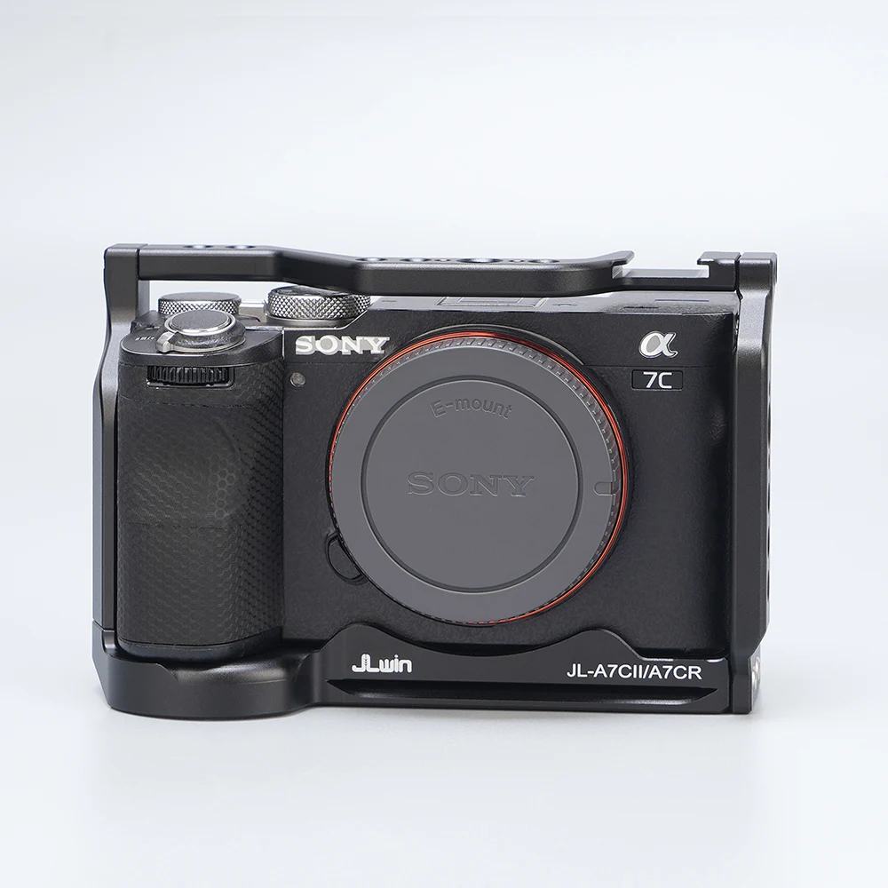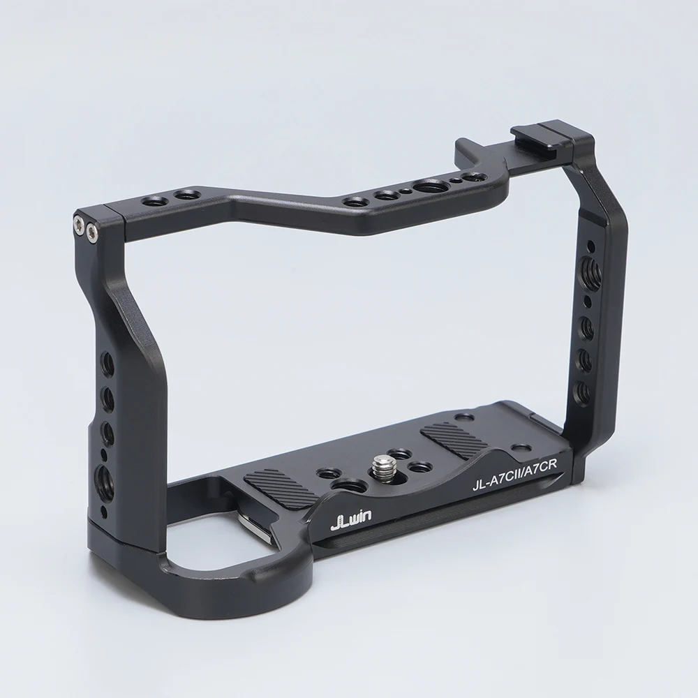Aluminum Camera Cage is specifically designed for Sony A7C2 A7CII A7CR Camera. It is a full cage which is lightweight and perfectly form-fitting the camera. It is equipped with multiple 1/4" -20 and 3/8" -16 threaded holes, ARRl locating hole and cold shoe for accessories mounting.