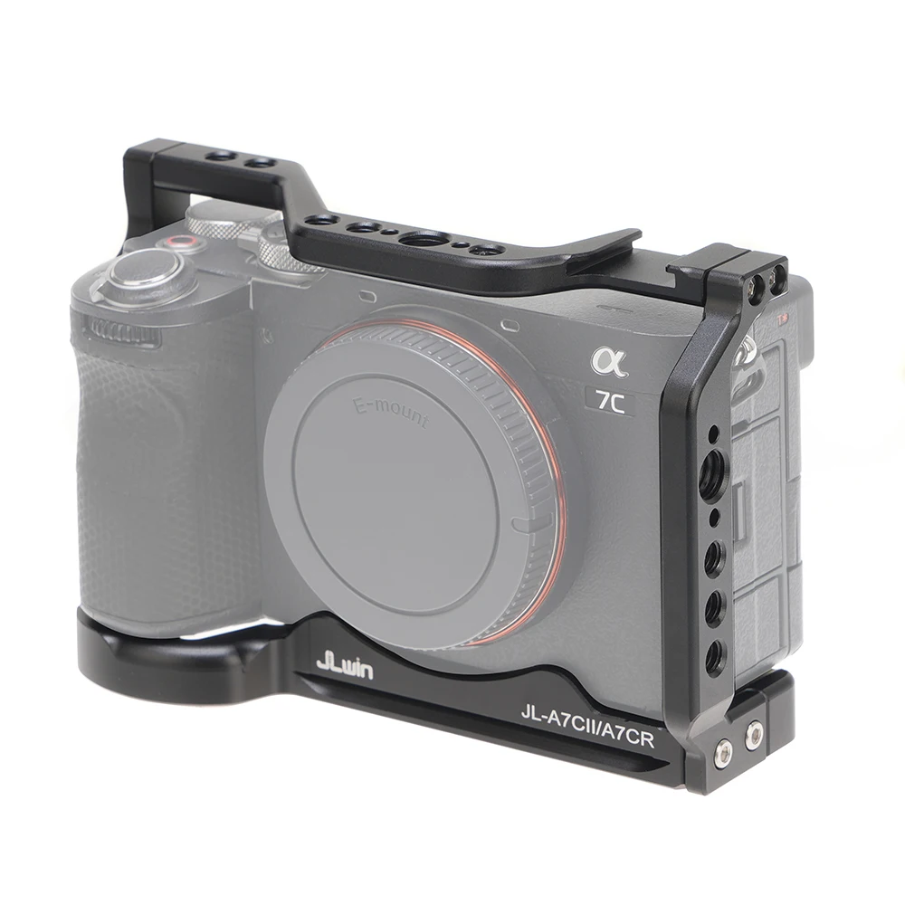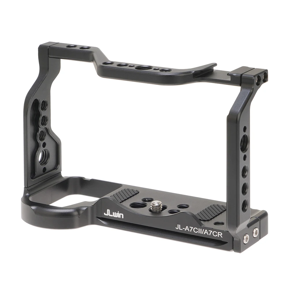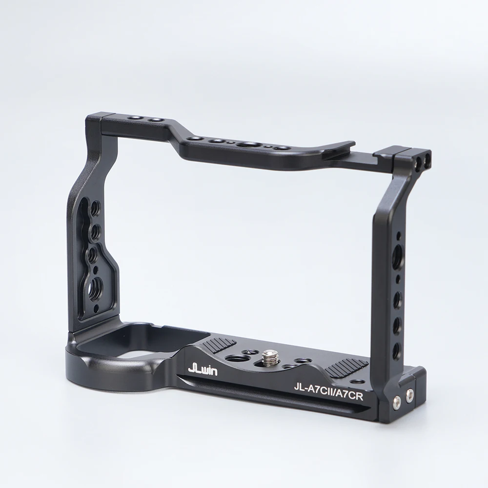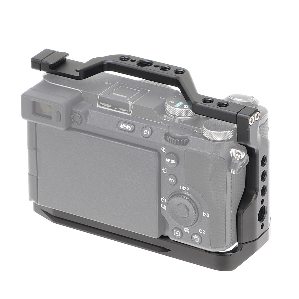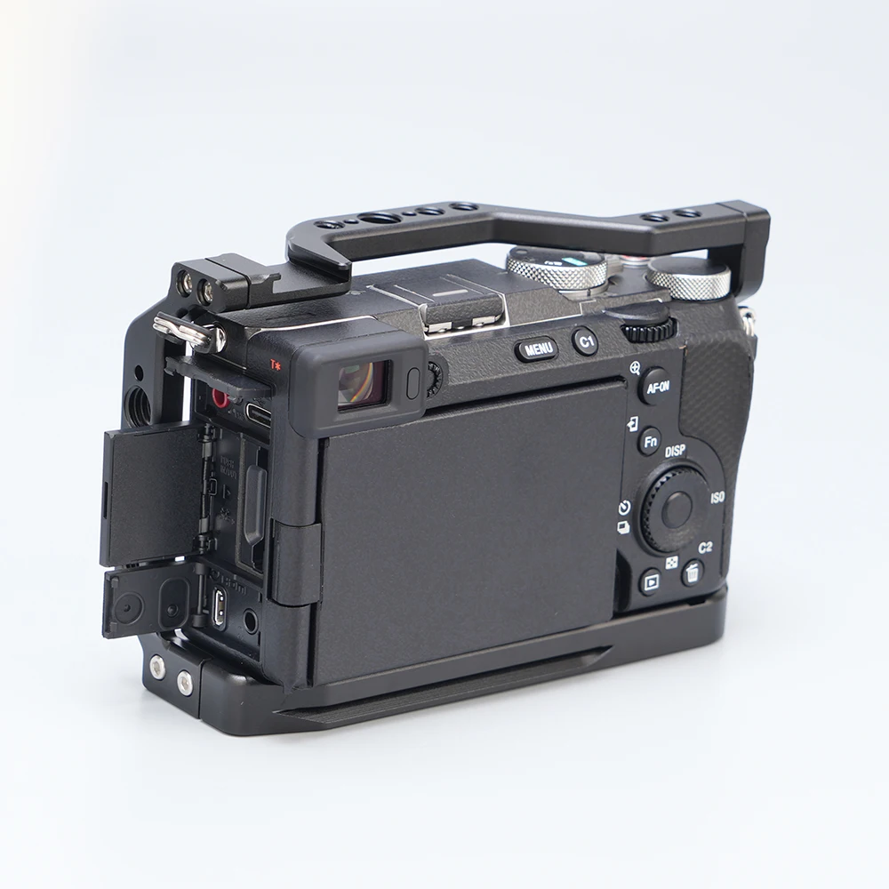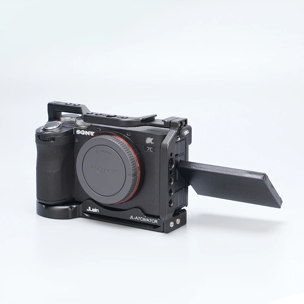 Aluminum Camera Cage is specifically designed for Sony A7C2 A7CII A7CR Camera. It is a full cage which is lightweight and perfectly form-fitting the camera. It is equipped with multiple 1/4" -20 and 3/8" -16 threaded holes, ARRl locating hole and cold shoe for accessories mounting.