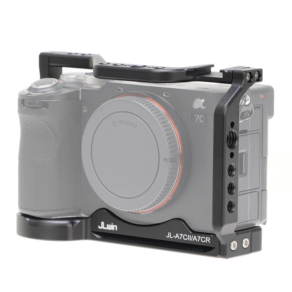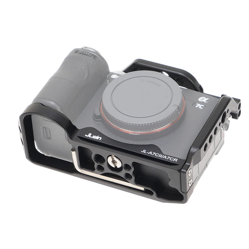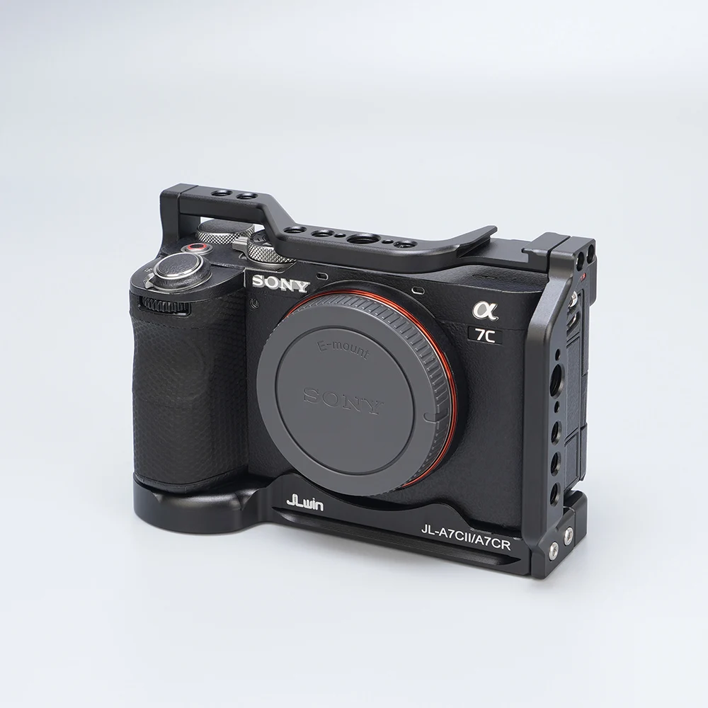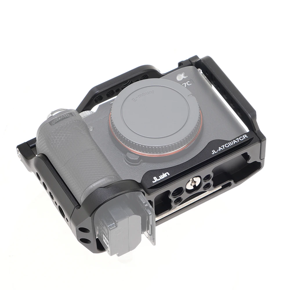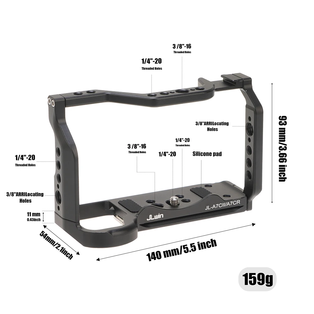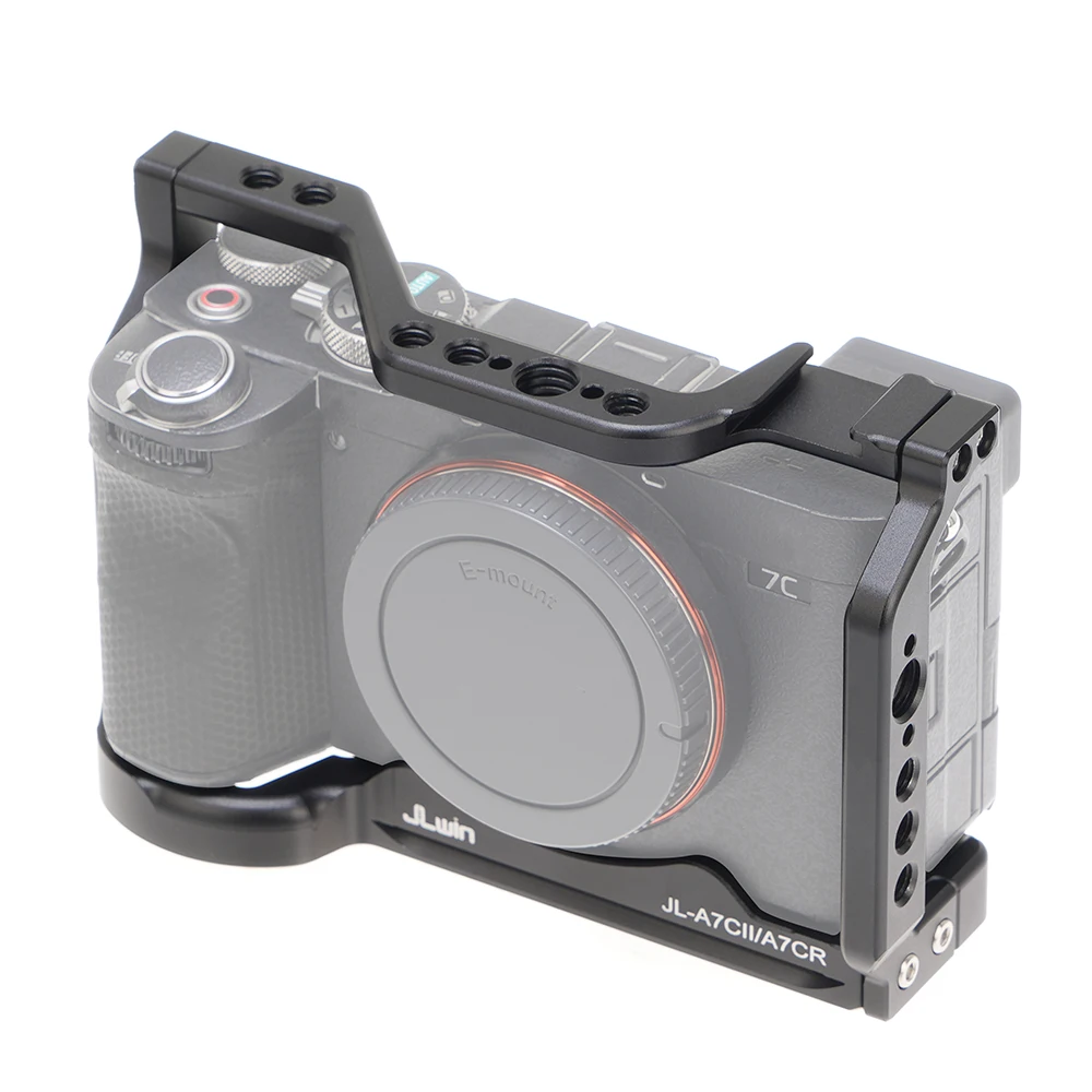 Aluminum Camera Cage is specifically designed for Sony A7C2 A7CII A7CR Camera. It is a full cage which is lightweight and perfectly form-fitting the camera. It is equipped with multiple 1/4" -20 and 3/8" -16 threaded holes, ARRl locating hole and cold shoe for accessories mounting.