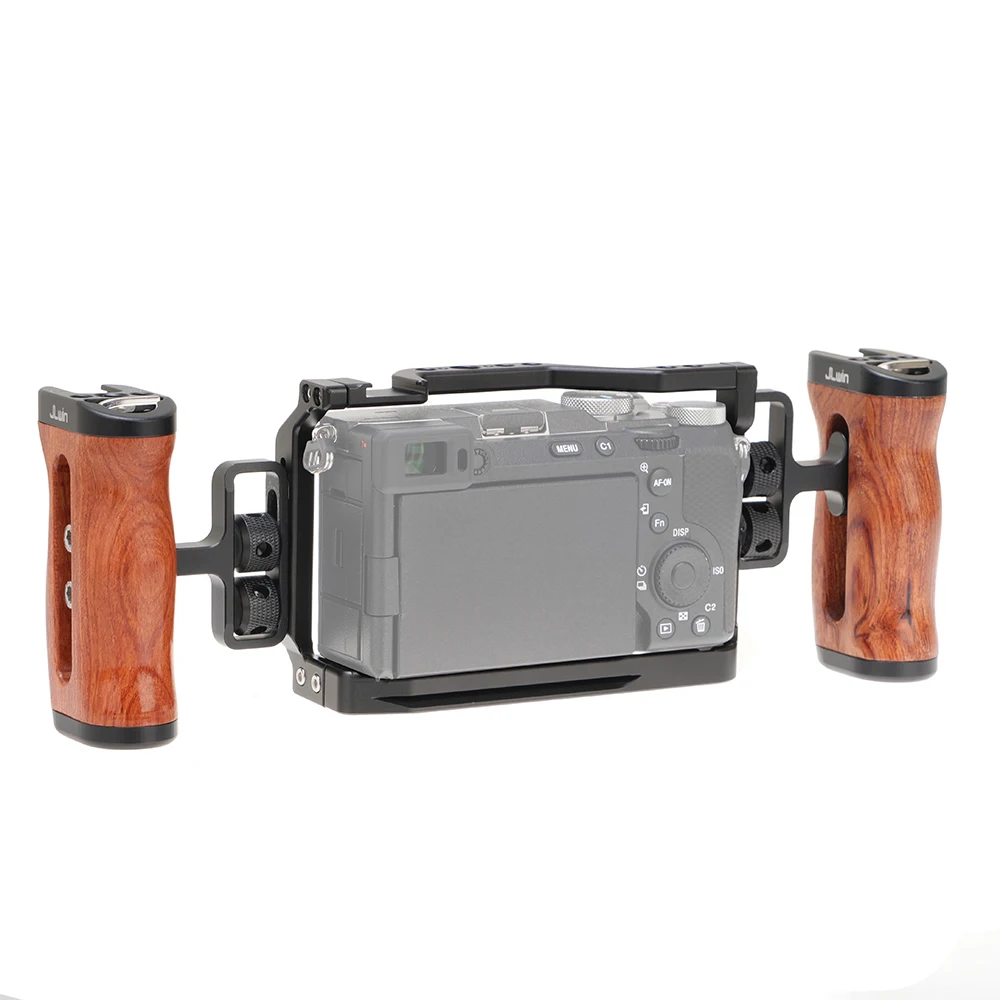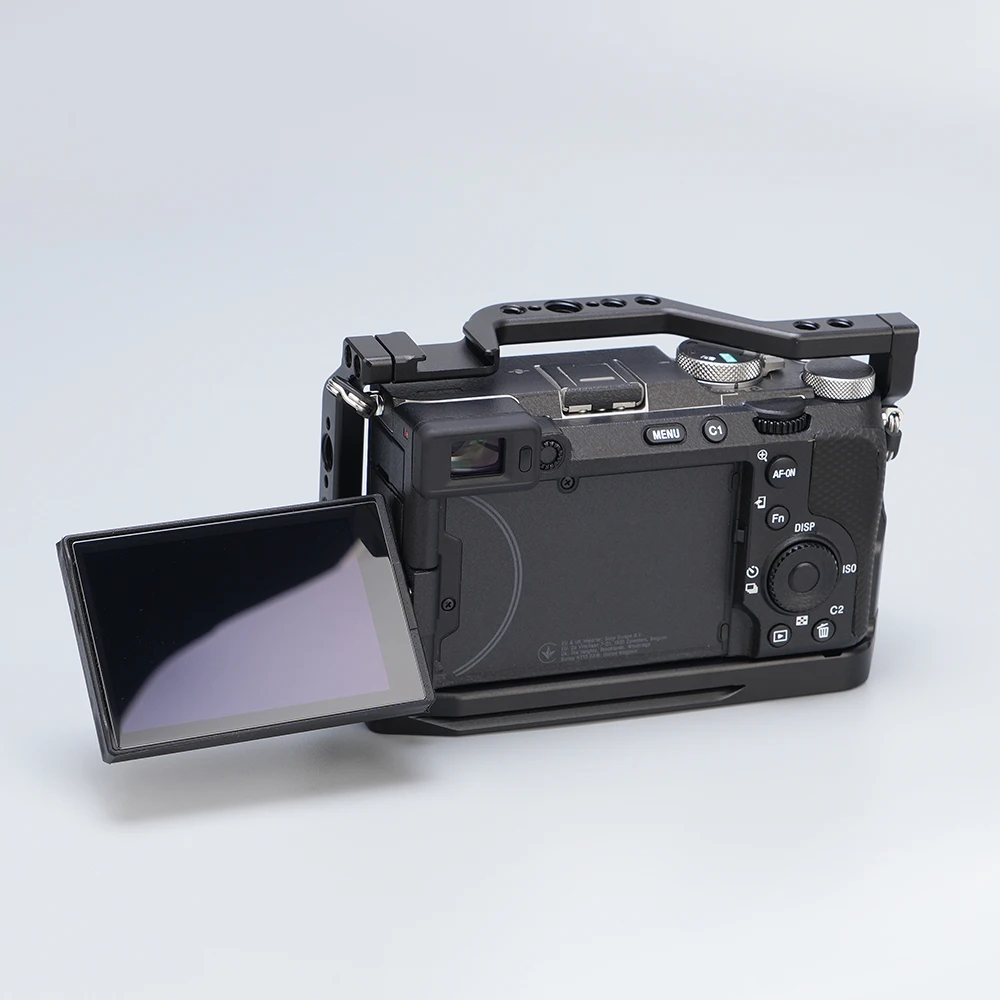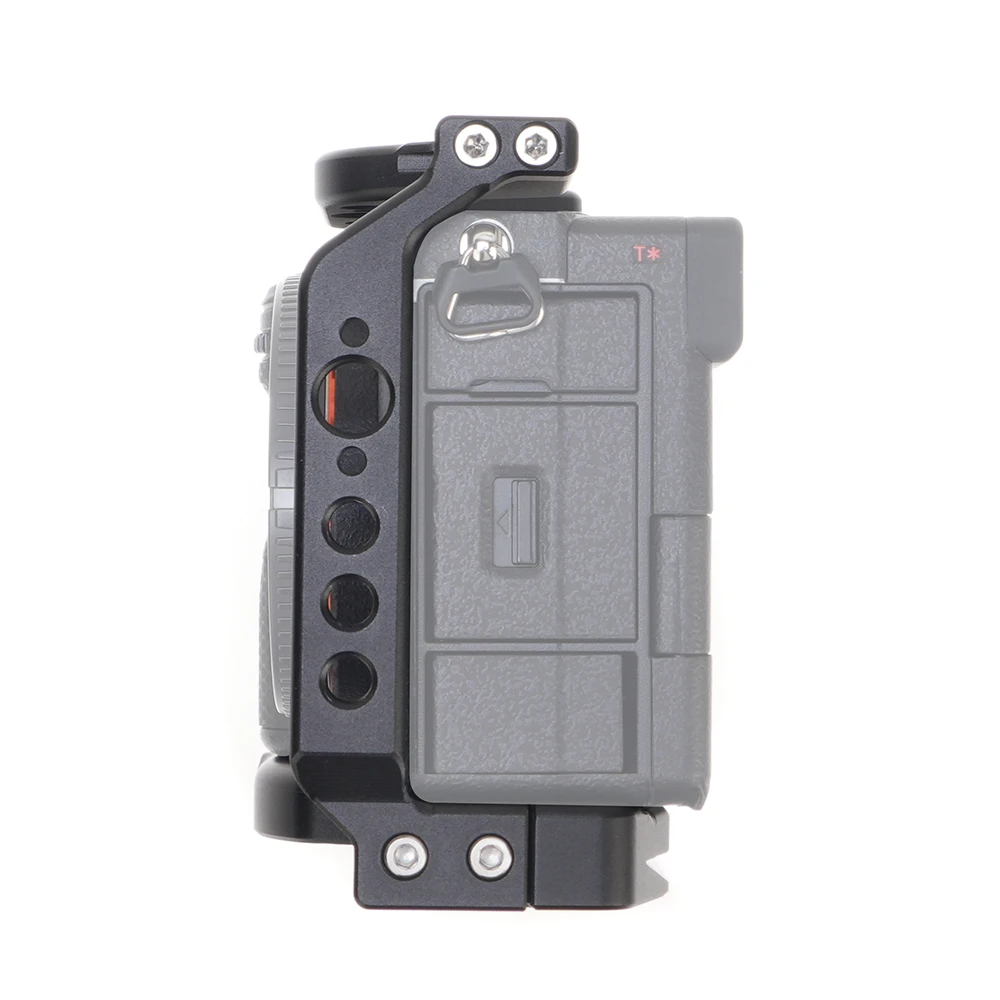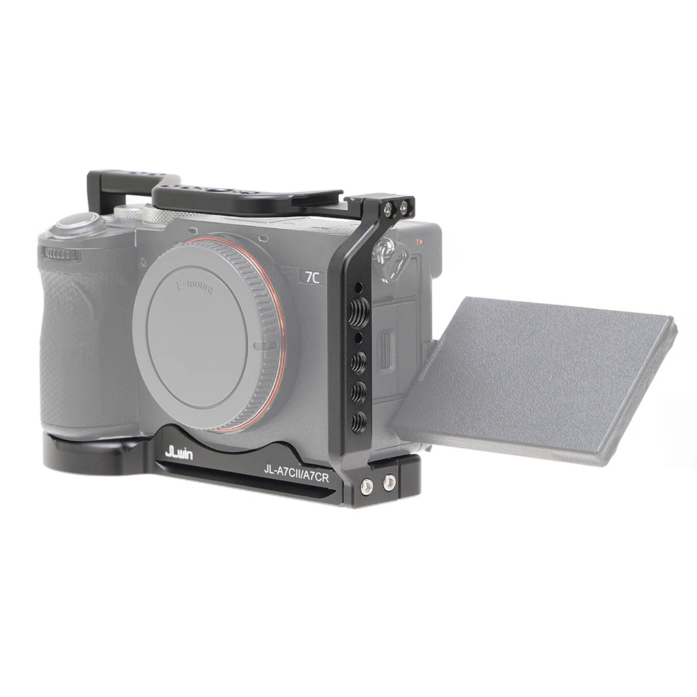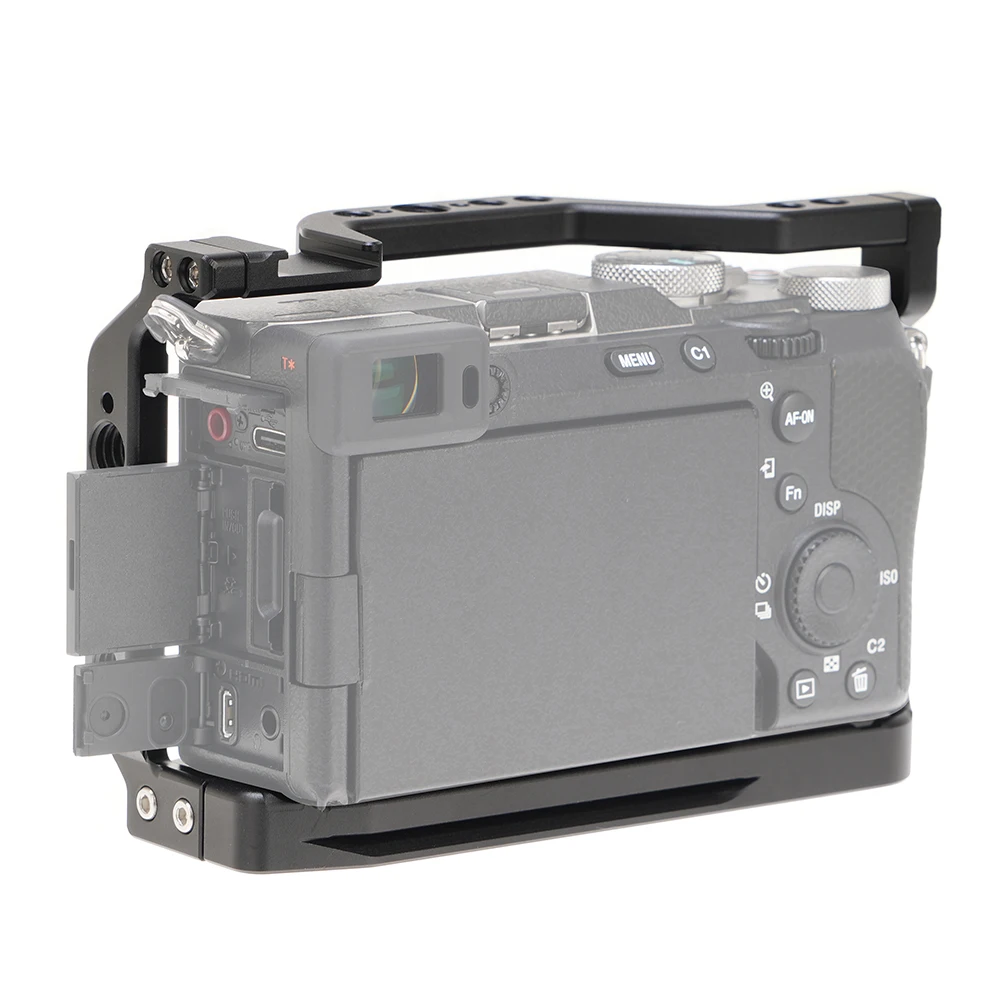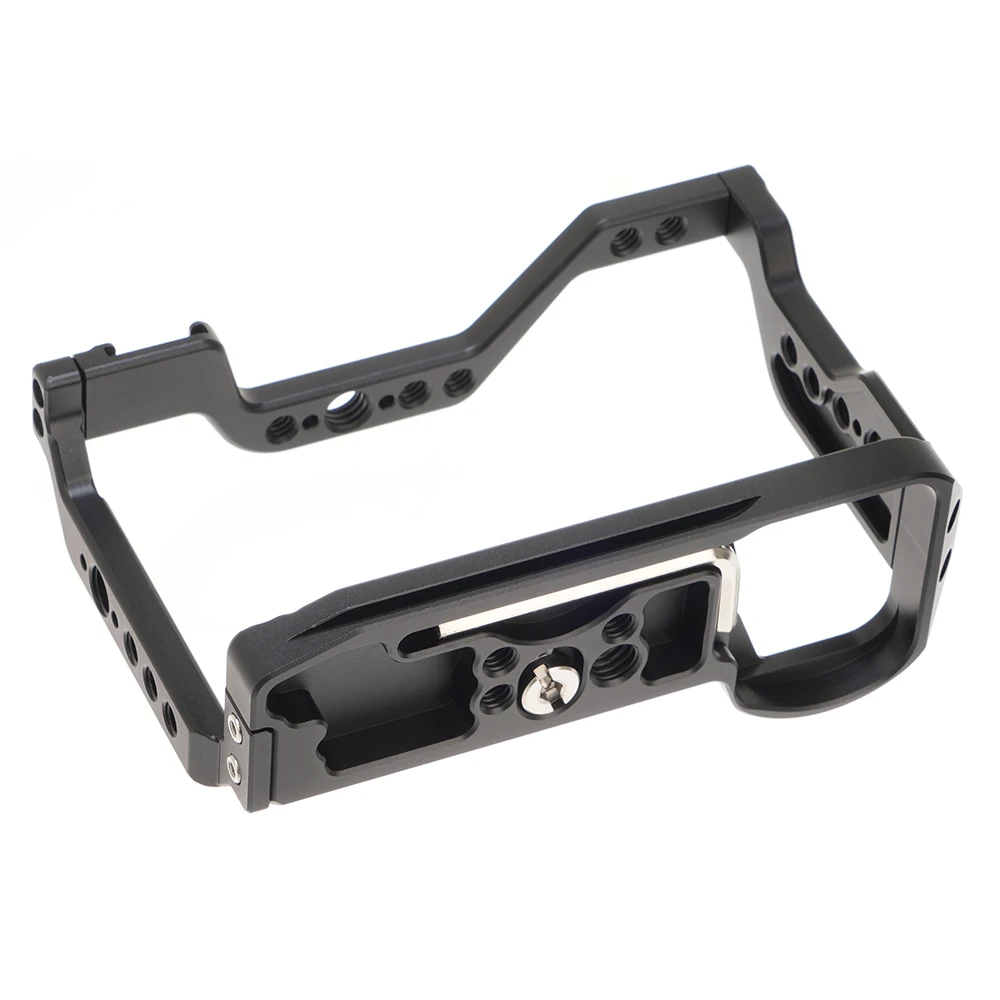 Aluminum Camera Cage is specifically designed for Sony A7C2 A7CII A7CR Camera. It is a full cage which is lightweight and perfectly form-fitting the camera. It is equipped with multiple 1/4" -20 and 3/8" -16 threaded holes, ARRl locating hole and cold shoe for accessories mounting.