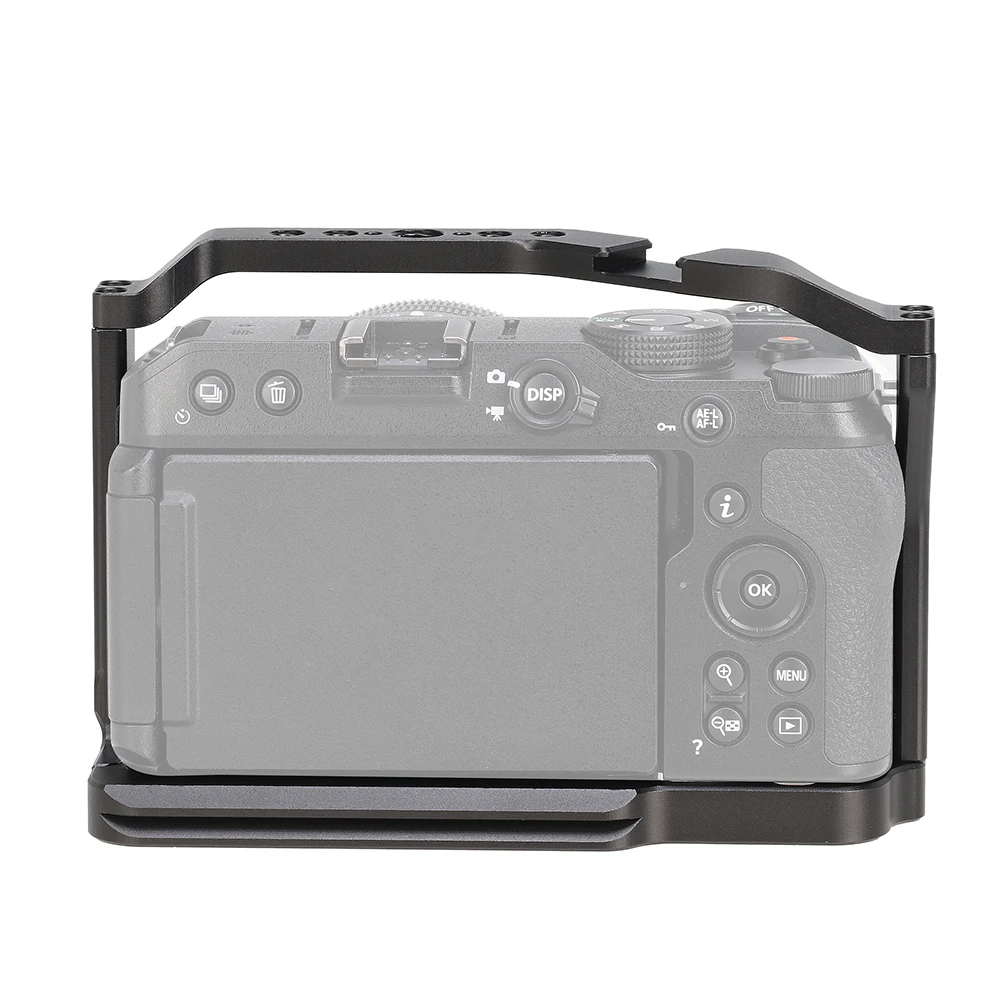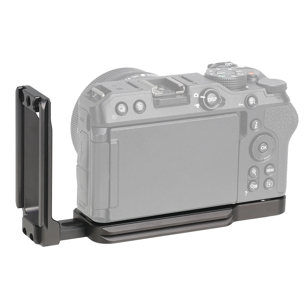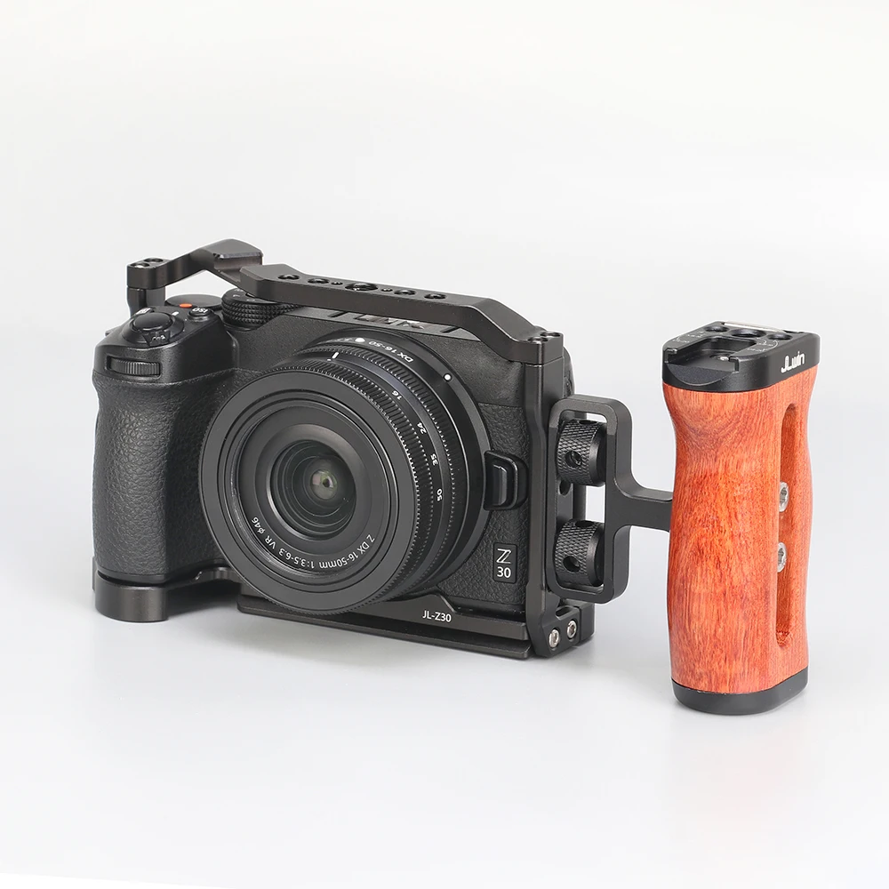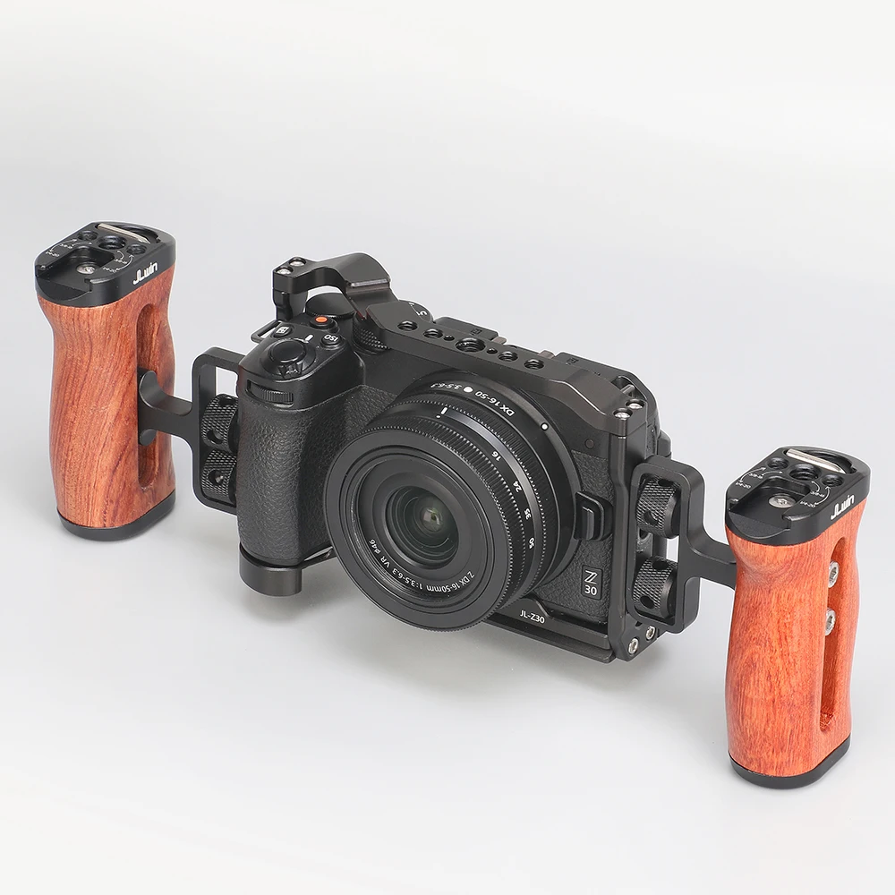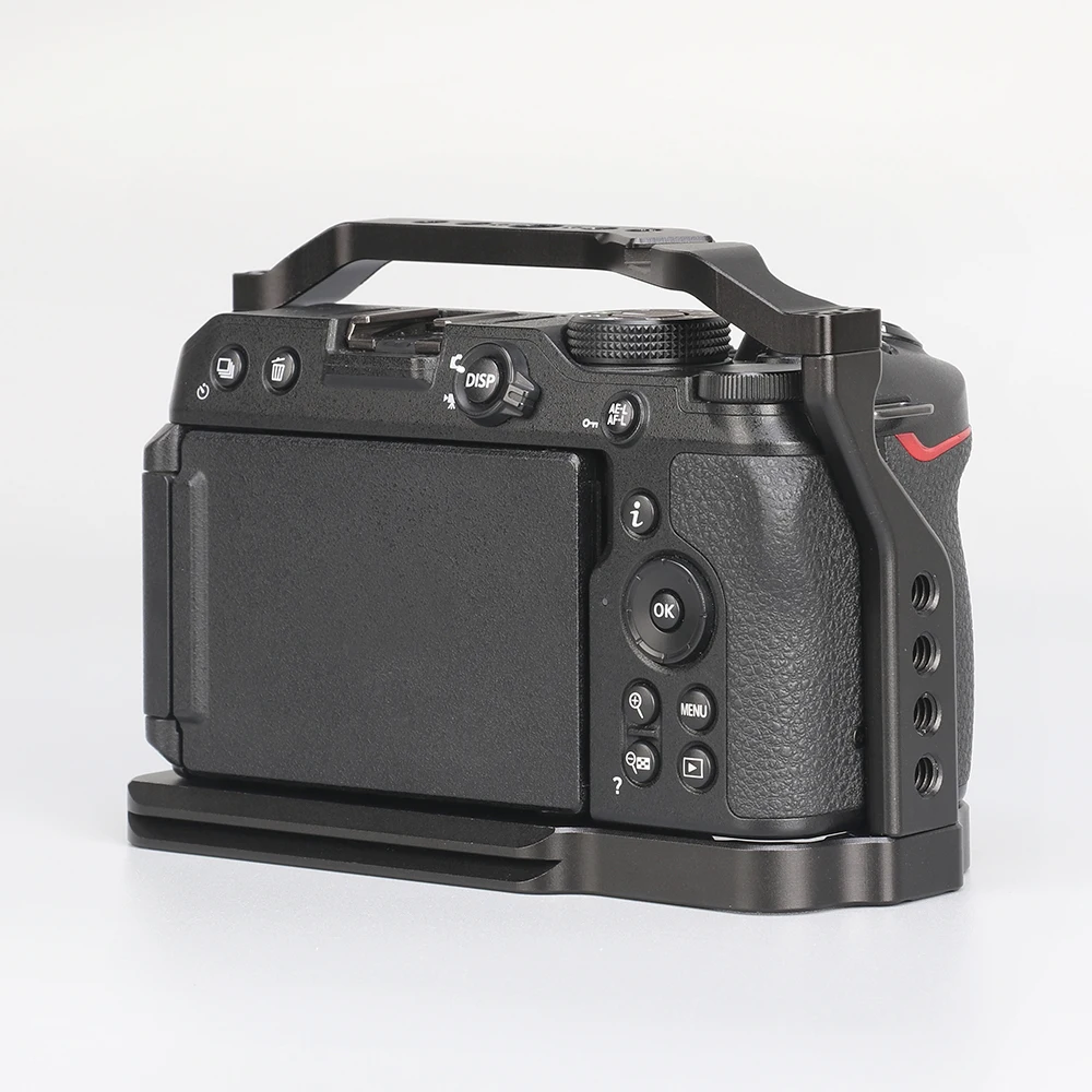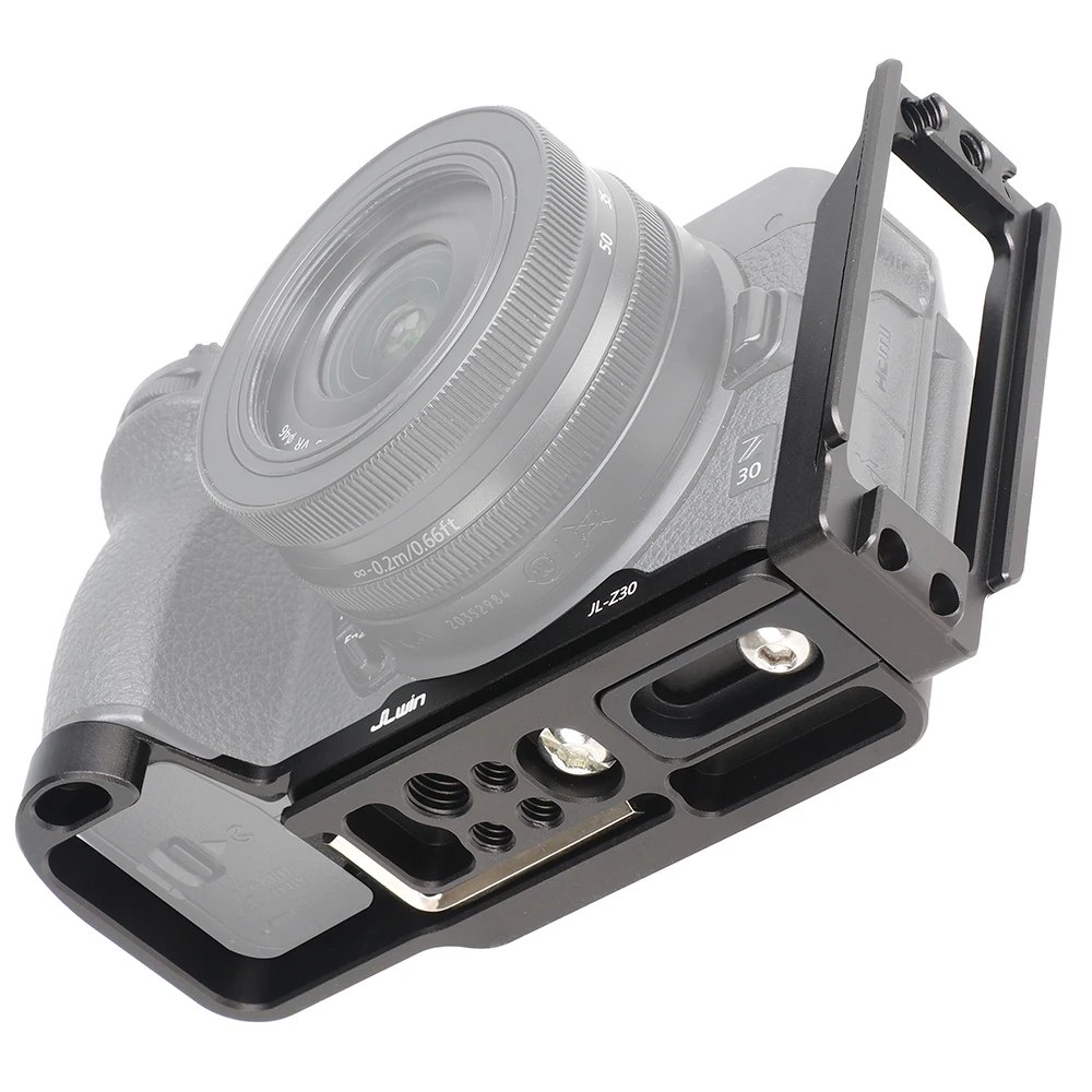 Aluminum Camera Cage is specifically designed for Nikon Z30 Camera. It is a full cage which is lightweight and perfectly form-fitting the camera. It is equipped with multiple 1/4" -20 and 3/8" -16 threaded holes, ARRl locating hole and cold shoe for accessories mounting.