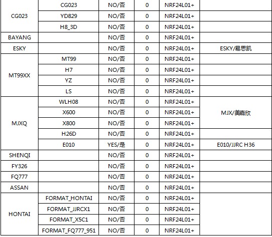 This four-in-one tuner module integrates four RF chips, CC2500, NRF24L01, A7105, and CYRF6936, on a single circuit board. It can identify the PPM signal output by the remote control, and then convert it into the corresponding remote control protocol to realize the control of the receiver or the aircraft. The currently supported protocols include: Walkera DEVO, Horizon DSM2, Fusi, Yisky, Ruisky, Weili, Harbson, Chiyuan, Futaba SFHSS Assan and other agreements.