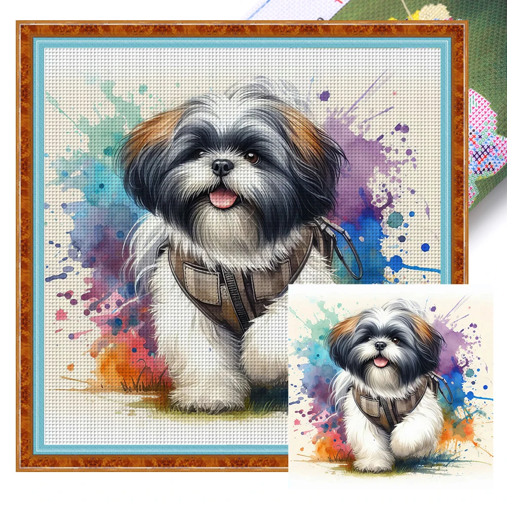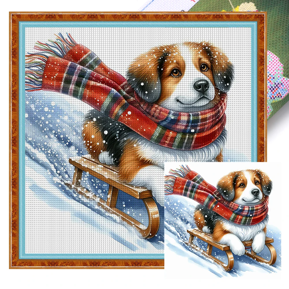 Full Embroidery Eco-Cotton Thread 11CT Printed Labrador Dog Series Cross Stitch