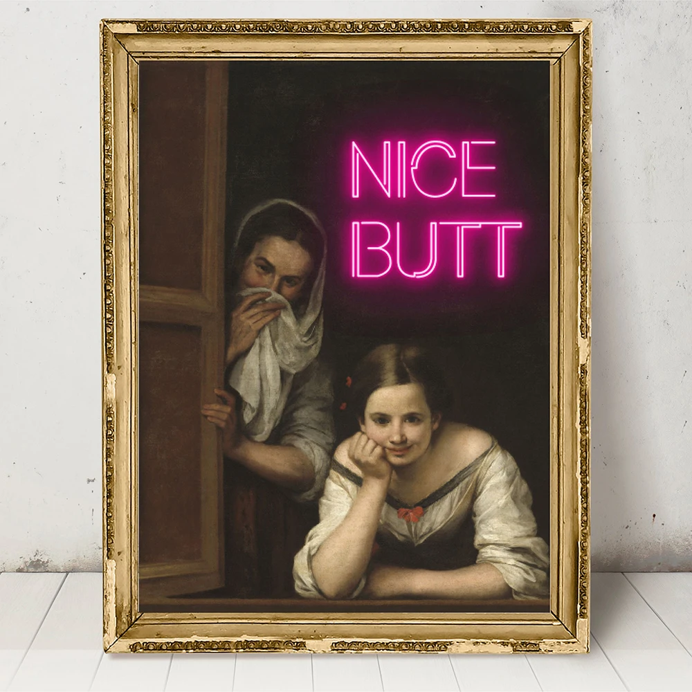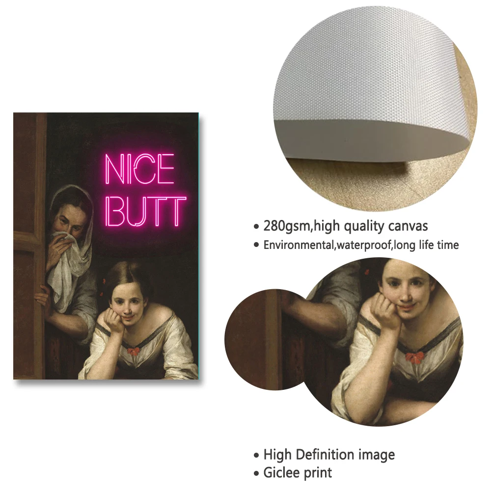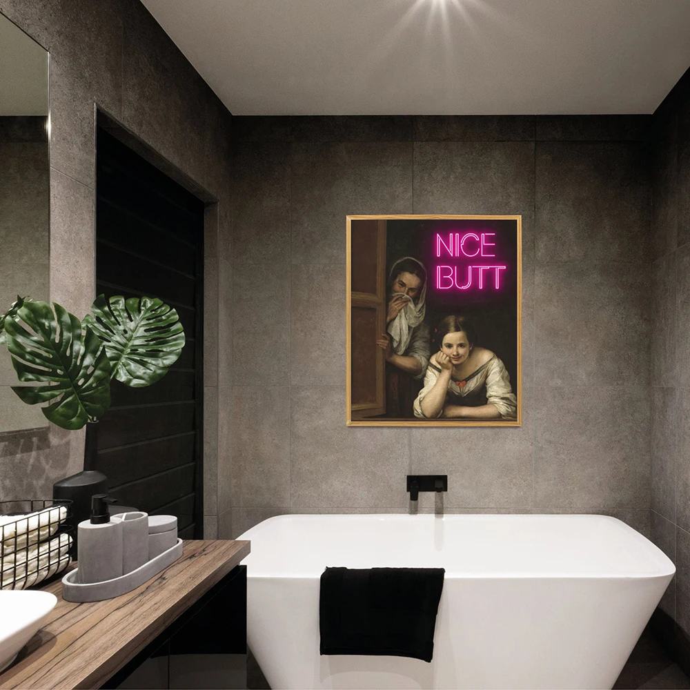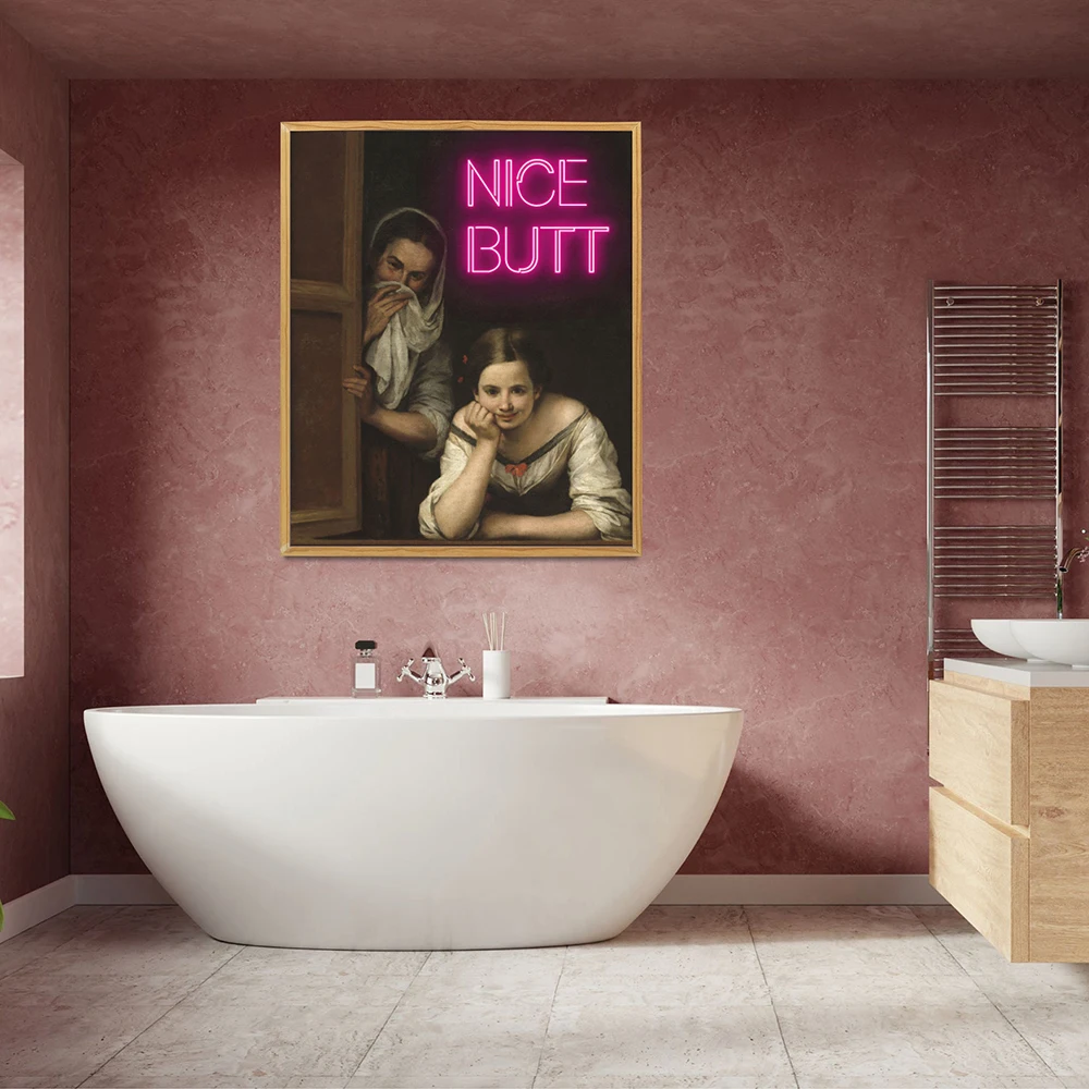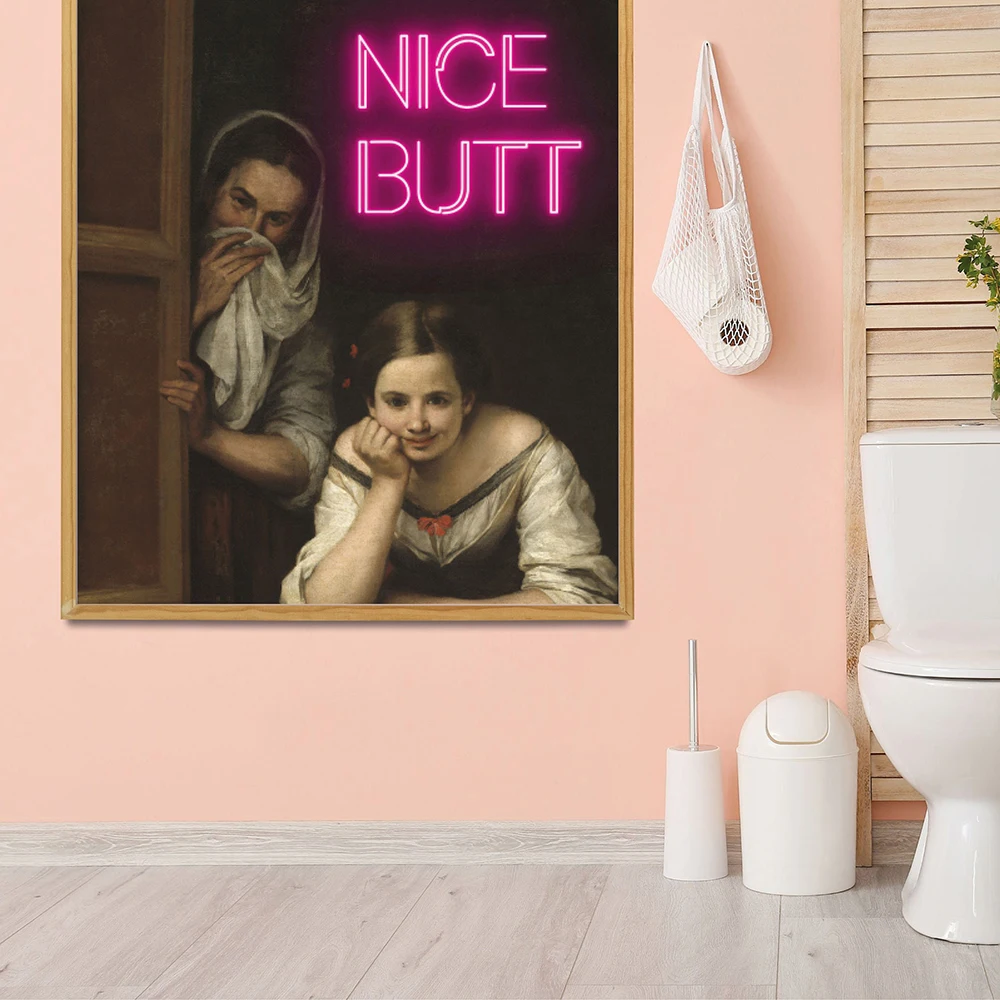 Funny Altered Nice Butt Neon Canvas Painting Print Bathroom Prank Gift Toilet Sign Wall Art Poster Picture Girly Room Home Decor