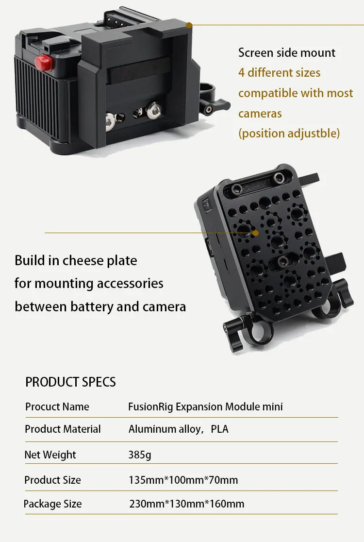 Fusionrig Mini Camera Cage Expansion Module Cineback Lite for V Mount