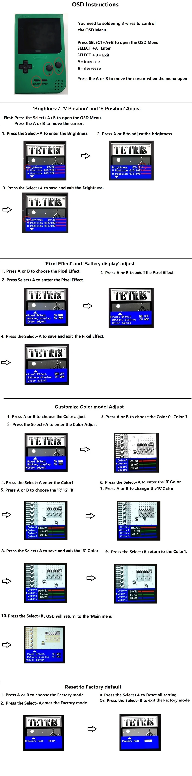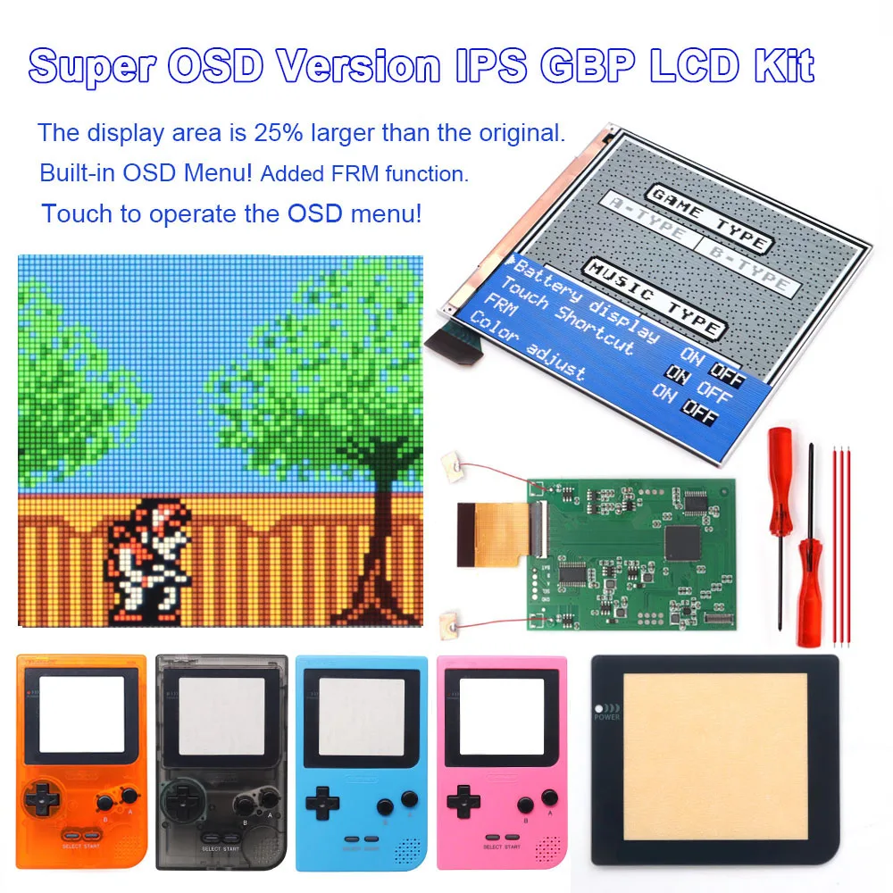 GBP Q5 Larger IPS Screen LCD Display Build in OSD for Gameboy Pocket 8 Color Ret