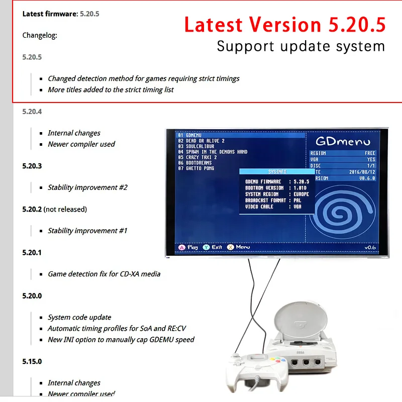 GDEMU V5.20.5 for SEGA Dreamcast Optical Drive Emulation Board and Remote Card M