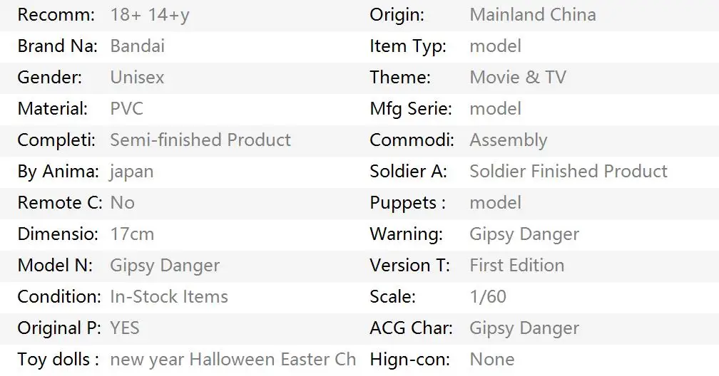 Gipsy Danger Robot PVC Action Figure Toys Collectible Model Toy 17Cm