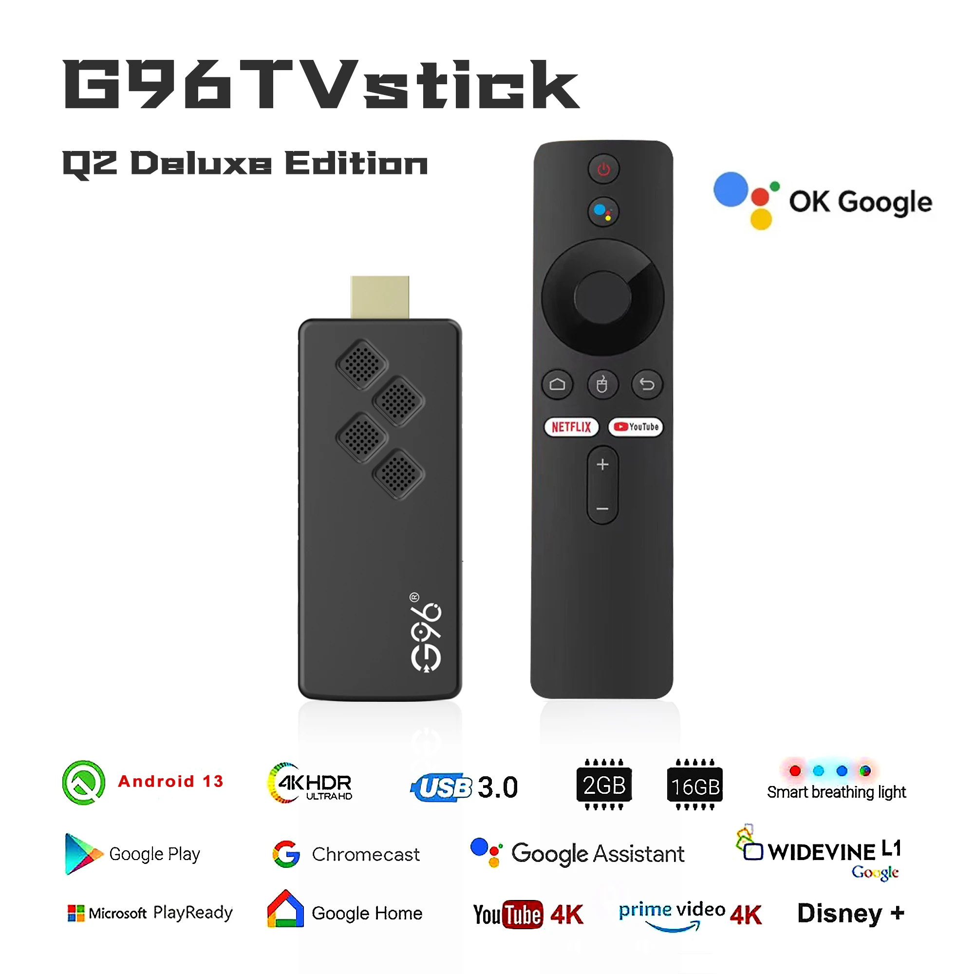 Global Version G96 TV STICK Android13 Smart TV Stick 4K HDR10+ Google Assistant