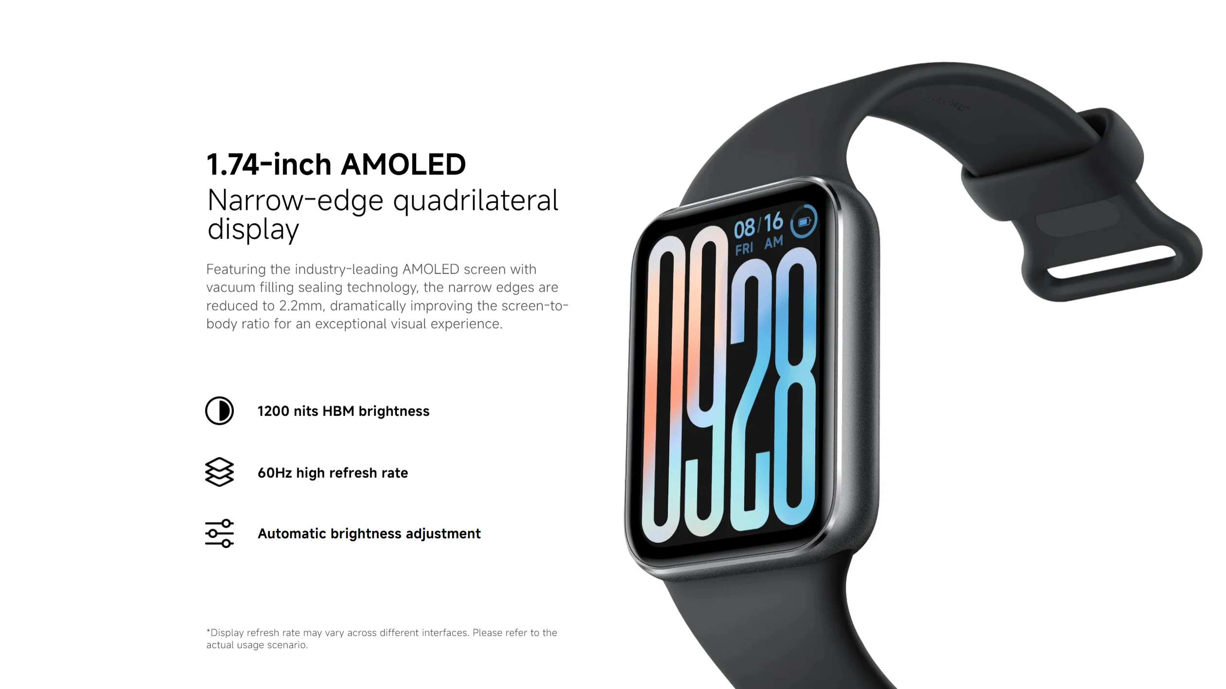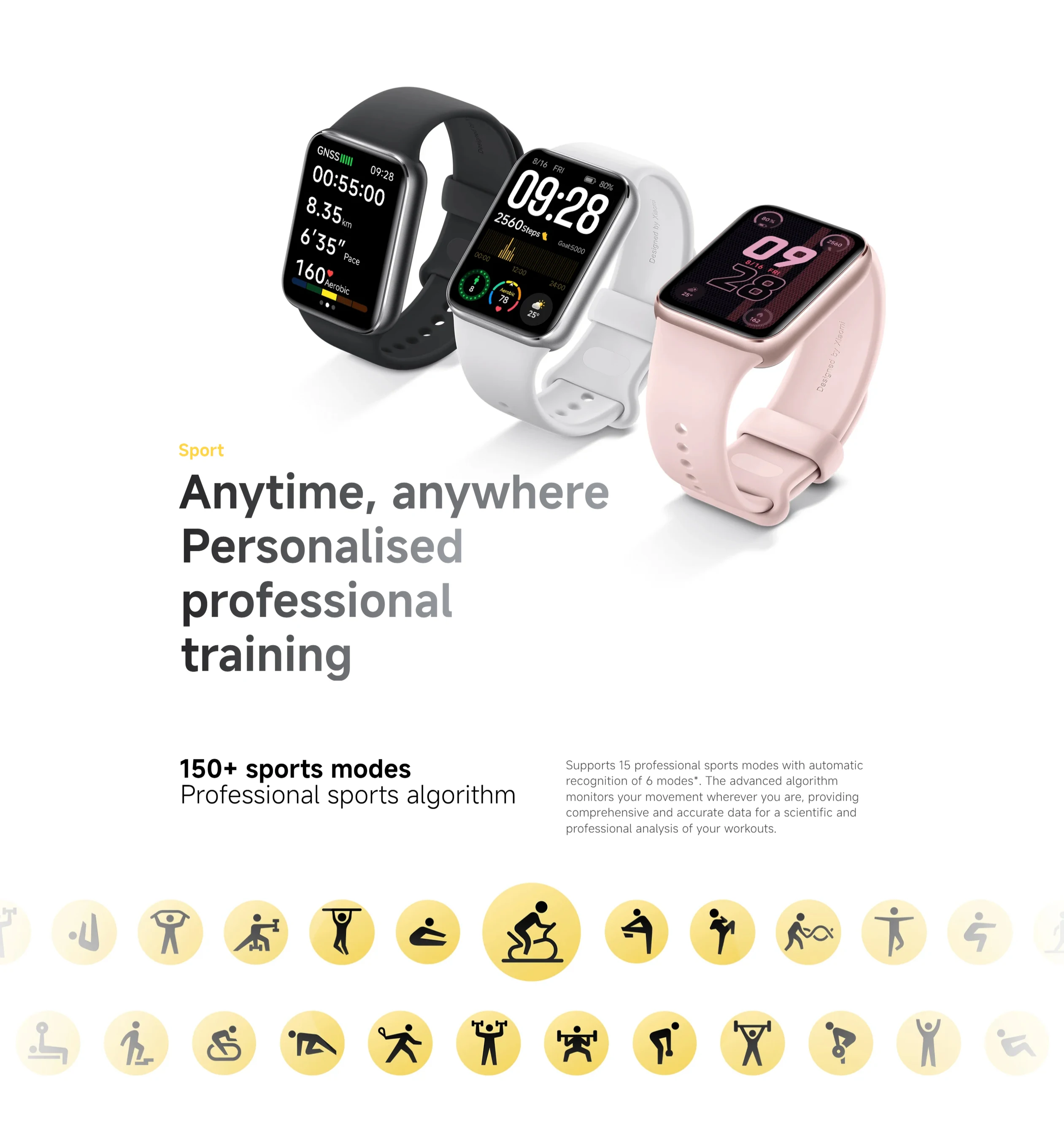 Display1.74-inch AMOLED Touch Display, 336 x 480 pixels, Maximum 1200 nits with auto brightness adjustment, 2.5D reinforced glass
