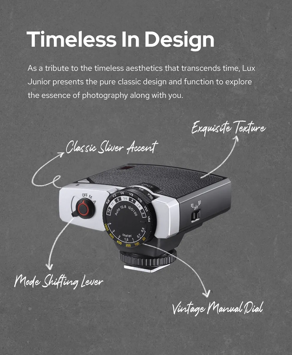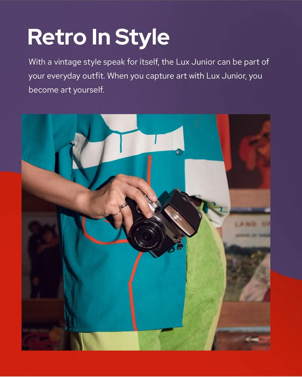 As a tribute to the timeless aesthetics that transcends time, Lux Junior presents the pure classic design and function to explore the essence of photography along with you and turn your nostalgia into tangible beauty.