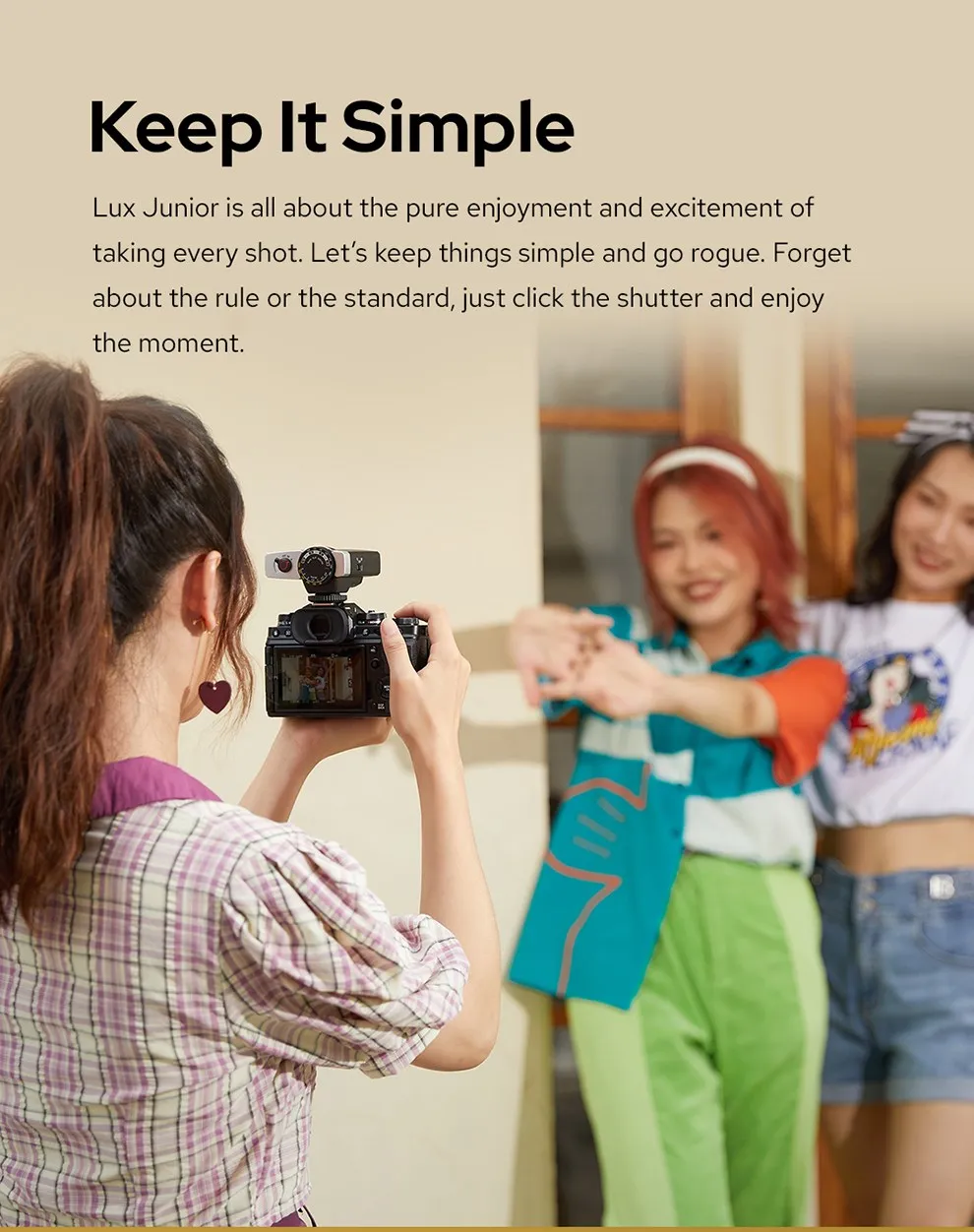 Lux Junior is all about the pure enjoyment and excitement of taking every shot. Lets keep things simple and go rogue.Forget about the rule or the standard, just click the shutter and enjoy the moment.