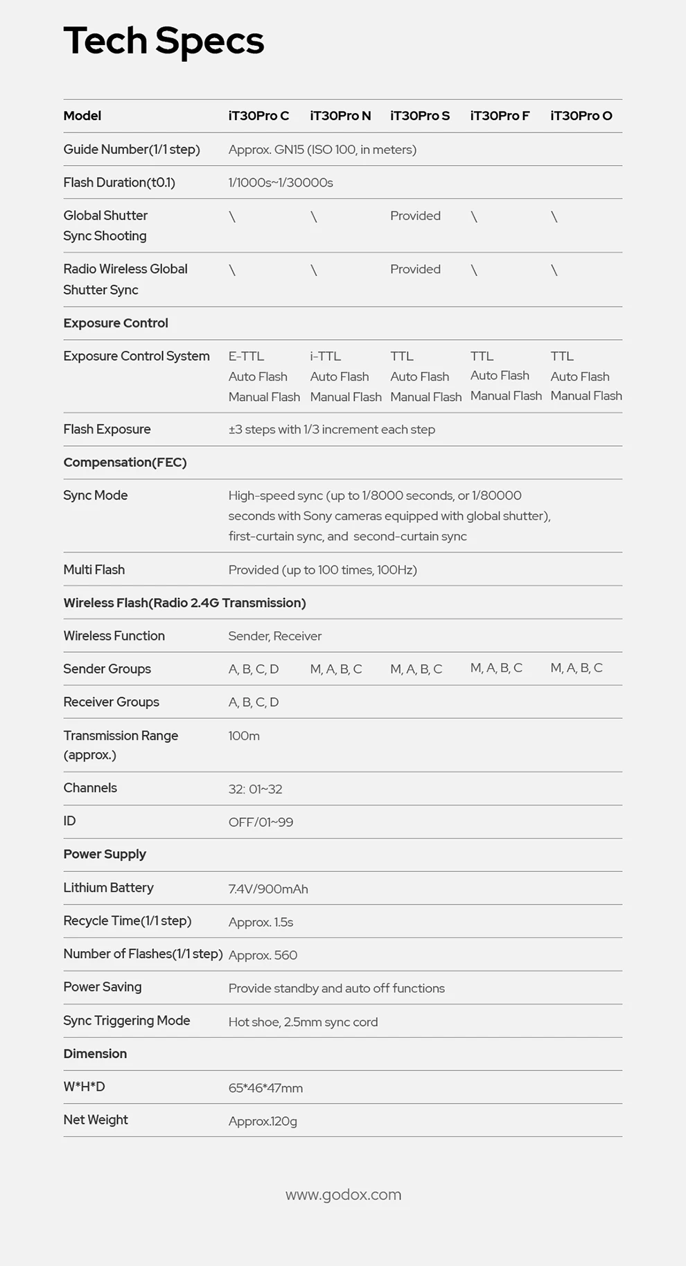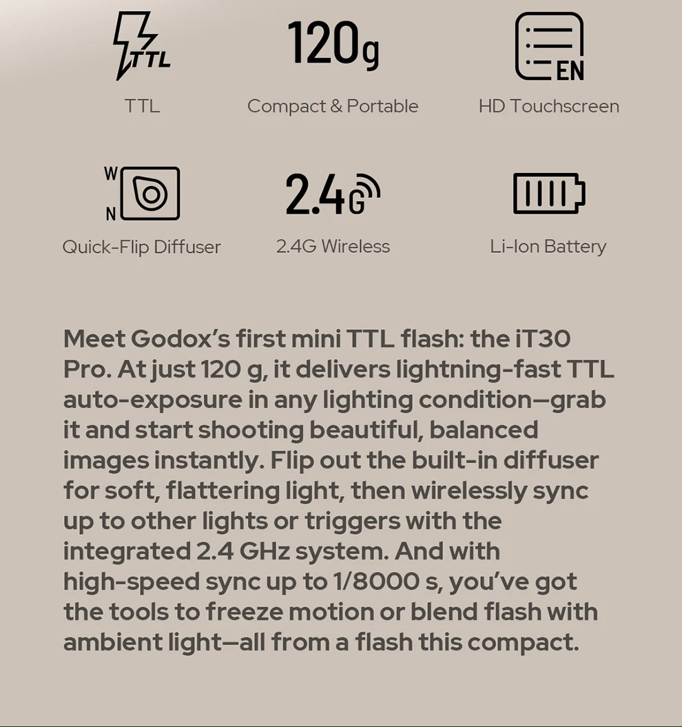 Godox It30Pro C/N/S/F/O Iflash Camera Flash Speedlite HSS TTL 2.4G Wireless Pock